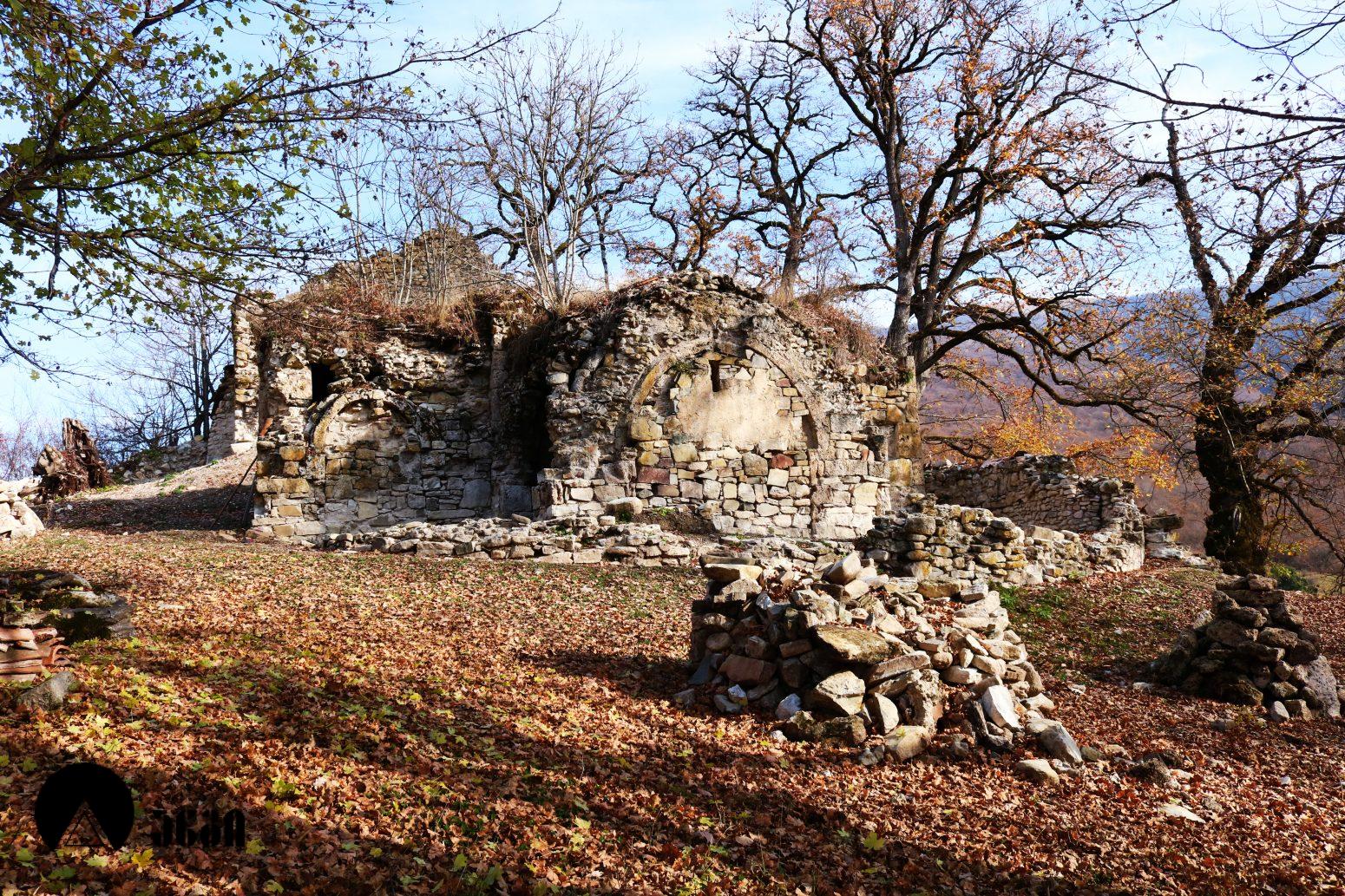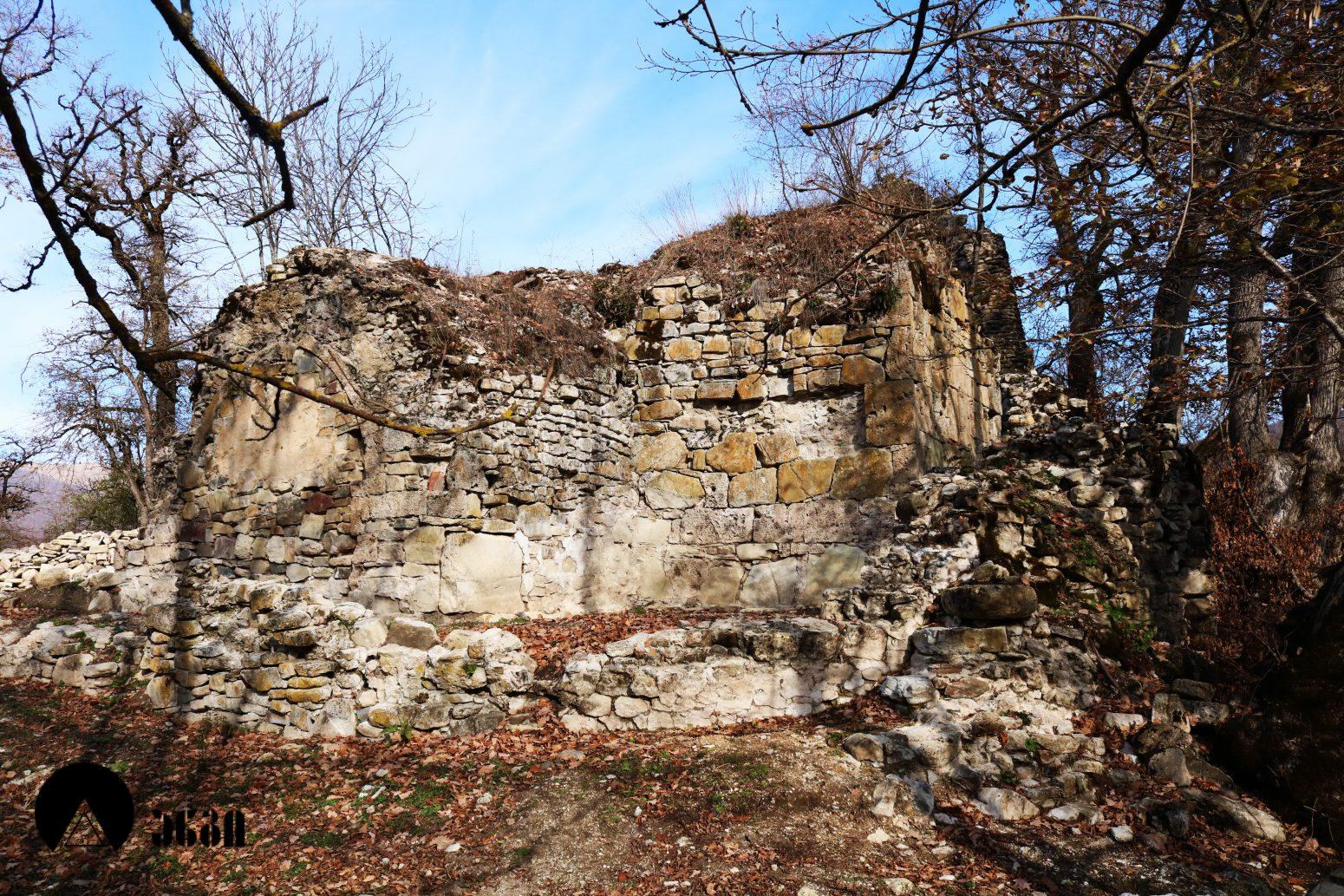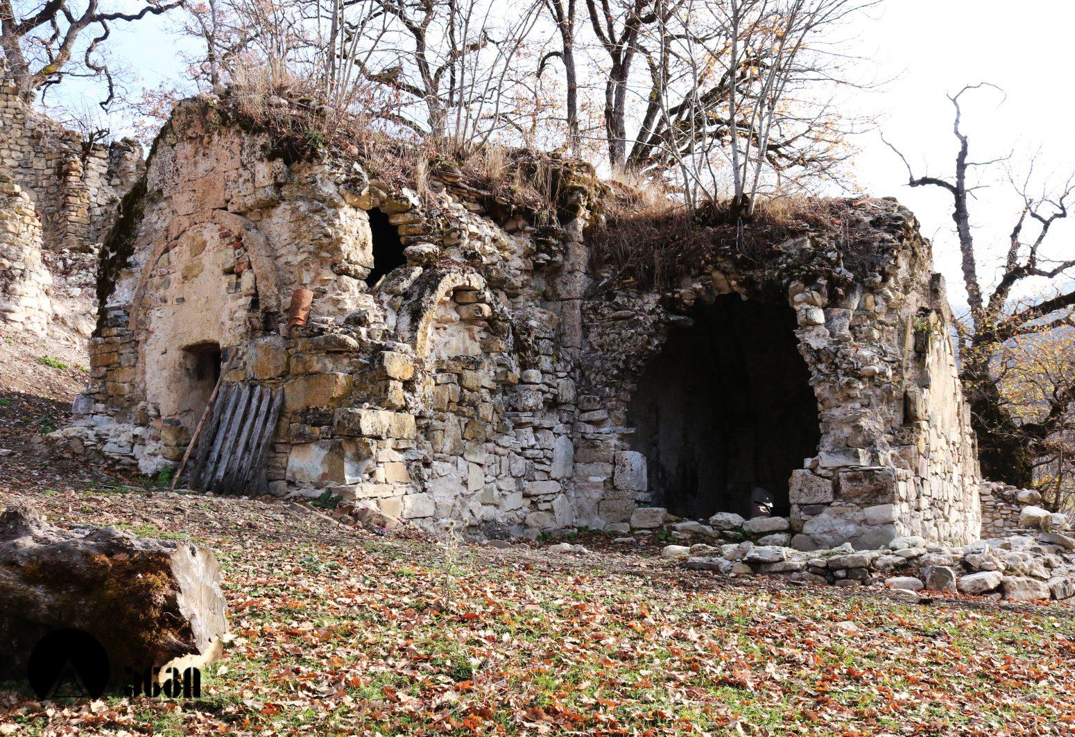 ტაძრის სამხრეთ-დასავლეთით სასახლე დგას, რომელიც დასავლეთ-აღმოსავლეთ ღერძზე წაგრძელებულ დიდ დარბაზს წარმოადგენს, ჩრდილოეთის მხრიდან ორი მინაშენით. ნაგებობის დიდი ნაწილი მიწითაა ამოვსებული. სამხრეთის კედლის დასავლეთ ნაწილში საკმაოდ ფართო თაღის თავი ჩანს, რომელიც გაწმენდას საჭიროებს. ჩრდილოეთის კედელში სარკმელია გაჭრილი. სასახლე ნაგებია ნატეხი ქვით კირის დუღაბზე.
