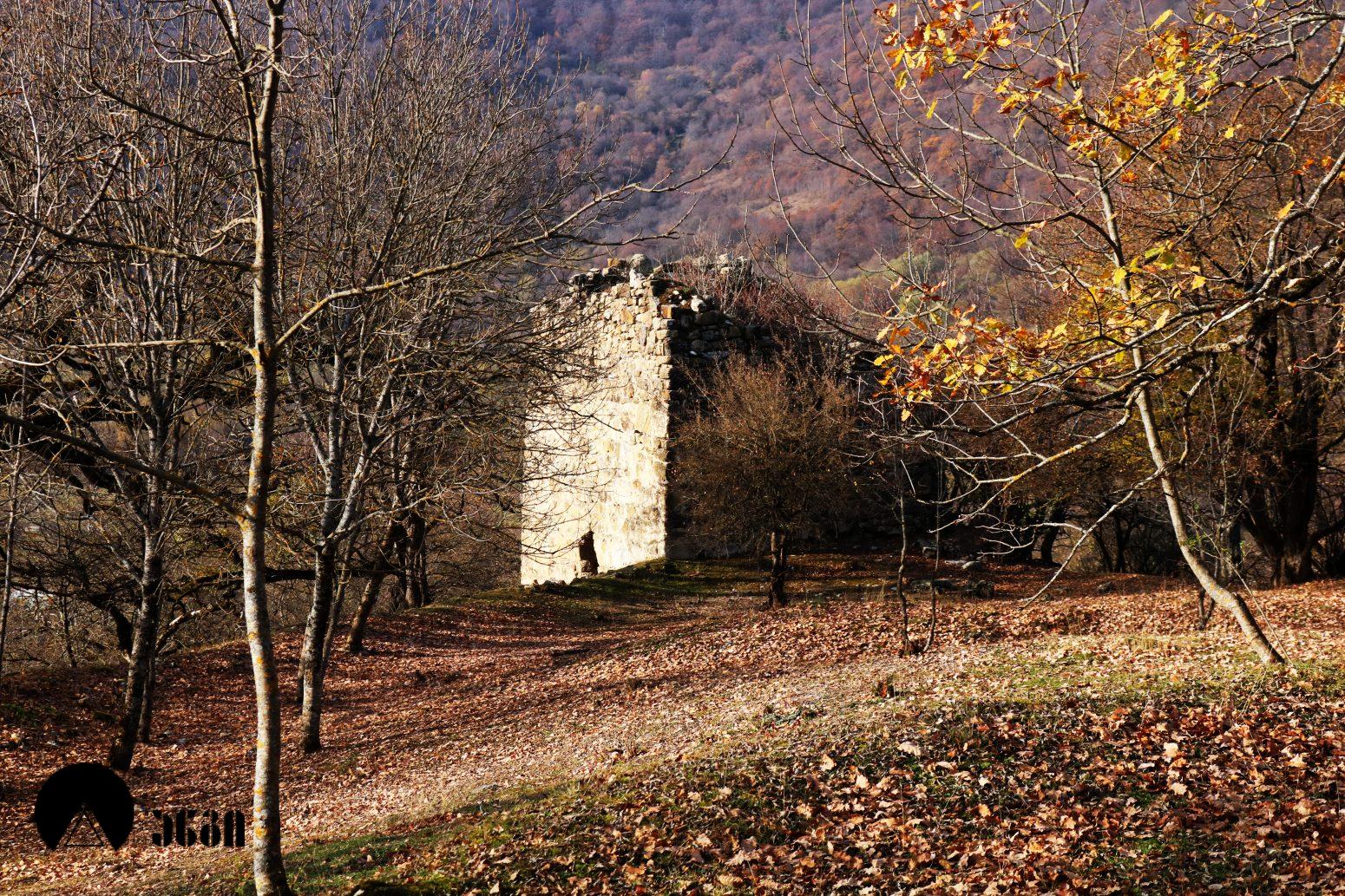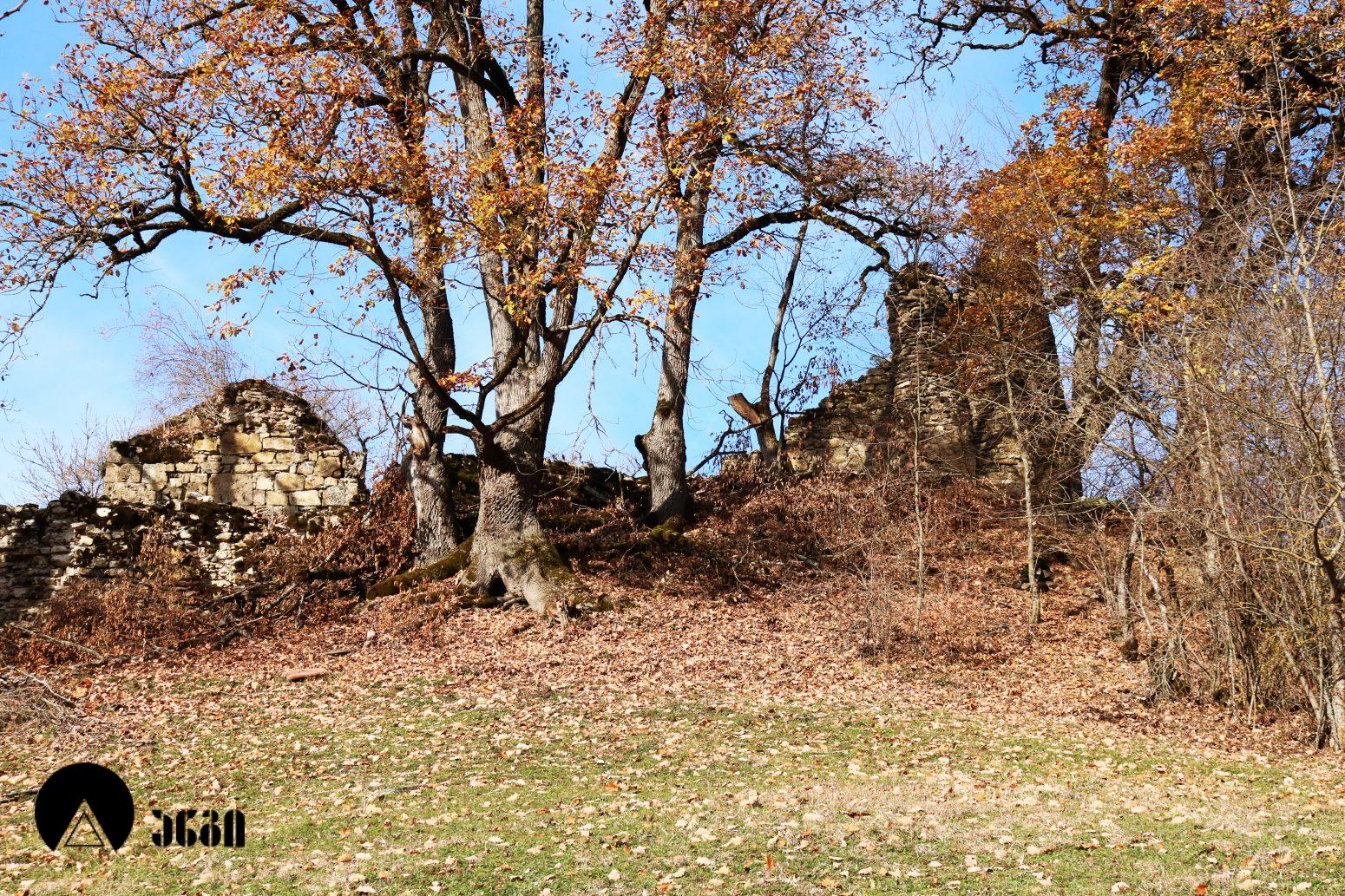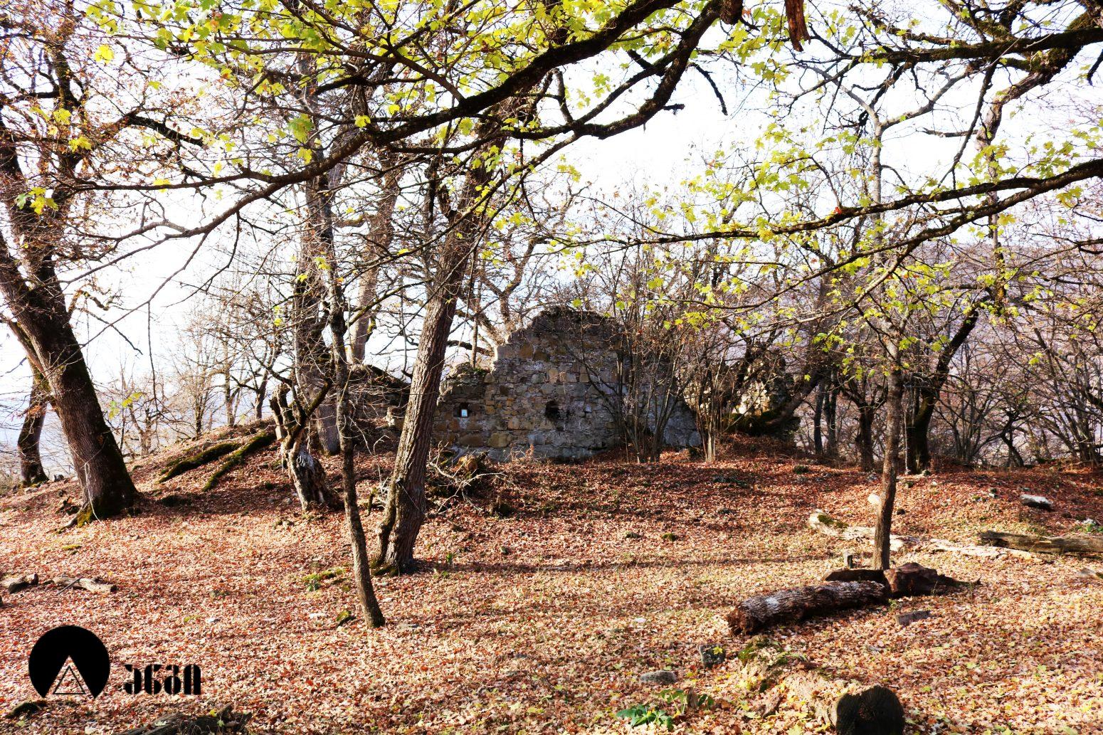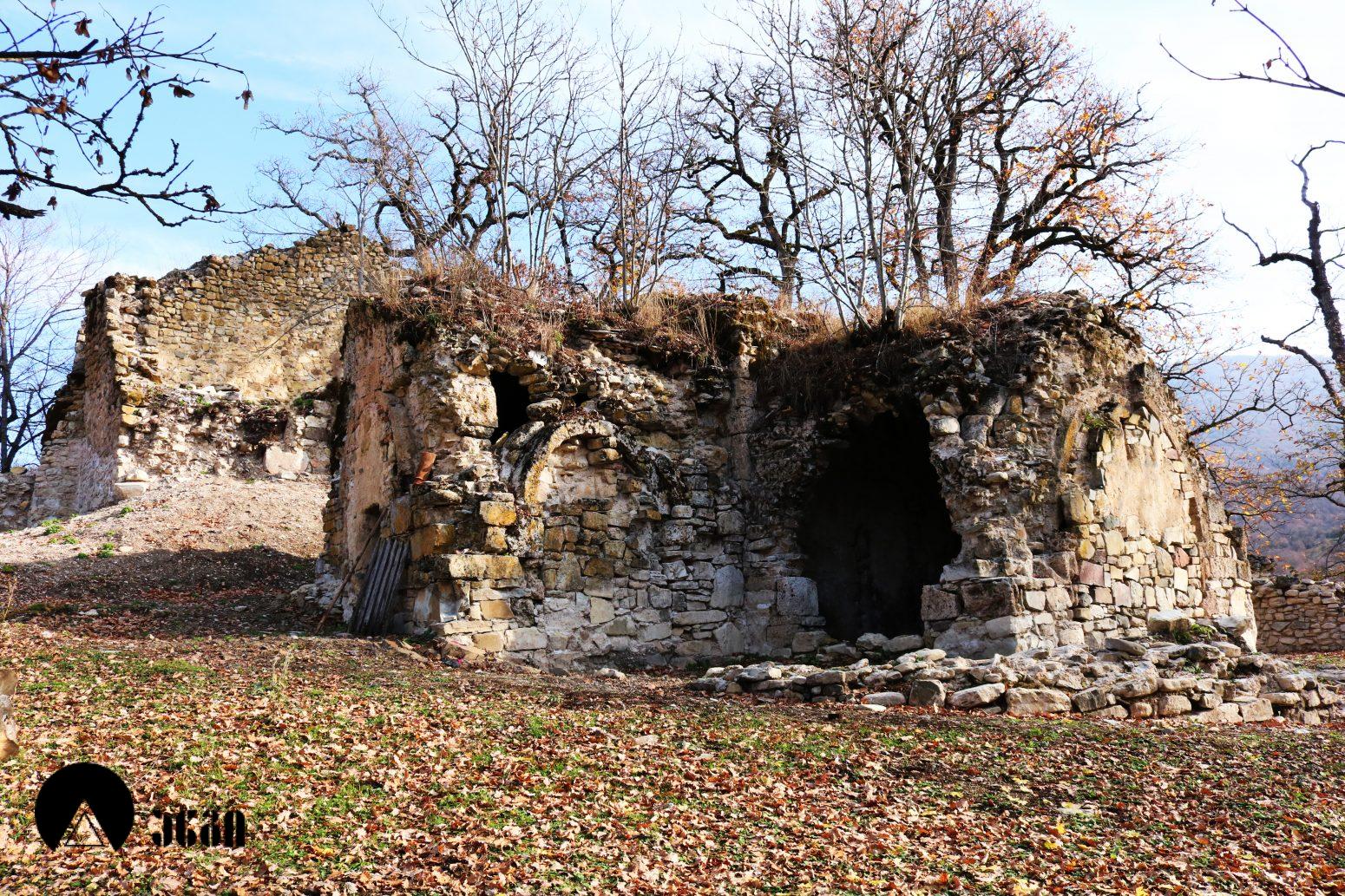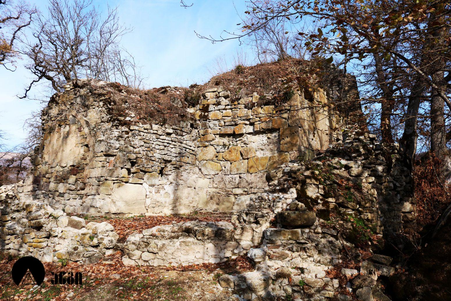 ტაძრის სამხრეთ-დასავლეთით სასახლე დგას, რომელიც დასავლეთ-აღმოსავლეთ ღერძზე წაგრძელებულ დიდ დარბაზს წარმოადგენს, ჩრდილოეთის მხრიდან ორი მინაშენით. ნაგებობის დიდი ნაწილი მიწითაა ამოვსებული. სამხრეთის კედლის დასავლეთ ნაწილში საკმაოდ ფართო თაღის თავი ჩანს, რომელიც გაწმენდას საჭიროებს. ჩრდილოეთის კედელში სარკმელია გაჭრილი. სასახლე ნაგებია ნატეხი ქვით კირის დუღაბზე.
