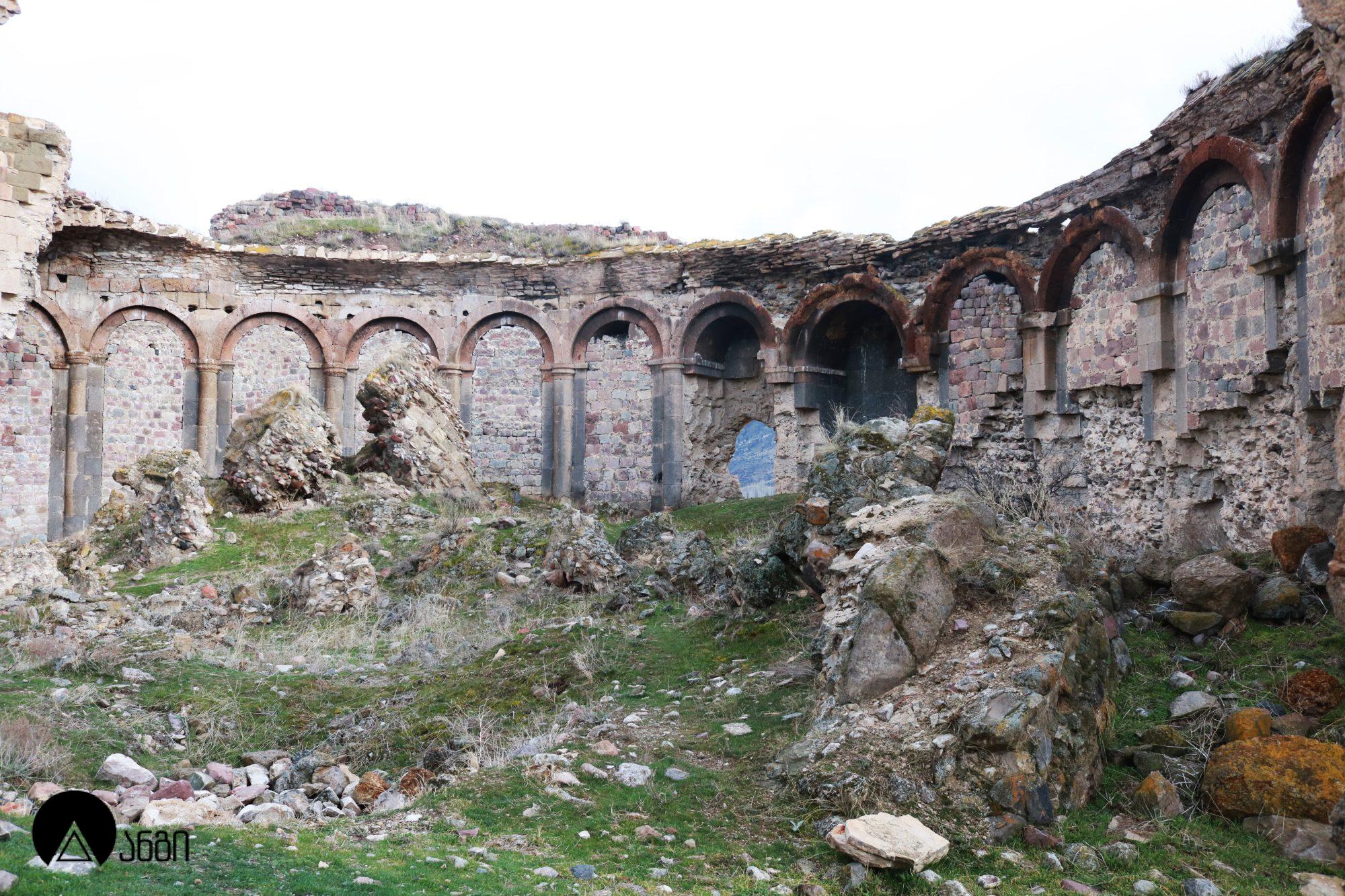 ბანას ტაძარს სამი შესასვლელი ჰქონდა, სამხრეთით, დასავლეთითა და ჩრდილოეთით. ნაგებობის ოთხივე აფსიდი ქვედა ნაწილში ღია თაღედებით იყო გახსნილი. აღმოსავლეთის აფსიდის თაღედი, განსხვავებით დანარჩენი სამი აფსიდის თაღედებისგან, მცირე სიმაღლის ბარიერზეა დაყრდნობილი. გარდა ამისა, აღმოსავლეთის აფსიდის თაღედი ექვს სვეტს ეყრდნობოდა, დანარჩენი აფსიდებისა კი — ოთხ-ოთხ სვეტს. აფსიდებს შორის კუთხის ოთახებია მოწყობილი, თუმცა განსხვავებით ე. წ. ჯვრის ტიპის ძეგლებისგან, ბანაში კუთხის ოთახები სამსართულიანია და კოშკურ მოცულობებს წარმოადგენს. სართულები ერთმანეთს ვიწრო კიბეებით უკავშირდებოდა. სწორედ ეს კუთხის კოშკურები იყო გუმბათის და კედლების მთავარი საყრდენიც და მანას ტაძრის უმთავრესი კონსტრუქციული მიღწევაც. ბანასთან ახლოს მდგომ სხვა ძეგლებში კოშკურების ადგილას ბურჯებია გამოყენებული, ეს ძეგლები ნაკლებად მდგრადი აღმოჩნდა და XIX საუკუნემდე არცერთს მოუღწევია. კოშკურებმა ბანას ტაძრის ის მდგრადობა განაპირობა, რითაც მან თითქმის დაუზიანებლად მოაღწია და მხოლოდ ძალისმიერი შეტევებისგან დაინგრა. ტრადიციული კუთხისოთახებიანი ტეტრაკონქებისგან განსხვავებით, ბანაში კუთხის კოშკურები კუთხით იჭრება ტაძრის შიდა სივრცეში და მათი ინტერიერში მოქცეული ორ-ორი კედელი აფსიდების წინ ბემებს ქმნის. ასეთი კომპოზიციური გადაწყვეტის გამო გუმბათს ოთხი საყრდენი აქვს და არა — რვა (ჯვრის ტიპის ძეგლებში გუმბათს რვა საყრდენი აქვს). კოშკურების ინტერიერისკენ მიმართული კედლების გადაკვეთის კუთხეებს (ბემების გადაკვეთის კუთხეებს) გეგმაში წრის 3/4 მოხაზულობის პილასტრები აუყვება. კუთხის კოშკურა ბურჯების პირველი ორი სართულების ოთახები ბემებისკენ შეწყვილებული თაღებით იყო გახსნილი, მესამე სართულის ოთახები კი — თითო თაღოვანი ღიობით. აფსიდების თაღებსაც და კუთხის ოთახების თაღებსაც ნალისებრი მოხაზულობა ჰქონდათ. კუთხის კოშკურების პირველი სართულის ოთახებს აღმოსავლეთით აფსიდები აქვთ, მეორე სართულის ოთახები სწორკუთხაა, მესამე სართულისა კი — სამკუთხა. აფსიდებში სამ-სამი სარკმელი იყო გაჭრილი. გუმბათის სარკმელთა ზუსტი რაოდენობა უცნობია, ივარაუდება, რომ ოთხი სარკმელი უნდა ჰქონოდა. ტეტრაკონქი აფსიდების თაღედებს ზევით მოფარგლულია წრიული კედლით, რომელიც კუთხის კოშკურებსა და აფსიდების სვეტებს ეყრდნობა. საყრდენებს შორის კედლის ნაწილები დაკიდული იყო. წრიული კედლით მოფარგლულ ტეტრაკონქს ერტყმის უწყვეტი მრგვალი გარშემოსავლელი. გარშემოსავლელს ინტერიერში მძლავრად შვერილ