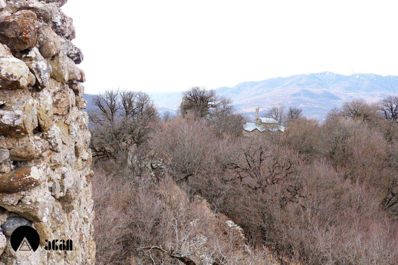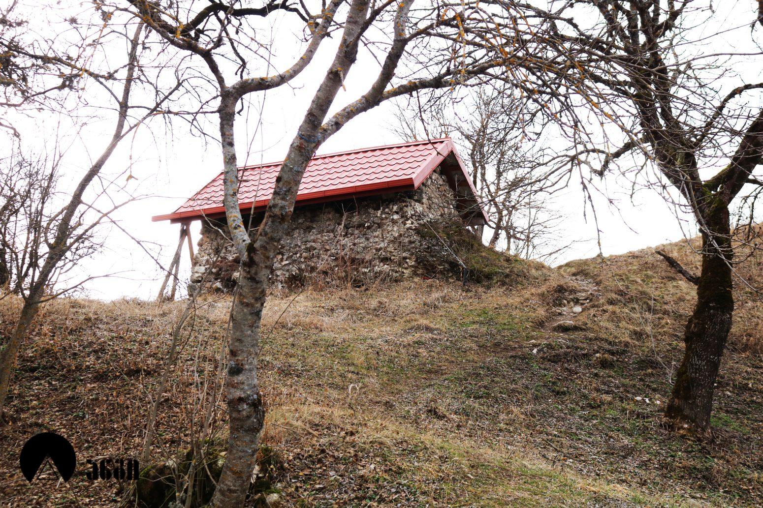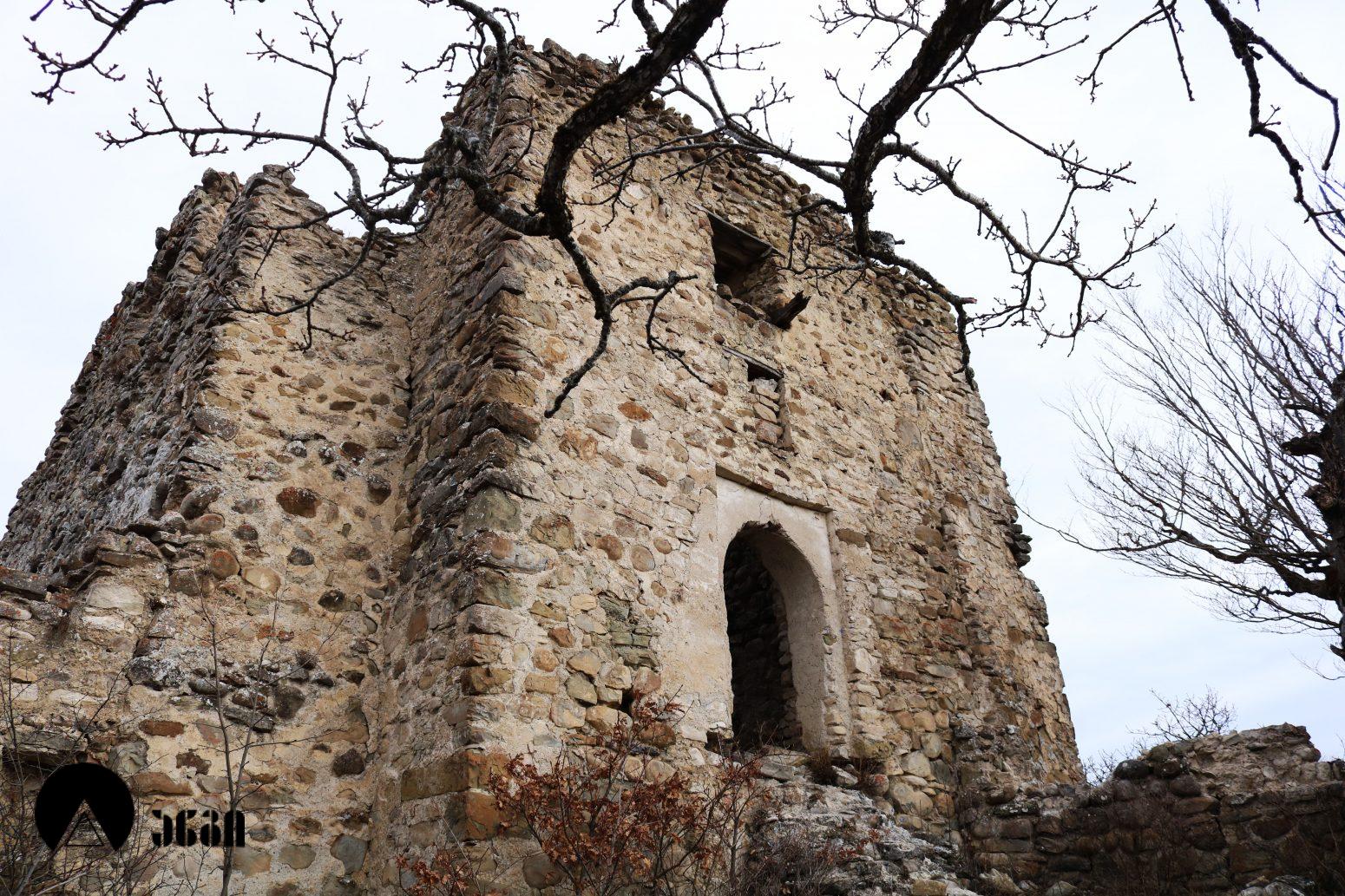 ცილინდრული კოშკი წმ. გიორგის ეკლესიის სამხრეთ–აღმოსავლეთით, პატარა გორაკზე დგას. იგი X საუკუნით თარიღდება. კოშკი გეგმით წრიული ფორმის სამსართულიანი ნაგებობაა. მას ჩრდილოეთიდან კონტრფორსის მსგავსი ნახევარწრიული ნაწილი ეკვრის, რომელშიც კიბის უჯრედია მოქცეული. კოშკი ნაგებია რიყისა და კლდის ნატეხი ქვებით.
