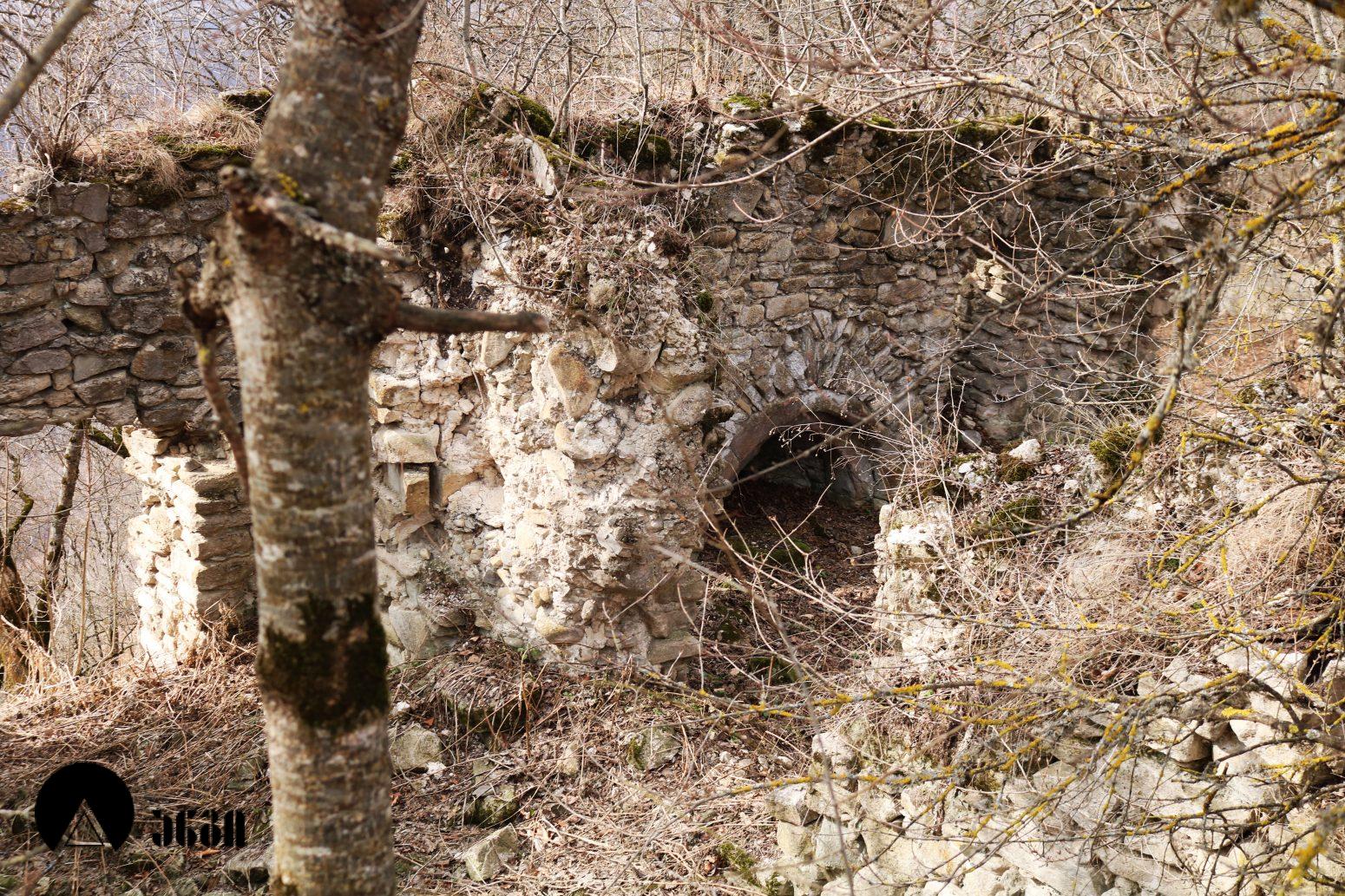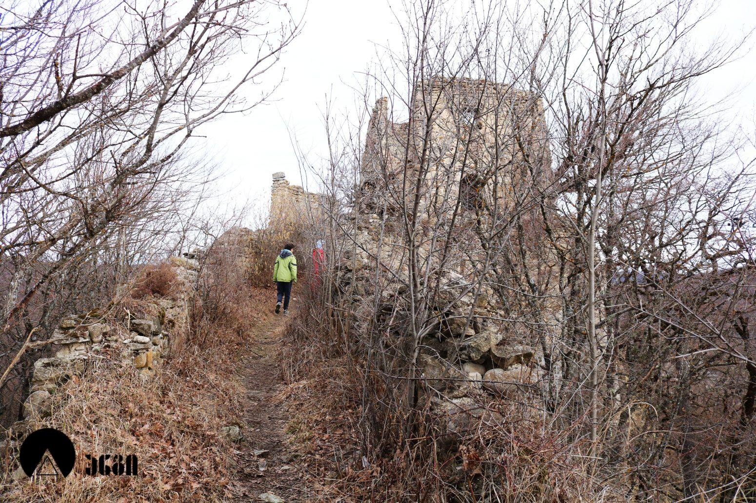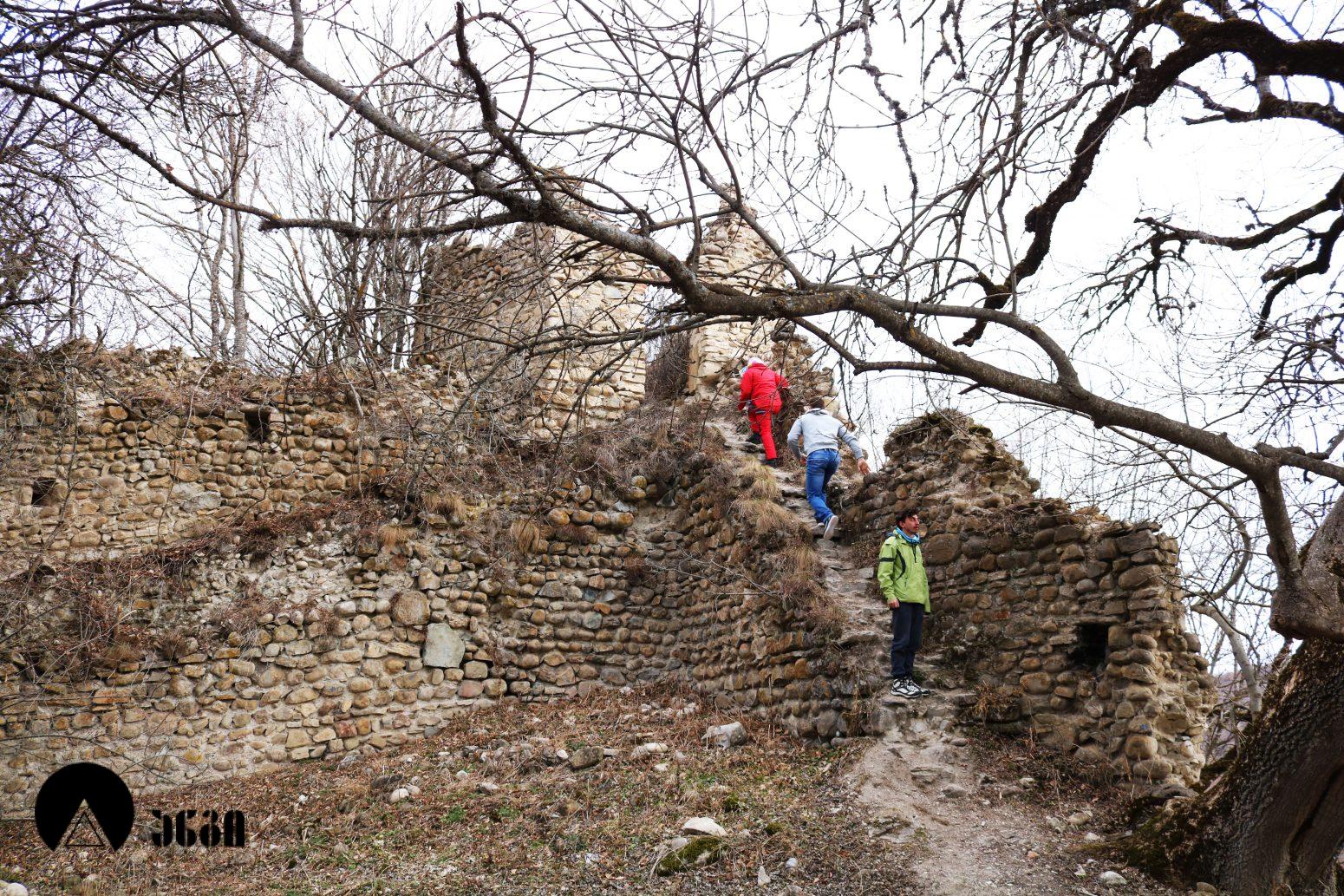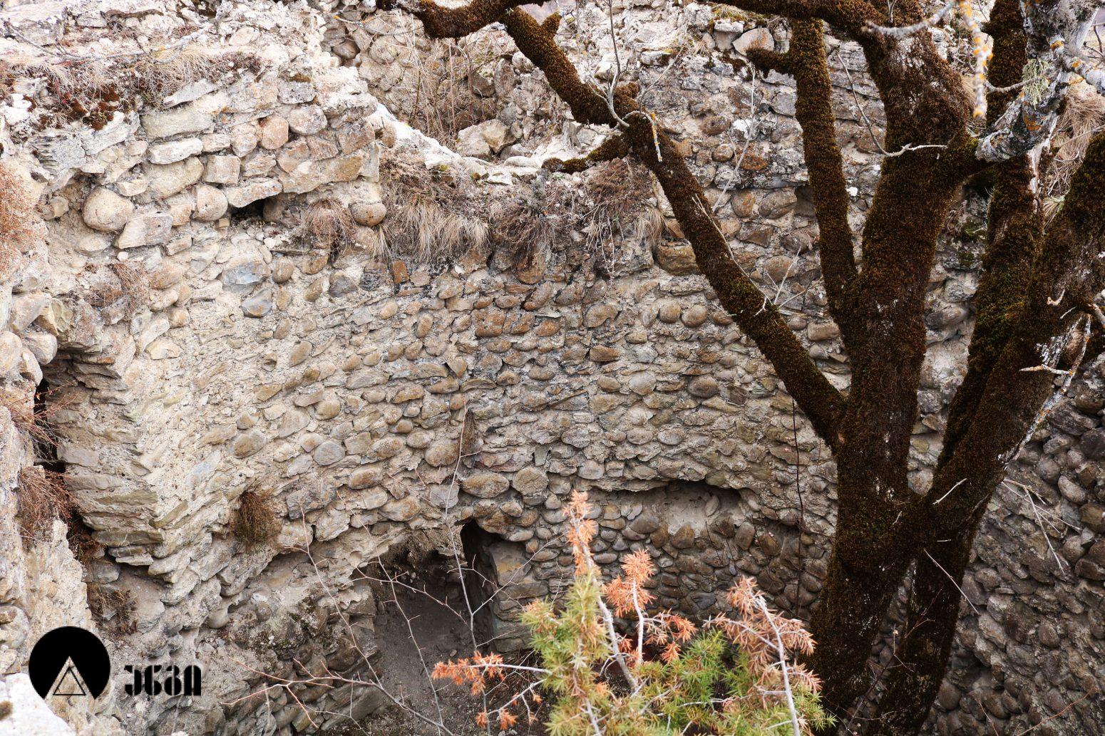ცილინდრული კოშკი წმ. გიორგის ეკლესიის სამხრეთ–აღმოსავლეთით, პატარა გორაკზე დგას. იგი X საუკუნით თარიღდება. კოშკი გეგმით წრიული ფორმის სამსართულიანი ნაგებობაა. მას ჩრდილოეთიდან კონტრფორსის მსგავსი ნახევარწრიული ნაწილი ეკვრის, რომელშიც კიბის უჯრედია მოქცეული. კოშკი ნაგებია რიყისა და კლდის ნატეხი ქვებით.