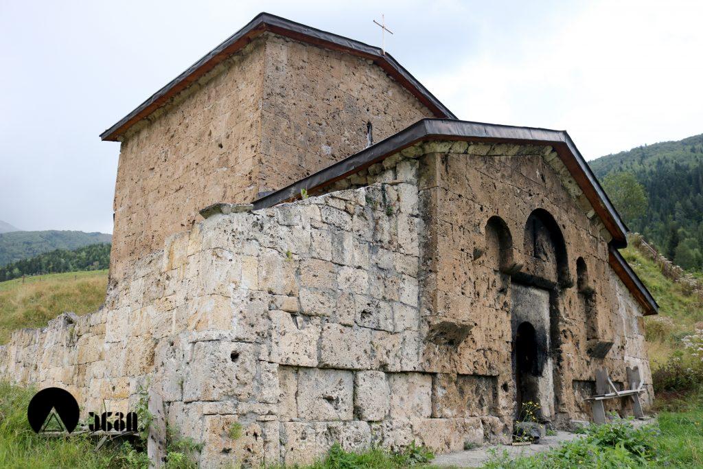 I წარწერა: “ქ. სახ[ე]ლითა ღ(მრ)თისაჲთ[ა] ჩ(უე)ნ, ამროლეანთა, ს[ა]მთა ძმათა ბენდეს, ამროლას და მიქაელს, მოგუცა ძალი ღ(მერთმა)ნ უმჯობესად მამ(ა)თა ჩ(უე)ნთაჲსა და აღვაშენეთ წ(მიდა)ჲ ესე ეკლესიაჲ, სალოცვ(ე)ლ(ა)[დ] სულის[ა] ჩ(უე)ნისა, და მო[ვ]წერ[ეთ] ზეო[ბ]ასა […] აფხ(ა)ზთა მეფისა, ქ(რისტ)ე, ა[დი]დ[ე]; ერისთ(ა)ვობასა […]სსა, ჰფარავ[დი]ნ [მათ ღ(მერ)]თი [და მ]აშენ[ებე]ლ[ნი][…]”.