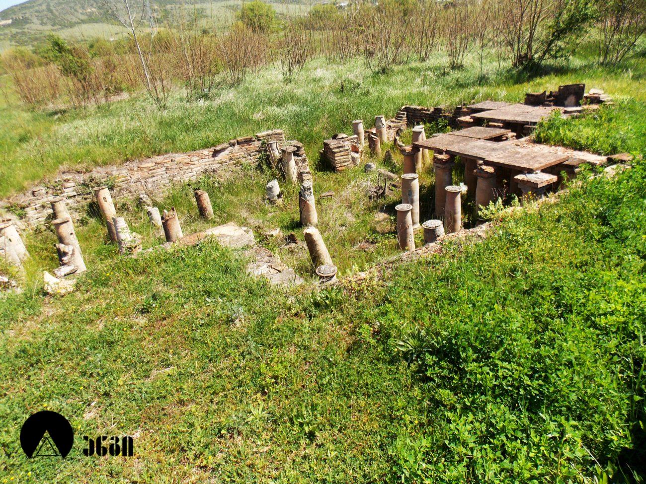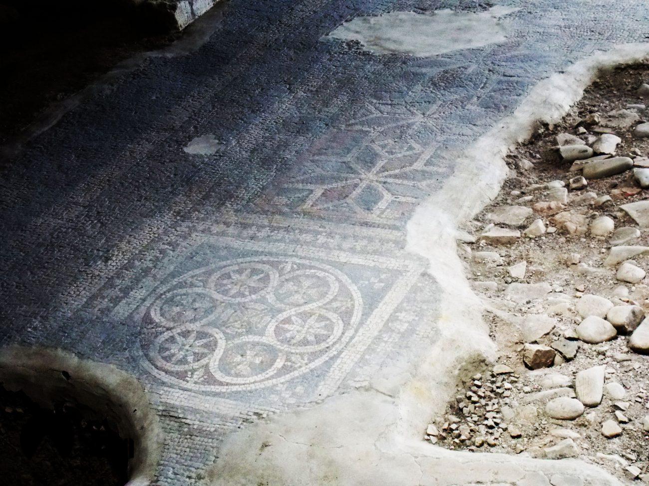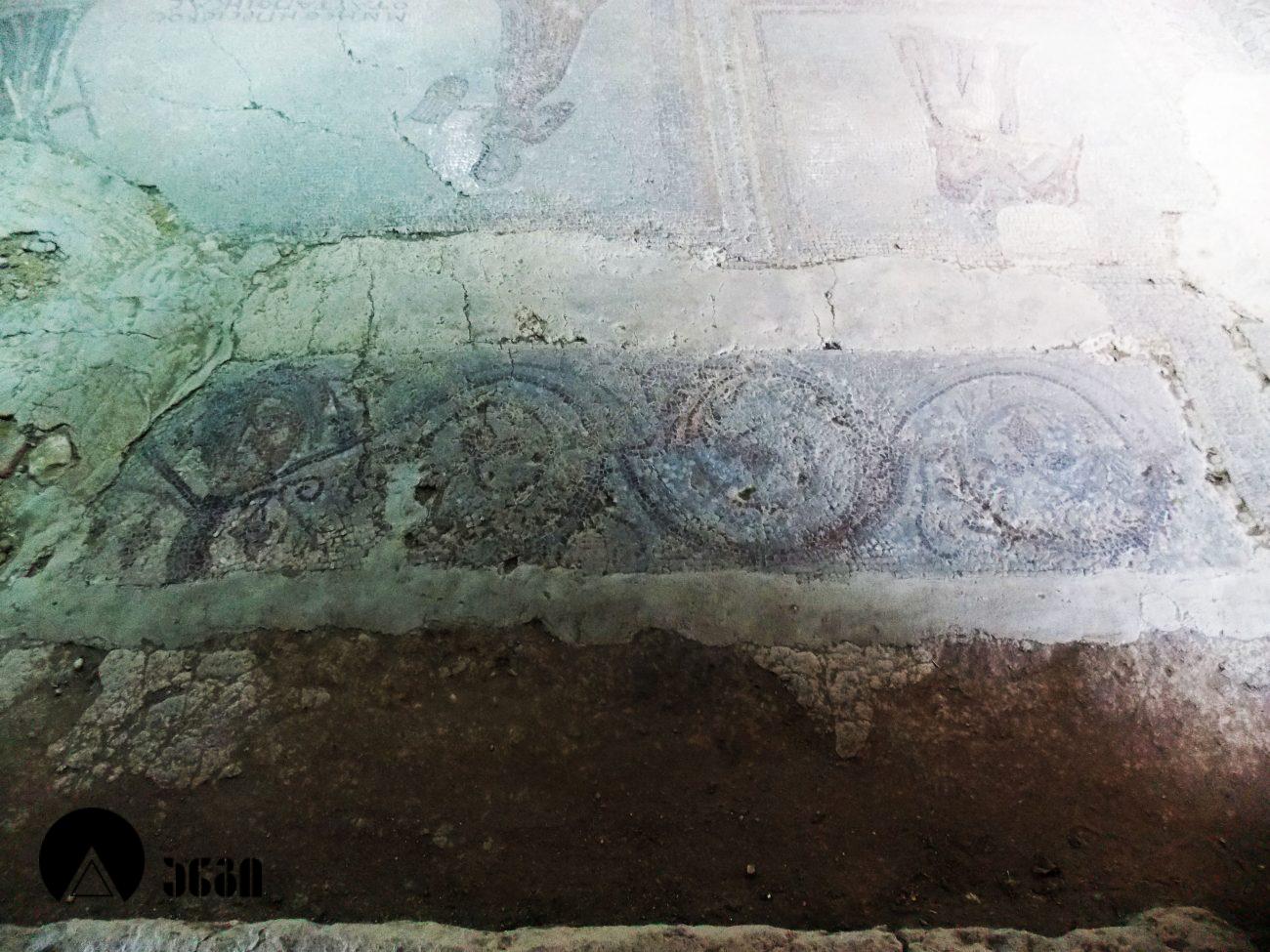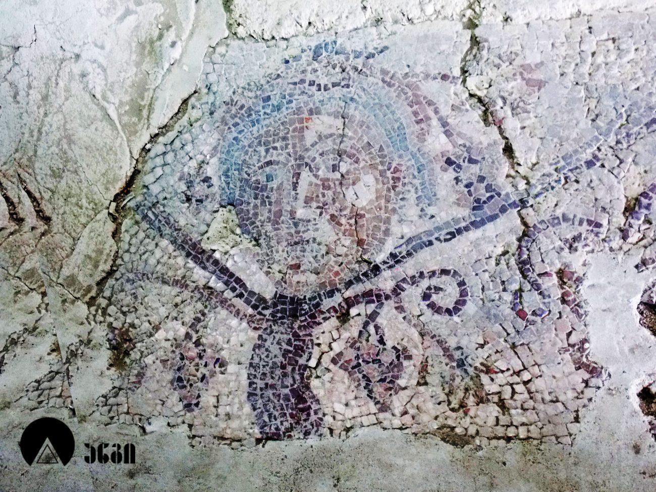 ტაძარი გეგმით სწორკუთხა ნაგებობაა და დარბაზისა და რამდენიმე დიდი სენაკისაგან შედგება. დარბაზს სამხრეთით საზეიმო შესასვლელი ჰქონდა. ზღურბლის წინ, ეზოს მხარეს ტუფისა და ქვიშაქვის თლილი ქვებით მოპირკეთებული მოედანია. დარბაზის იატაკს ახ. წ. II საუკუნით დათარიღებული მოზაიკა ამშვენებს, რომელიც თორმეტი ფერის კენჭებისაგან შედგება. კედლების გასწვრივ იატაკს შედარებით მსხვილი კენჭების მოზაიკური არშია შემოუყვება. მოზაიკის შუა ნაწილი ფართო, ტოლფერდიან ჯვარს წააგავს. ჰორიზონტალური მკლავის ცენტრალურ ნაწილში სიუჟეტური კომპოზიციაა, რომელზეც დიონისე და არიადნეა გამოსახული. მოზაიკა მთელი დარაბაზის იატაკს იკავებს და მრავალ გამოსახულებას მოიცავს. მოზაიკითა და თავად ნაგებობის ხასიათით სავარაუდოა, რომ საქმე გვაქვს ანტიკურ სამყაროში გავრცელებულ ე.წ. “დიონისეს სახლთან”. მოზაიკის ნაკვთების იკონოგრაფიას, ორნამენტების რეპერტუარსა და სტილს მოზაიკური ხელოვნების ანტიოქიის სკოლასთან აკავშირებენ.