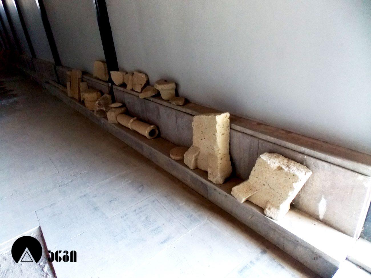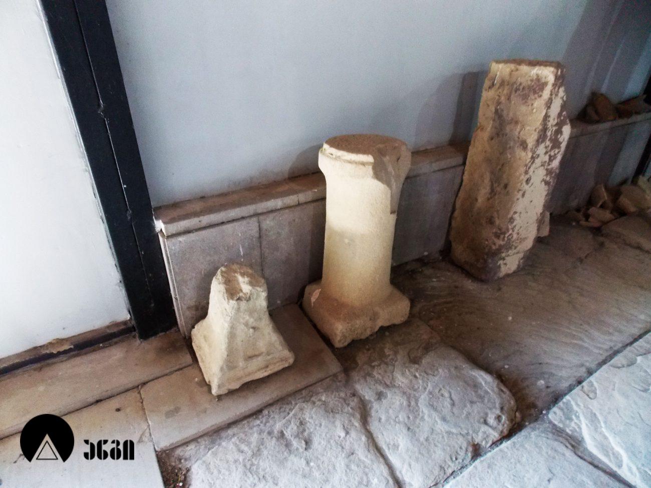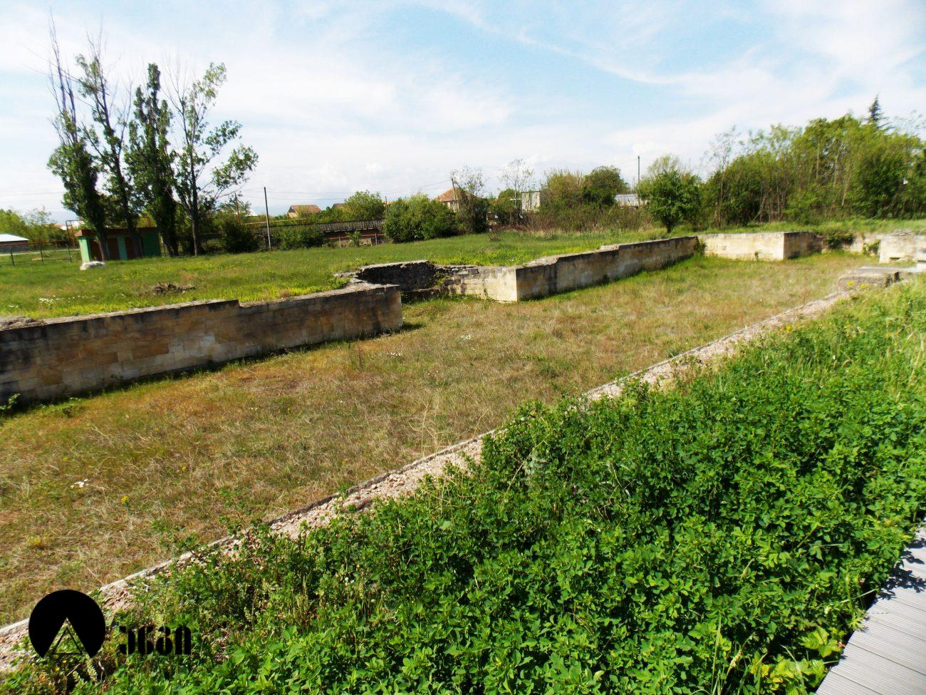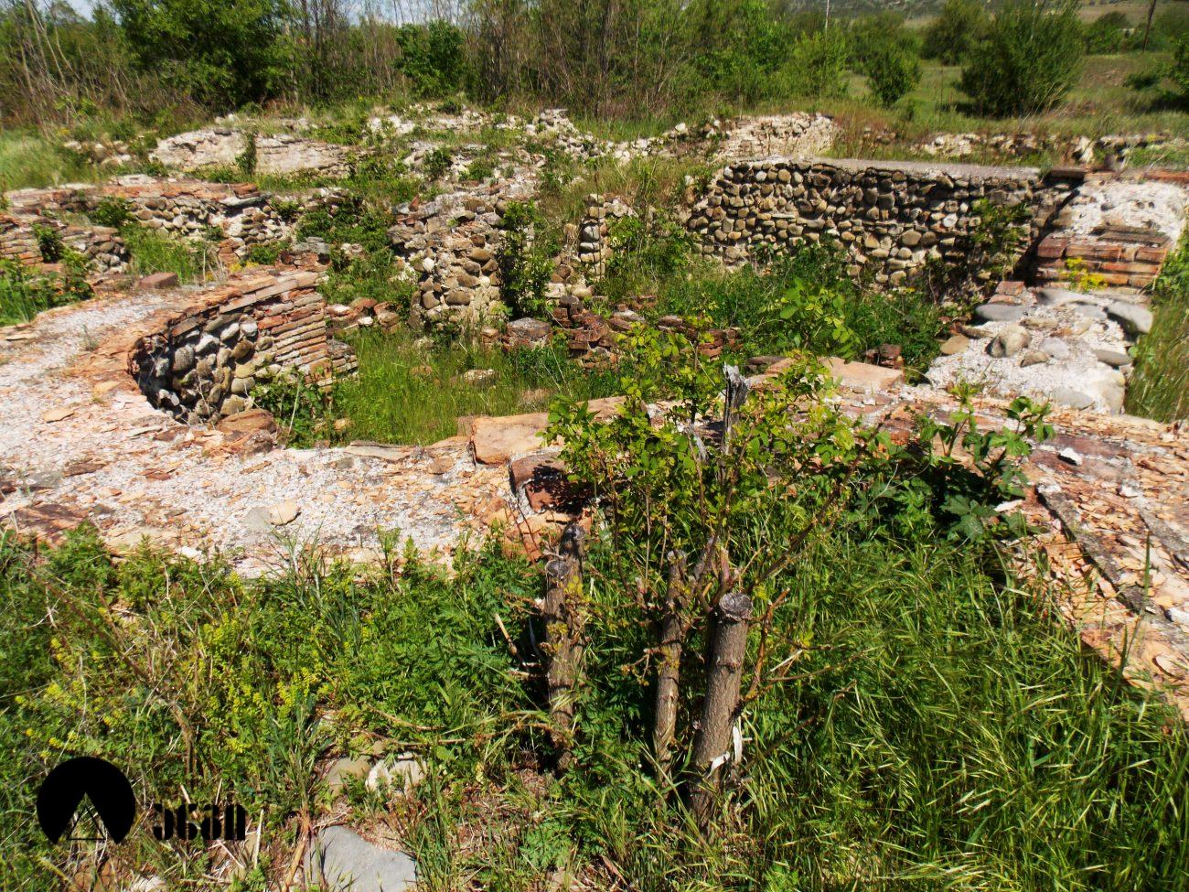აფსიდიანი ნაგებობა სასახლის სამხრეთით მდებარეობს და უფრო მოგვიანებით უნდა იყოს აშენებული. მისი კედლები სხვადასხვა სისქისაა. შენობაში ანფილადურადაა განლაგებული სამი დარბაზი და ოთახები მათ შორის. სამივე დარბაზი სამხრეთის მხარეს აფსიდით სრულდება. ორი აფსიდი ნახევარწრიულია, ცენტრალური, მთავარი დარბაზის აფსიდი კი სამწახნაგოვანია. აფსიდიანი დარბაზების კედლებში ვიწრო გამჭოლი თაღებია, რომლებიც სავარაუდოდ ცენტრალური გათბობის არხებისათვის იყო შექმნილი. მონაცემებზე დაყრდნობით ეს ადმინისტრაციული შენობაა, სადაც დარბაზები კურიებს – სხდომათა დარბაზებს წარმოადგენენ, მცირე ოთახები კი აღრიცხვისა და საქმის წარმოებისათვის იყო განკუთვნილი. სამშენებლო მასალად გამოყენებულია რიყის ქვა, ალიზის აგური და კირის დუღაბი, ნაგებობა გადახურული იყო კრამიტით.