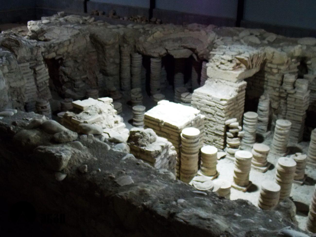 ძალისის საზოგადოებრივი აბანო II-IV საუკუნეებით თარიღდება. კომპლექსის ცენტრში მოთავსებულია ღია ეზო – ატრიუმი (7,75X6,95 მ). აქ ერთმანეთთან დაკავშირებული, ტუფის დიდი ფილებით დაგებული იატაკია შემორჩენილი, რომლის ცენტრშიც შადრევნიანი აუზია მოთავსებული. ატრიუმს დასავლეთიდან მცირე აფსიდიანი სენაკი ეკვრის. ამ სენაკს ატრიუმთან ორ სვეტს შორის მოთავსებული კარი აკავშირებს. დასავლეთით იწყება აბანოს ცივი, თბილი და ცხელი განყოფილებები. მათ სამხრეთის მხრიდან კარგად გამოხაზული აფსიდები აქვთ. თბილი და ცხელი აბანოს ქვეშ ჰიპოკაუსტების სისტემაა მოწყობილი. ატრიუმის აღმოსავლეთით გასახდელი იყო. გასახდელის ქვეშ სრულად არის შემონახული ჰიპოკაუსტის სვეტები. აბანოს კედლებში ვერტიკალურად ჩაყოლებულია კერამიკული მილები, რომლებიც კერამიკული ფილებით არის დაფარული. ამ ფილებსა და კედელს შორის რჩება 3-4 მმ სივრცე, რომელშიც ცხელი ჰაერი მოედინებოდა ოთახების გასათბობად. აღსანიშნავია, რომ კერამიკულ მილსადენთან ერთად ძალისში აღმოჩენილია ტყვიის მილებისაგან შედგენილი წყალსადენიც.
