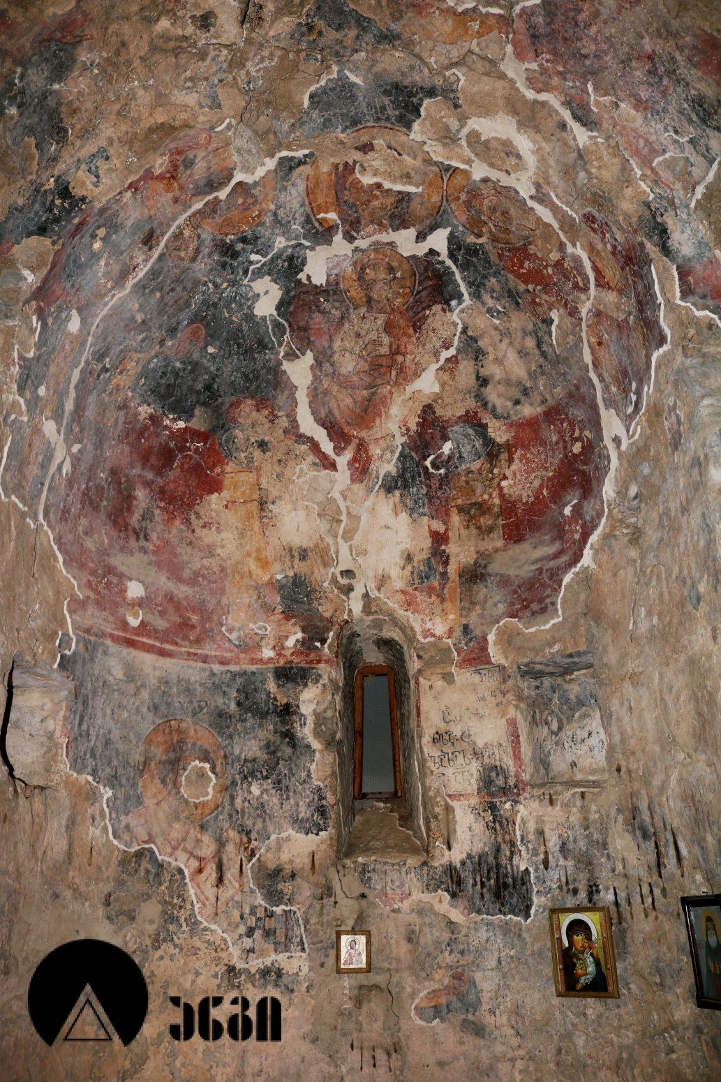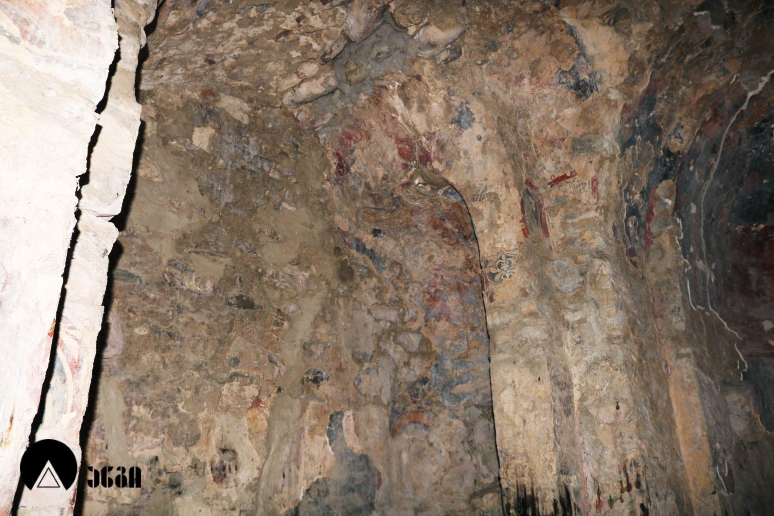 ტაძრის ინტერიერში შემორჩენილია გვიანი შუა საუკუნეების ძალიან დაზიანებული ე.წ. “ხალხური” რიგის მხავრობა. კონქში გამოსახულია ღვთისმშობელი ყრმით და ორი მთავარანგელოზი, საკურთხევლის მეორე რეგისტრში კი – მსხვერპლის თაყვანისცემა. საკურთხეველში გვხვდება ვინმე ლალასშვილის სულის მოსახსენიებელი ექვსსტრიქონიანი ასომთავრული დაზიანებული წარწერა. ბემის კამარაში ორი წმინდანია გამოსახული. ჩრდილოეთ მკლავის აფსიდის კონქში წმინდანი ქალის გამოსახულებაა. აფსიდის მეორე რეგისტრში გამოსახული იყო ეკლესიის ორი მამა. ჩრდილოეთ მკლავის ჩრდილოეთ კედლის დასავლეთ მონაკვეთი, დასავლეთ კედელი და დასავლეთ მკლავის ქვედა რეგისტრი ისტორიულ პირთა ფიგურებს ეთმობოდა. ჩრ. მკლავის ჩრ. კედელზე შემორჩენილია წარწერა, სადაც განირჩევა სახელი “ამარინდო”. ქტიტორის გამოსახულება, საყდრის სქემატური მოდელით ხელში, გამოსახულია დასავლეთ მკლავის ჩრდილოეთ კედელზე. სამხრეთ მკლავის სამხრეთ კედელზე ფრაგმენტია შემორჩენილი – მჯდომარე ქალი ყრმით. ჩრდილო-აღმოსავლეთ ტრომპში მახარებლის წელსზევითი გამოსახულებაა. ეკლესიის აღმოსავლეთ ფასადზე შემორჩენილია საფასადო მოხატულობის მცირე კვალიც, რაც სვანეთის გარეთ იშვიათია.