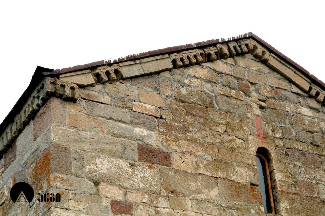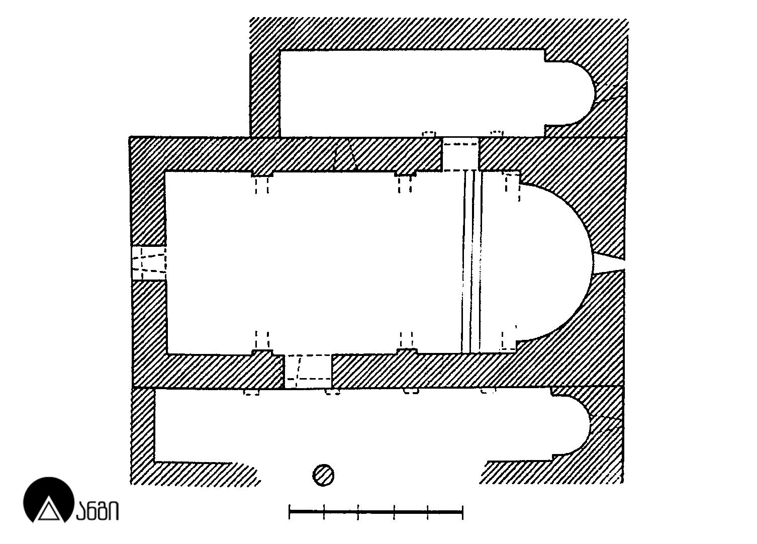 ტაძარი აზიდული, ჰარმონიული პროპორციებით ხასიათდება, რაც დამახასიათებელია ამ პერიოდის ძეგლებისთვის. ფასადები სადაა, მხატვრულ სახეს ნათელად გამოხატული ლაკონური ფორმები, სუფთად თლილი ქვების წყობა, კბილანა ლავგარდანი და სამთაღედით გახსნილი მინაშენი ქმნის (მინაშენისგან მცირე ნაშთებია შემორჩენილი). ეკლესია დარბაზულ ნაგებობას წარმოადგენს, სამხრეთისა და ჩრდილოეთის მინაშენებით. ორივე მინაშენი დღესდღეობით თითქმის სრულიად განადგურებულია. შესასვლელი ორია – სამხრეთითა და დასავლეთით, ორივე შესასვლელი გარედან არქიტრავულია, შიგნიდან კი – თაღოვანი. დარბაზი აღმოსავლეთით ნახევარწრიული აფსიდით სრულდება, რომელიც გამოყოფილია მხრებით. გრძივი კედლები დანაწევრებულია ორი წყვილი პილასტრით, რომლებზეც კამარის საყრდენი თაღებია გადაყვანილი. დარბაზი გადახურულია რკინა-ბეტონის ცილინდრული კამარით. სატრიუმფო თაღი, რომლისგანაც მხოლოდ სამხრეთის იმპოსტი და თაღის ქუსლია შემორჩენილი, კონსოლებს ეყრდნობოდა. კონსოლები ტალღოვანი ზოლებითა და ვარდულებითაა დეკორირებული, ასევე გაფორმებული იმპოსტიც. ტაძარი ხუთი სარკმლით ნათდება – აღმოსავლეთ, დასავლეთ და ჩრდილოეთ კედლებში თითო თაღოვანი სარკმელია გაჭრილი, სამხრეთისაში – ორი. დასავლეთის სარკმელი შიგნით სათაურითაა შემკული (ორ ლილვს შორის მოქცეული რელიეფური ზოლი), რაც იშვიათად გვხვდება ქართულ ხუროთმოძღვრებაში. ინტერიერი მთლიანად მოხატული ყოფილა, ამჟამად მხატვრობა სრულიად განადგურებულია. სამხრეთის მინაშენი მთელს სიგრძეზე გასდევს ეკლესიას და გეგმაში წრიულ სვეტებზე გადაყვანილი სამი თაღით იყო გახსნილი. თაღედისგან მხოლოდ საყრდენი სვეტები და დასავლეთის თაღის ქუსლია შემორჩენილი. ეკლესიის მთავარი დარბაზი ჩრდილოეთის მინაშენს კარით უკავშირდება. ორივე მინაშენი აღმოსავლეთით აფსიდალურია. ფასადები სადაა, დაუნაწევრებელი. კედლებს პატარა თაღებისგან შედგენილი კბილანა ლავგარდანი ასრულებს. ნანგრევებში ასევე აღმოჩნდა ლავგარდნის ქვები, რომლებიც შემკულია უფრო რთული დეკორატიული მოტივებით, ვარდულებით, ყურძნის მტევნებით და სხვა. აღმოსავლეთის სარკმელს გრეხილი ლილვის სათაური ამკობს, რომელსაც აზნექილი კიდეები აქვს. არმოსავლეთ ფასადზე ლაპიდარული წარწერაა: „წდი გიორგის ოქრო“. ეკლესია ნაგებია თბილი ტონალობის სუფთად ტუფით, რიგების ჰორიზონტალობის დაცვით. ტაძარს შემოვლებული ჰქონია თლილი ქვით ნაგები, ოთხკუთხა მოხაზულობის გალავანი, რომელიც ნაწილობრივ არის შემორჩენილი.