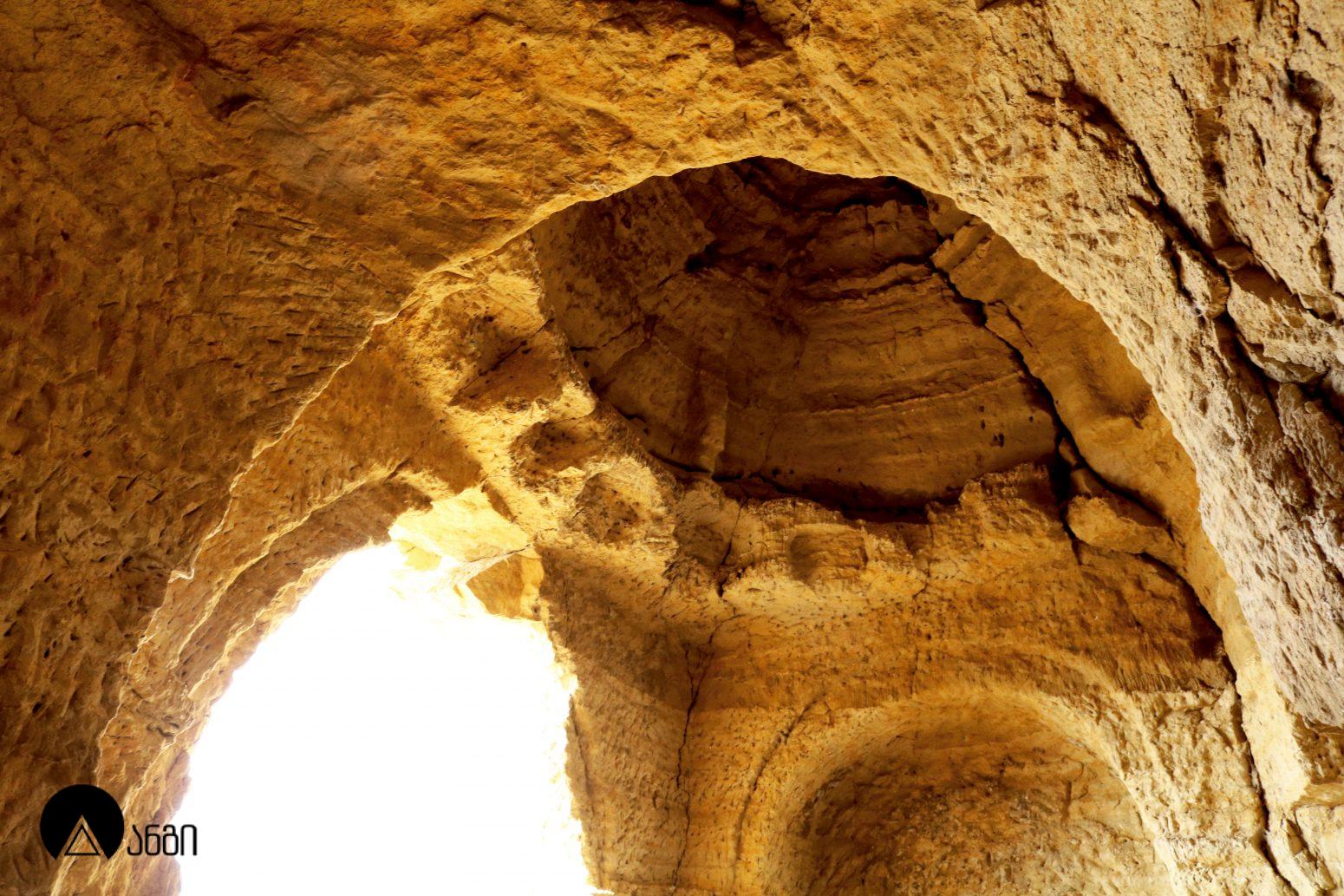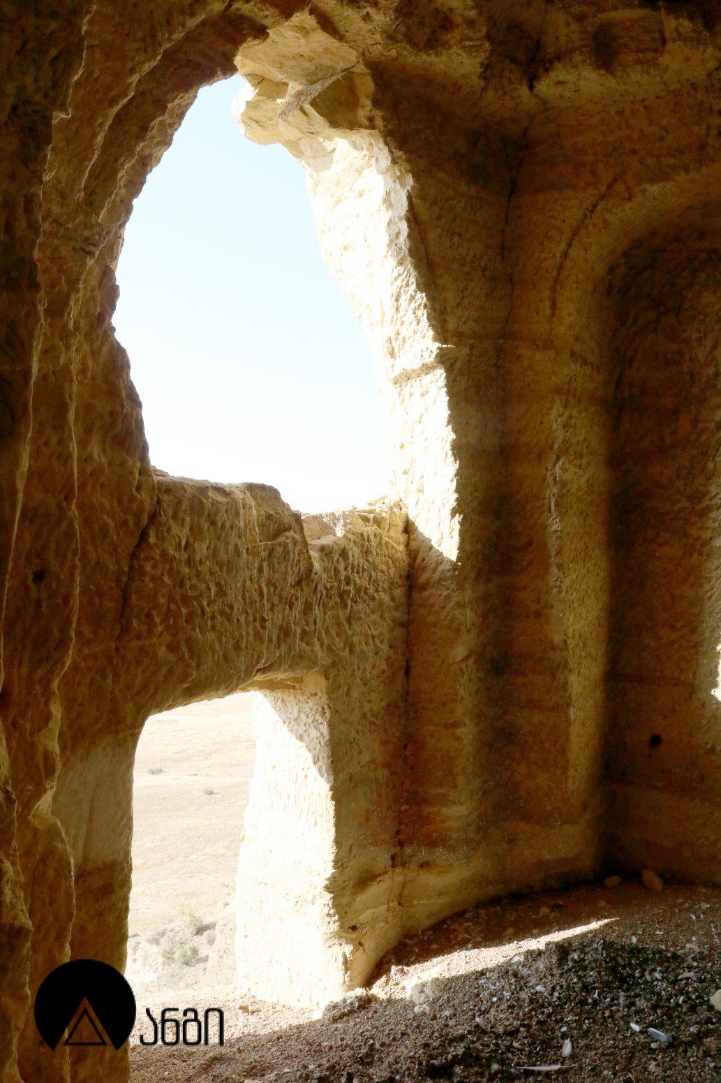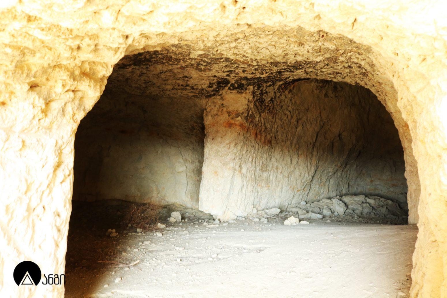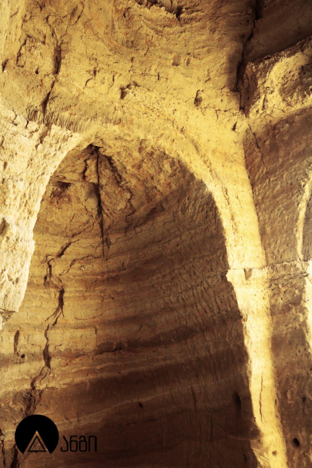 აფსიდიანი ეკლესია ორი განყოფილებისგან შედგება, რომლებიც ერთმანეთს დიდი თაღოვანი ღიობით უკავშირდება. ღიობის თაღი, ქვედა ნაწილთან შედარებით, უფრო განიერია და თაღის ვიწრო თაროებით აქცენტირება ხდება. გამყოფ კედელში, გასასვლელის აღმოსავლეთით თაღოვანი სარკმელია გაჭრილი. პირველი განყოფილების აღმოსავლეთ კედელში გეგმაში სწორკუთხა, თაღოვანი, დიდი, საკმაოდ ღრმა ნიშაა. ქვაბულის გადახურვა, ცენტრში შემაღლებულია განივ (ჩრდილოთ-სამხრეთ) ღერძზე. კედლებს ჩამოსაჯდომი საფეხური მიუყვება. მეორე განყოფილებას აღმოსავლეთით ღრმა აფსიდი აქვს, რომელიც ერთი საფეხურითაა შემაღლებული. საკურთხეველში ტრაპეზია. სამლოცველოს ჩრდილოეთ კედელში ღრმა, დიდი თაღოვანი ნიშია, რომლის სამივე კედელში მცირე თაღოვანი ნიშია გამოკვეთილი, აღმოსავლეთისა და დასავლეთის ნიშები თანაბარი სომაღლისაა, ჩრდილოეთისა კი უფრო დაბალია. აღმოსავლეთის ნიში პატარა საკურთხეველს წარმოადგენს. პირველი განყოფილება დასავლეთით თაღოვანი ღიობითა და ორსაფეხურიანი კიბით ორნაწილიან სათავსს უკავშირდება. სათავსი სამეურნეო დანიშნულებისა უნდა ყოფილიყო, მის იატაკში რამდენიმე ორმოა. ეკლესიის აღმოსავლეთით ორგანყოფილებიანი ქვაბულია, რომლის კედლებში თაროებია გამოკვეთილი.