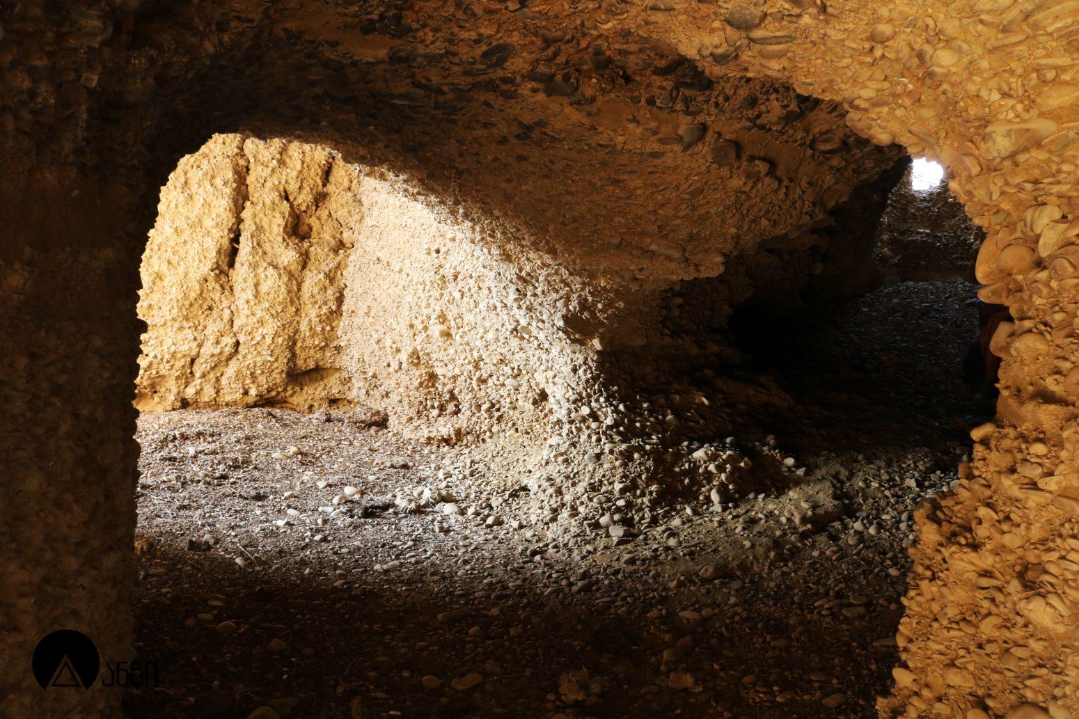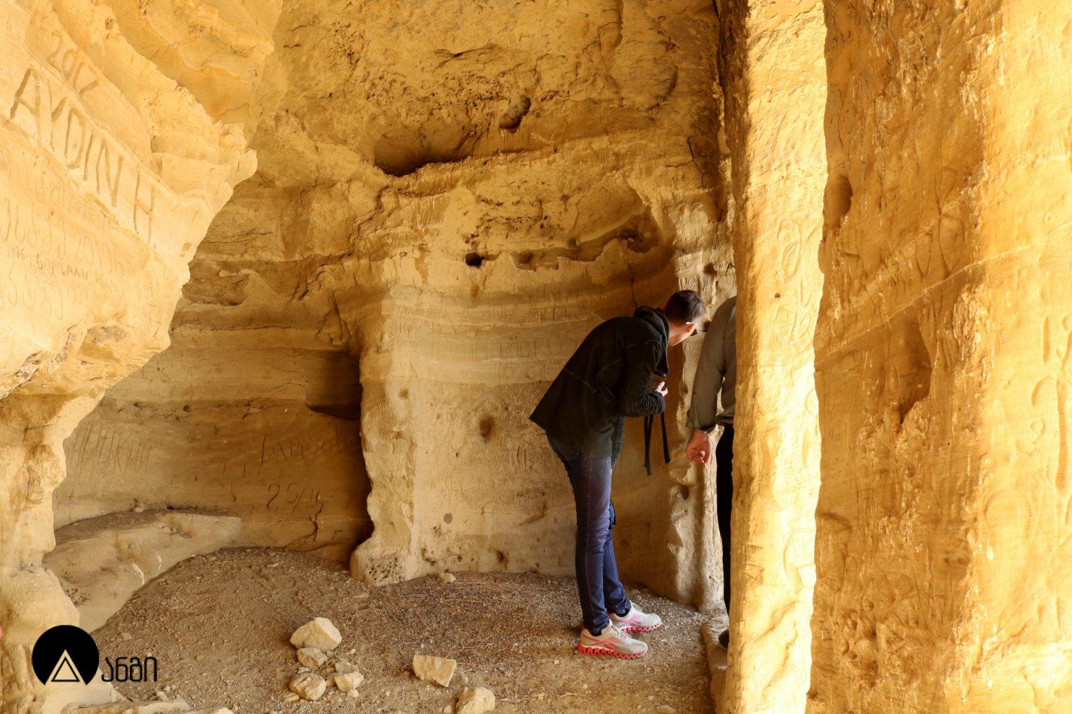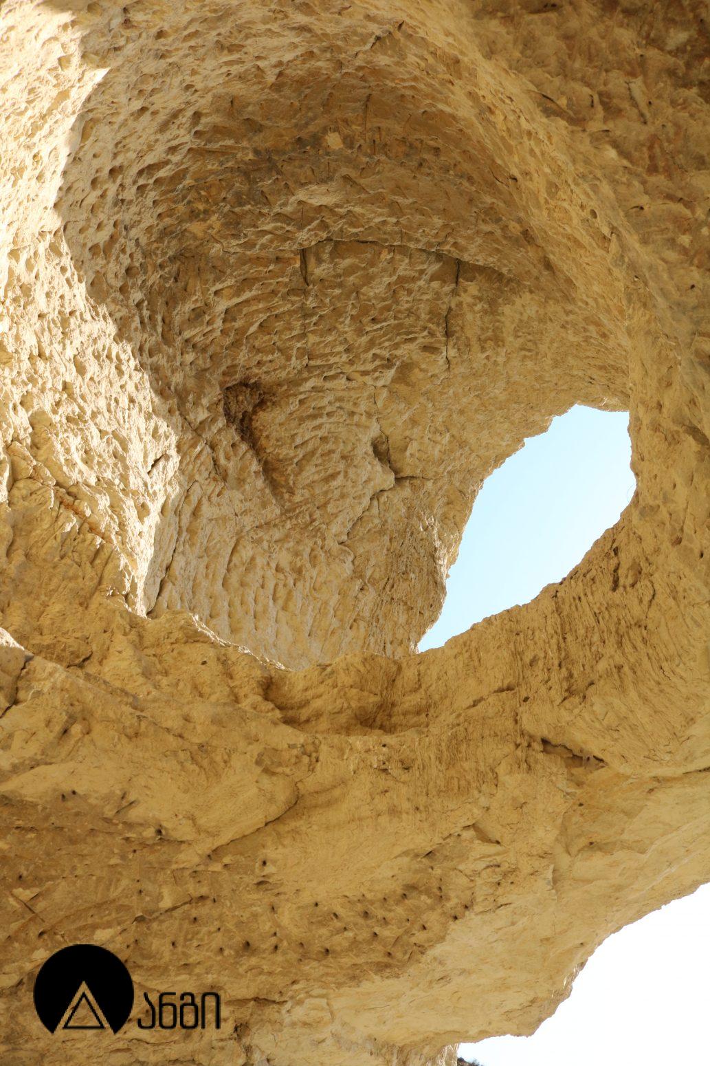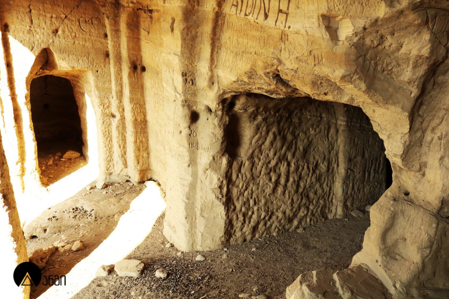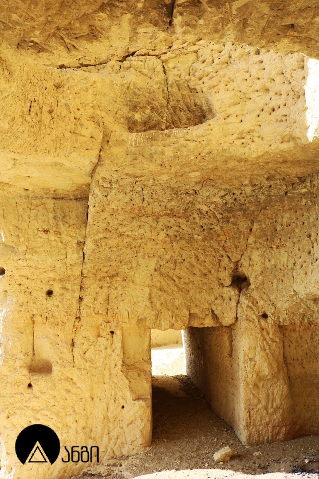 აფსიდიანი ეკლესია ორი განყოფილებისგან შედგება, რომლებიც ერთმანეთს დიდი თაღოვანი ღიობით უკავშირდება. ღიობის თაღი, ქვედა ნაწილთან შედარებით, უფრო განიერია და თაღის ვიწრო თაროებით აქცენტირება ხდება. გამყოფ კედელში, გასასვლელის აღმოსავლეთით თაღოვანი სარკმელია გაჭრილი. პირველი განყოფილების აღმოსავლეთ კედელში გეგმაში სწორკუთხა, თაღოვანი, დიდი, საკმაოდ ღრმა ნიშაა. ქვაბულის გადახურვა, ცენტრში შემაღლებულია განივ (ჩრდილოთ-სამხრეთ) ღერძზე. კედლებს ჩამოსაჯდომი საფეხური მიუყვება. მეორე განყოფილებას აღმოსავლეთით ღრმა აფსიდი აქვს, რომელიც ერთი საფეხურითაა შემაღლებული. საკურთხეველში ტრაპეზია. სამლოცველოს ჩრდილოეთ კედელში ღრმა, დიდი თაღოვანი ნიშია, რომლის სამივე კედელში მცირე თაღოვანი ნიშია გამოკვეთილი, აღმოსავლეთისა და დასავლეთის ნიშები თანაბარი სომაღლისაა, ჩრდილოეთისა კი უფრო დაბალია. აღმოსავლეთის ნიში პატარა საკურთხეველს წარმოადგენს. პირველი განყოფილება დასავლეთით თაღოვანი ღიობითა და ორსაფეხურიანი კიბით ორნაწილიან სათავსს უკავშირდება. სათავსი სამეურნეო დანიშნულებისა უნდა ყოფილიყო, მის იატაკში რამდენიმე ორმოა. ეკლესიის აღმოსავლეთით ორგანყოფილებიანი ქვაბულია, რომლის კედლებში თაროებია გამოკვეთილი.
