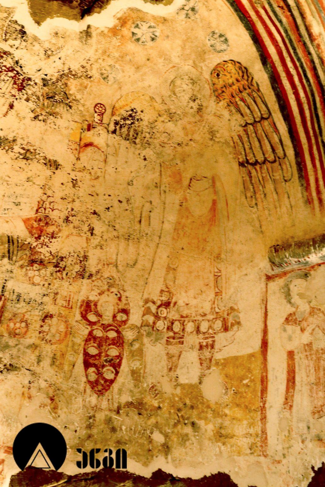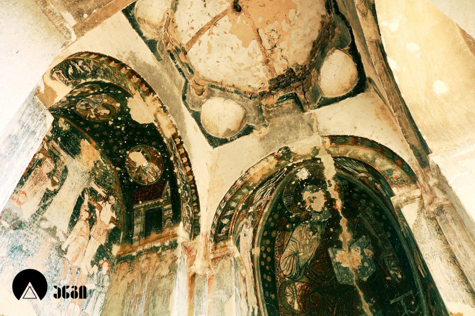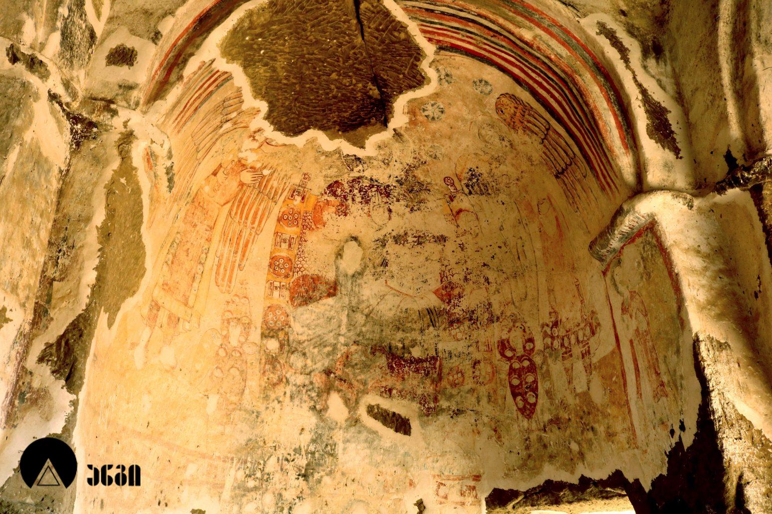 მოხატულ ეკლესიათაგან ერთი დარბაზულია, სამი კი გუმბათოვანი. დარბაზული ეკლესიის მხატვრობა IX საუკუნით თარიღდება და თბილი კოლორიტით ხასიათდება. აქ საკურთხეველში ვარსკვლავიანი ცის ფონზე გამოსახულია ტახტზე მჯდომი ქრისტე მთავარანგელოზებთან ერთად. საკურთხევლის ქვედა ნაწილში გამოსახულნი ყოფილან მოციქულები და დიაკვნები. ეკლესია სამხრეთით სამლოცველოს უკავშირდებოდა, რომლისგანაც ძალიან მცირე ნაწილია დარჩენილი. განსაკუთრებულად საყურედღებოა სამლოცველოს ნიშის კომპოზიცია, აქ გამოსახულია ჯვარცმის სცენა. ქრისტე გამოსახულია გრძელი პერანგით, რაც ადრეული შუა საუკუნეებისთვისაა დამახასიათებელი. ეს ფრესკა უნიკალურია, აქ გვხვდება ავაზაკთა წარწერები ავაზაკთა სახელებით – დოვიმაქსი და გესტოსი (დღემდე ცნობილ წყაროებში გვხვდება სახელები დისმასი და გესტასი). როგორც ცნობილია, ქრისტესთან ერთად ჯვარცმული ავაზაკების სახელები მხოლოდ ნიკოდიმოსის სახარებაშია დაცული (აპოკრიფული სახარება, რომლის უძველესი ხელნაწერი IV საუკუნით თარიღდება). მომდევნო (VI) ეკლესიის მოხატულობისგან უმცირესი ფრაგმენტებია დარჩენილი, გაირჩევა, რომ საკურთხეველში აქაც ტახტზე მჯდომი ქრისტე ყოფილა გამოსახული ანგელოზებთან ერთად, მაცხოვრის ქვემოთ კი – ღვთისმშობელი მოციქულების თანხლებით. ჩრდილოეთ კედელზე ჯვარცმის სცენა იყო, რომელიც თითქმის აღარ იკითხება. ეკლესიის სამხრეთით მდებარე სამლოცველოს აფსიდში გამოსახულია ღვთისმშობელი ყრმით მთავარანგელოზებთან ერთად. ეს ფრესკა დამოუკიდებელი სამლოცველოს საკურთხეველში ღვთისმშობლისა და მთავარანგელოზების გამოსახვის პირველ ნიმუშად ითვლება. საყურადღებოა ისიც, რომ აქ მთავარანანგელოზებად არიან არა მიქაელი და გაბრიელი, როგორც ტრადიციულად გვხვდება, არამედ სორიელი და ურიელი (შემორჩენილია წარწერები). ამ მთავარანგელოზთა სახელები მხოლოდ ძველი აღქმის არაკანონიკურ თხზულებებში ჩანს. კვეთის დახვეწილობითა და მოხატულობით ყურადღებას იქცევს VII ეკლესია (თარიღდება X საუკუნით). ძალიან შთამბეჭდავია ნატიფად გამოყვანილი მკვეთრი ფორმები. საკურთხეველში ტახტზე მჯდომი მაცხოვრის ფიგურაა, რომელსაც მიქაელ და გაბრიელ მთავარანგელოზები აღამაღლებენ. ჩრდილოეთ კედელზე ჯვარცმის მრავალფიგურიანი, უნიკალური კომპლოზიციაა, ქრისტე გრძელი პერანგით, ავაზაკები, რომლებსაც რომაელი ჯარისკაცები ფეხებს თოკებით უკრავენ. ქრისტეს მარცხნივ გვირგვინოსანი ქალია, რომელიც ეკლესიას განასახიერებს. აქვეა რომაელი ასისთავი ლონგინოზი შუბით ხელში. ნიშის კამარაზე მოცემ