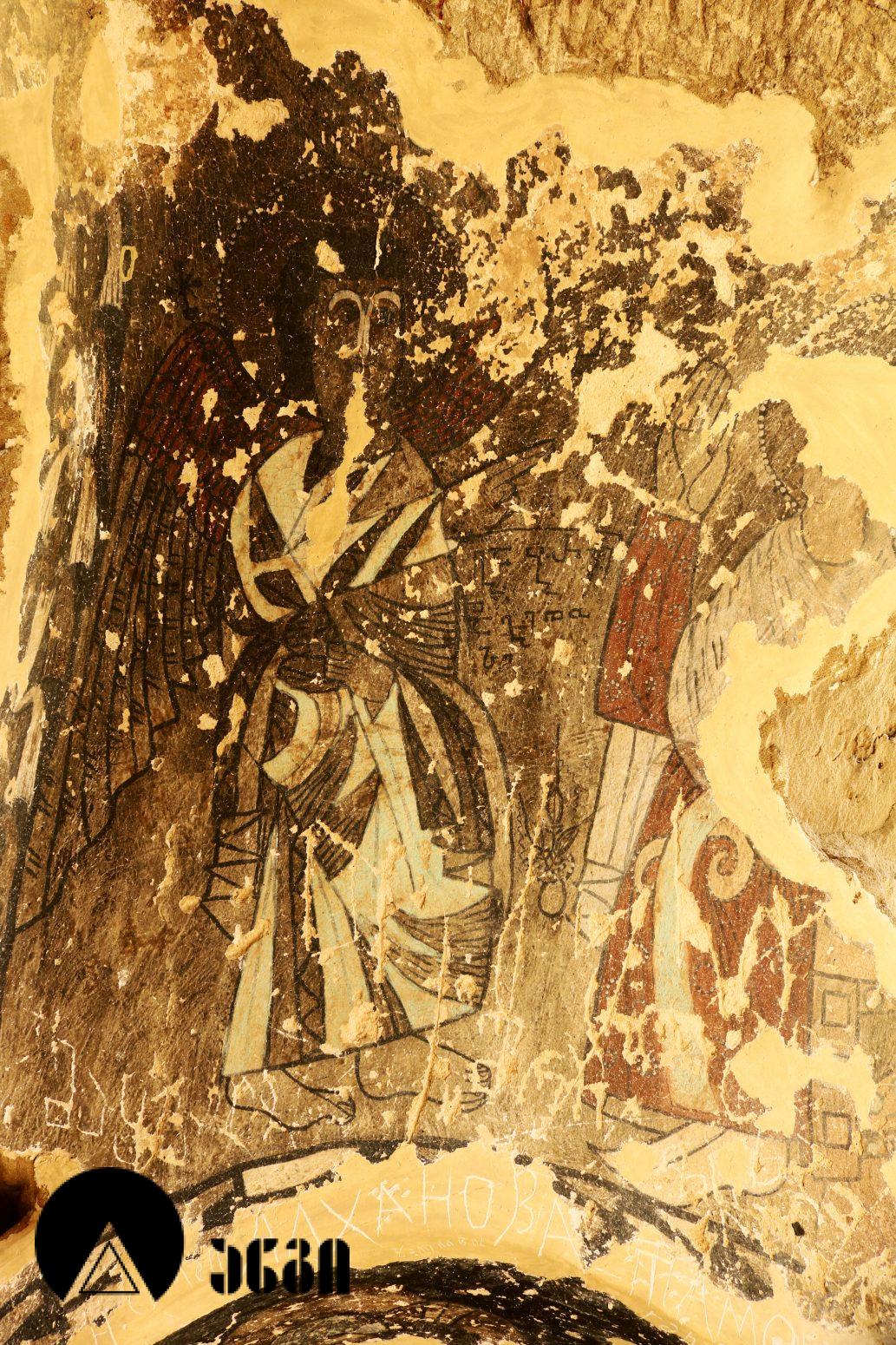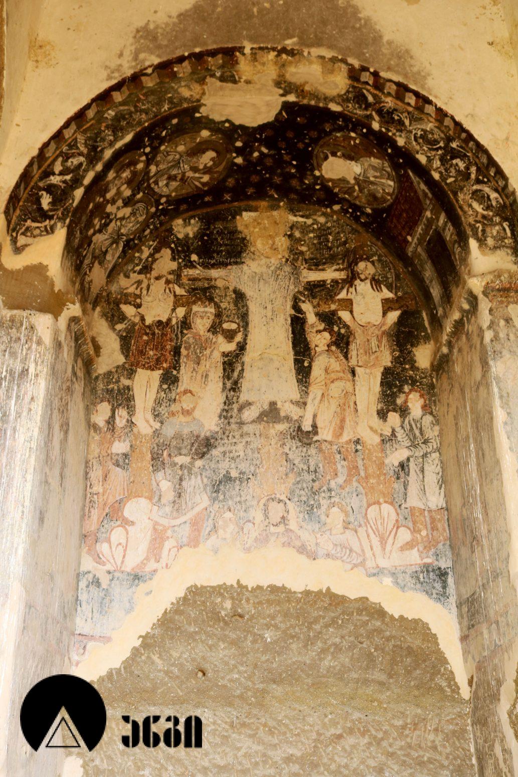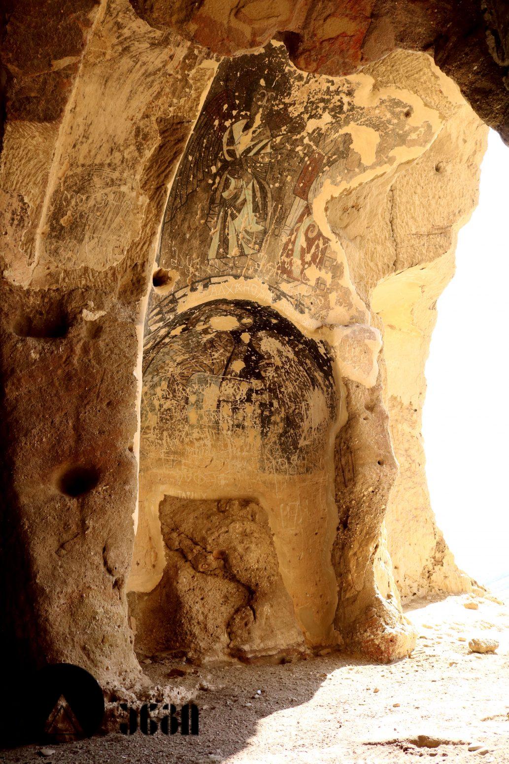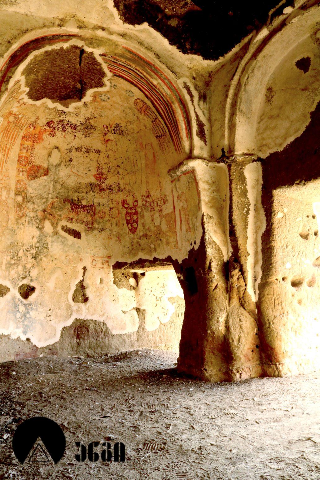 მოხატულ ეკლესიათაგან ერთი დარბაზულია, სამი კი გუმბათოვანი. დარბაზული ეკლესიის მხატვრობა IX საუკუნით თარიღდება და თბილი კოლორიტით ხასიათდება. აქ საკურთხეველში ვარსკვლავიანი ცის ფონზე გამოსახულია ტახტზე მჯდომი ქრისტე მთავარანგელოზებთან ერთად. საკურთხევლის ქვედა ნაწილში გამოსახულნი ყოფილან მოციქულები და დიაკვნები. ეკლესია სამხრეთით სამლოცველოს უკავშირდებოდა, რომლისგანაც ძალიან მცირე ნაწილია დარჩენილი. განსაკუთრებულად საყურედღებოა სამლოცველოს ნიშის კომპოზიცია, აქ გამოსახულია ჯვარცმის სცენა. ქრისტე გამოსახულია გრძელი პერანგით, რაც ადრეული შუა საუკუნეებისთვისაა დამახასიათებელი. ეს ფრესკა უნიკალურია, აქ გვხვდება ავაზაკთა წარწერები ავაზაკთა სახელებით – დოვიმაქსი და გესტოსი (დღემდე ცნობილ წყაროებში გვხვდება სახელები დისმასი და გესტასი). როგორც ცნობილია, ქრისტესთან ერთად ჯვარცმული ავაზაკების სახელები მხოლოდ ნიკოდიმოსის სახარებაშია დაცული (აპოკრიფული სახარება, რომლის უძველესი ხელნაწერი IV საუკუნით თარიღდება). მომდევნო (VI) ეკლესიის მოხატულობისგან უმცირესი ფრაგმენტებია დარჩენილი, გაირჩევა, რომ საკურთხეველში აქაც ტახტზე მჯდომი ქრისტე ყოფილა გამოსახული ანგელოზებთან ერთად, მაცხოვრის ქვემოთ კი – ღვთისმშობელი მოციქულების თანხლებით. ჩრდილოეთ კედელზე ჯვარცმის სცენა იყო, რომელიც თითქმის აღარ იკითხება. ეკლესიის სამხრეთით მდებარე სამლოცველოს აფსიდში გამოსახულია ღვთისმშობელი ყრმით მთავარანგელოზებთან ერთად. ეს ფრესკა დამოუკიდებელი სამლოცველოს საკურთხეველში ღვთისმშობლისა და მთავარანგელოზების გამოსახვის პირველ ნიმუშად ითვლება. საყურადღებოა ისიც, რომ აქ მთავარანანგელოზებად არიან არა მიქაელი და გაბრიელი, როგორც ტრადიციულად გვხვდება, არამედ სორიელი და ურიელი (შემორჩენილია წარწერები). ამ მთავარანგელოზთა სახელები მხოლოდ ძველი აღქმის არაკანონიკურ თხზულებებში ჩანს. კვეთის დახვეწილობითა და მოხატულობით ყურადღებას იქცევს VII ეკლესია (თარიღდება X საუკუნით). ძალიან შთამბეჭდავია ნატიფად გამოყვანილი მკვეთრი ფორმები. საკურთხეველში ტახტზე მჯდომი მაცხოვრის ფიგურაა, რომელსაც მიქაელ და გაბრიელ მთავარანგელოზები აღამაღლებენ. ჩრდილოეთ კედელზე ჯვარცმის მრავალფიგურიანი, უნიკალური კომპლოზიციაა, ქრისტე გრძელი პერანგით, ავაზაკები, რომლებსაც რომაელი ჯარისკაცები ფეხებს თოკებით უკრავენ. ქრისტეს მარცხნივ გვირგვინოსანი ქალია, რომელიც ეკლესიას განასახიერებს. აქვეა რომაელი ასისთავი ლონგინოზი შუბით ხელში. ნიშის კამარაზე მოცემ