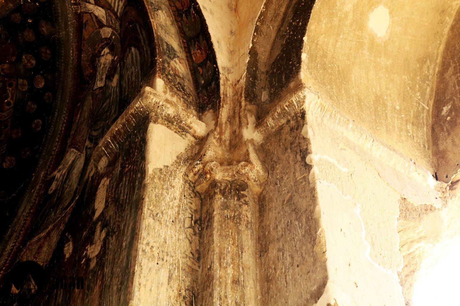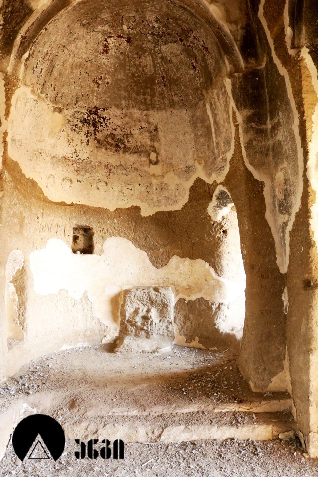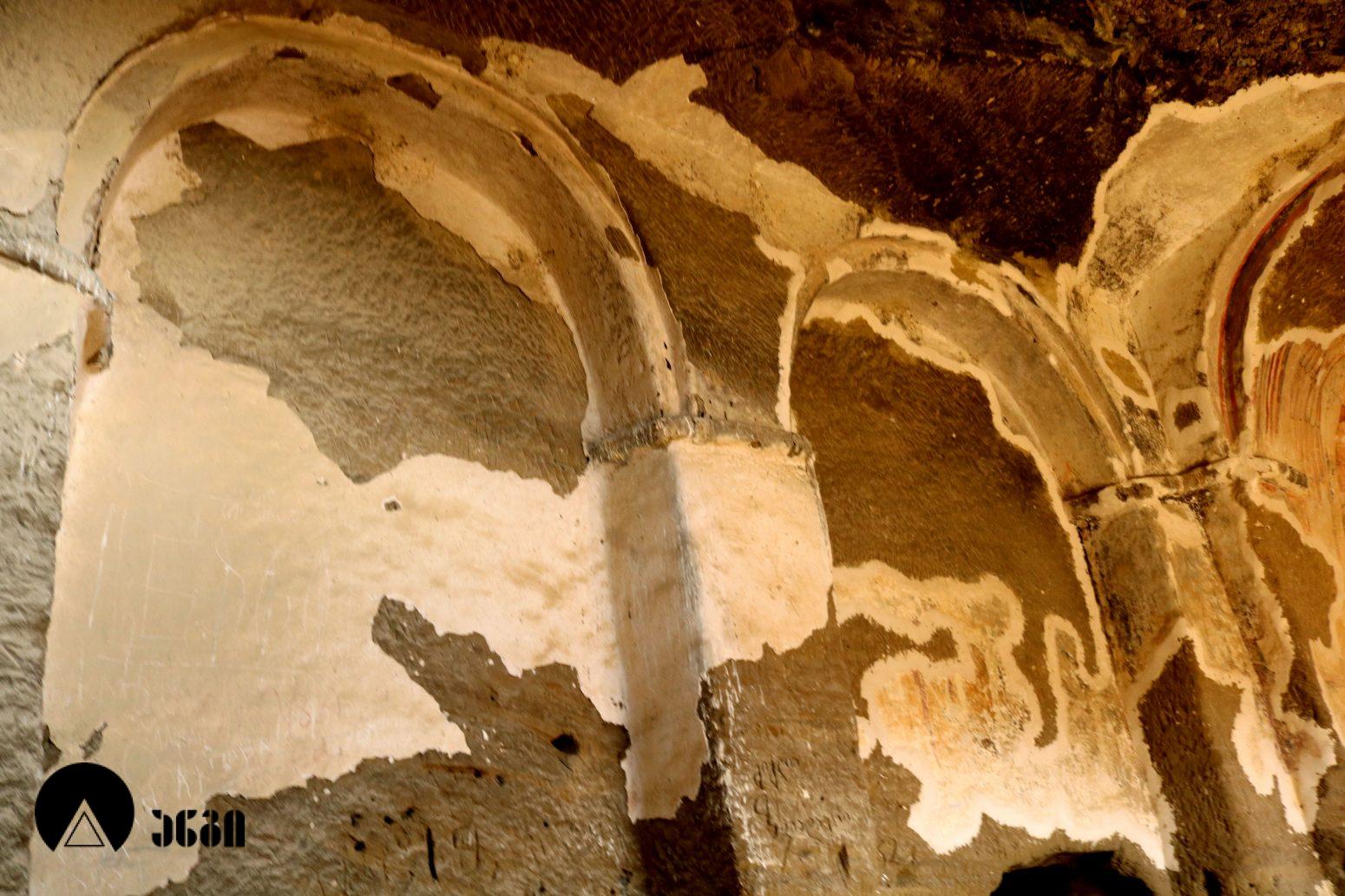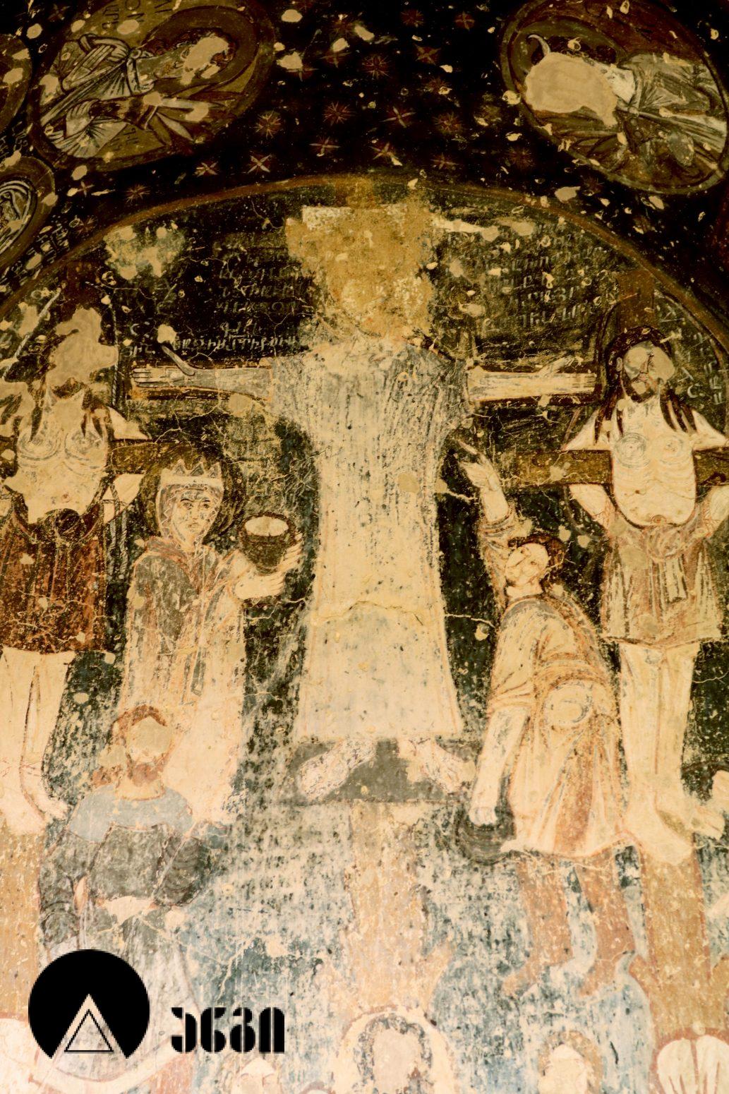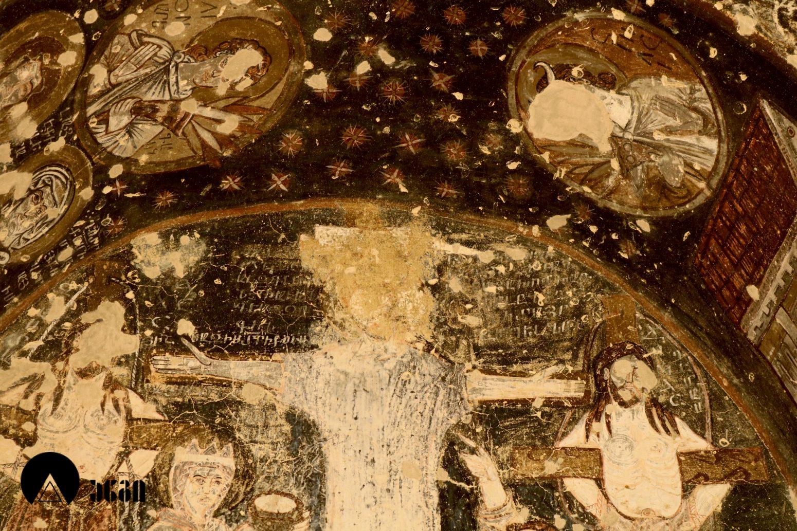მოხატულ ეკლესიათაგან ერთი დარბაზულია, სამი კი გუმბათოვანი. დარბაზული ეკლესიის მხატვრობა IX საუკუნით თარიღდება და თბილი კოლორიტით ხასიათდება. აქ საკურთხეველში ვარსკვლავიანი ცის ფონზე გამოსახულია ტახტზე მჯდომი ქრისტე მთავარანგელოზებთან ერთად. საკურთხევლის ქვედა ნაწილში გამოსახულნი ყოფილან მოციქულები და დიაკვნები. ეკლესია სამხრეთით სამლოცველოს უკავშირდებოდა, რომლისგანაც ძალიან მცირე ნაწილია დარჩენილი. განსაკუთრებულად საყურედღებოა სამლოცველოს ნიშის კომპოზიცია, აქ გამოსახულია ჯვარცმის სცენა. ქრისტე გამოსახულია გრძელი პერანგით, რაც ადრეული შუა საუკუნეებისთვისაა დამახასიათებელი. ეს ფრესკა უნიკალურია, აქ გვხვდება ავაზაკთა წარწერები ავაზაკთა სახელებით – დოვიმაქსი და გესტოსი (დღემდე ცნობილ წყაროებში გვხვდება სახელები დისმასი და გესტასი). როგორც ცნობილია, ქრისტესთან ერთად ჯვარცმული ავაზაკების სახელები მხოლოდ ნიკოდიმოსის სახარებაშია დაცული (აპოკრიფული სახარება, რომლის უძველესი ხელნაწერი IV საუკუნით თარიღდება). მომდევნო (VI) ეკლესიის მოხატულობისგან უმცირესი ფრაგმენტებია დარჩენილი, გაირჩევა, რომ საკურთხეველში აქაც ტახტზე მჯდომი ქრისტე ყოფილა გამოსახული ანგელოზებთან ერთად, მაცხოვრის ქვემოთ კი – ღვთისმშობელი მოციქულების თანხლებით. ჩრდილოეთ კედელზე ჯვარცმის სცენა იყო, რომელიც თითქმის აღარ იკითხება. ეკლესიის სამხრეთით მდებარე სამლოცველოს აფსიდში გამოსახულია ღვთისმშობელი ყრმით მთავარანგელოზებთან ერთად. ეს ფრესკა დამოუკიდებელი სამლოცველოს საკურთხეველში ღვთისმშობლისა და მთავარანგელოზების გამოსახვის პირველ ნიმუშად ითვლება. საყურადღებოა ისიც, რომ აქ მთავარანანგელოზებად არიან არა მიქაელი და გაბრიელი, როგორც ტრადიციულად გვხვდება, არამედ სორიელი და ურიელი (შემორჩენილია წარწერები). ამ მთავარანგელოზთა სახელები მხოლოდ ძველი აღქმის არაკანონიკურ თხზულებებში ჩანს. კვეთის დახვეწილობითა და მოხატულობით ყურადღებას იქცევს VII ეკლესია (თარიღდება X საუკუნით). ძალიან შთამბეჭდავია ნატიფად გამოყვანილი მკვეთრი ფორმები. საკურთხეველში ტახტზე მჯდომი მაცხოვრის ფიგურაა, რომელსაც მიქაელ და გაბრიელ მთავარანგელოზები აღამაღლებენ. ჩრდილოეთ კედელზე ჯვარცმის მრავალფიგურიანი, უნიკალური კომპლოზიციაა, ქრისტე გრძელი პერანგით, ავაზაკები, რომლებსაც რომაელი ჯარისკაცები ფეხებს თოკებით უკრავენ. ქრისტეს მარცხნივ გვირგვინოსანი ქალია, რომელიც ეკლესიას განასახიერებს. აქვეა რომაელი ასისთავი ლონგინოზი შუბით ხელში. ნიშის კამარაზე მოცემ