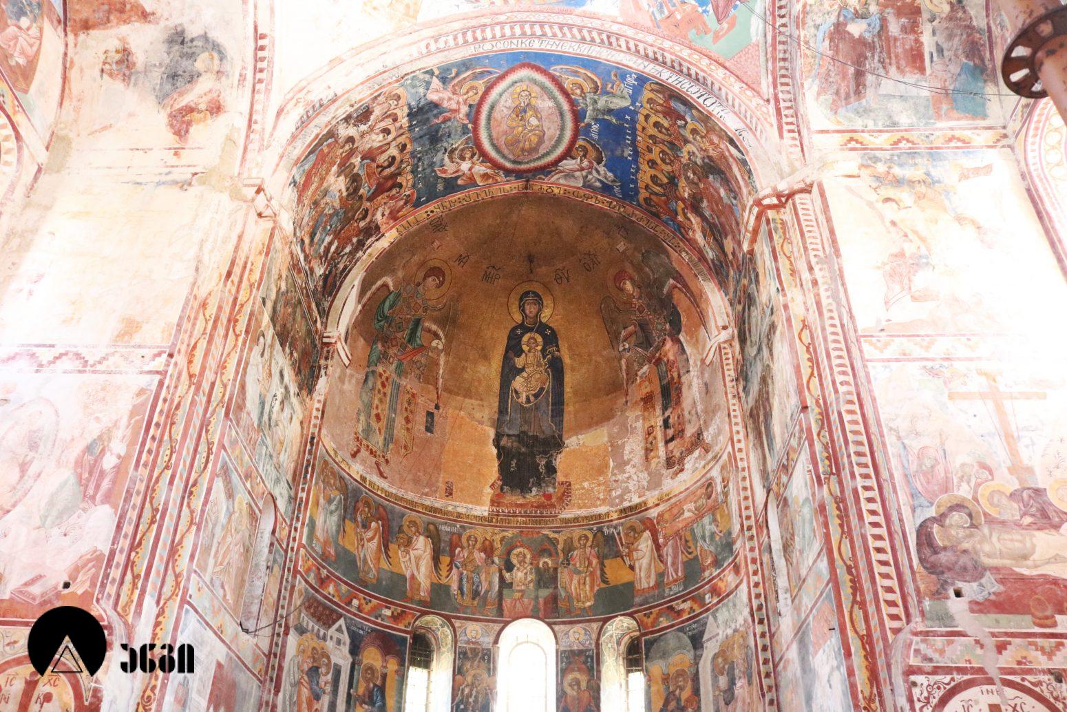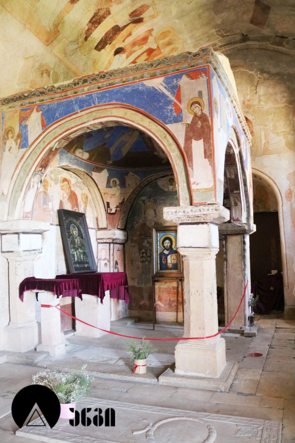 წმინდა გიორგის ეკლესია მთავარი ტაძრის აღმოსავლეთით დგას. იგი XIV საუკუნით თარიღდება. ყურადღებას იქცევს გუმბათქვეშა საყრდენების ორიგინალური გადაწყვეტა – მრგვალი სვეტები, რომელთა ბაზები შემკულია ფესტონების ორი რიგით. ტაძარში დაცულია ტაძრის თანადროული სამმალიანი, დაბალი ტიხარი, რომელიც დანარჩენი ნაწილისაგან ყოფს საკურთხეველს. დასავლეთის თაღის ქვეშ შესრულებული წარწერა გვამცნობს, რომ, წმინდა გიორგის ეკლესიის კედლები მოუხატვინებია დასავლეთ საქართველოს ეპისკოპოსს ევდემონ ჩხეტიძეს. ინტერიერის ძირითადი ნაწილი კი საეკლესიო შინაარსის ფრესკებს უჭირავს, თუმცა გვხვდება ისტორიულ პირთა გამოსახულებებიც, მათ შორის ევდემონ ჩხეტიძე და ბაგრატ III მეუღლითურთ. ეკლესიის ფასადები სადაა, მოურთველი, თუმცა შესასვლელი მოჩარჩოებულია ლამაზი რელიეფური ორნამენტით. დასავლეთის კარიბჭის სამხრეთ ნაწილში მაღალი ოსტატობით შესრულებული მხატვრობის ნაშთია შემორჩენილი.