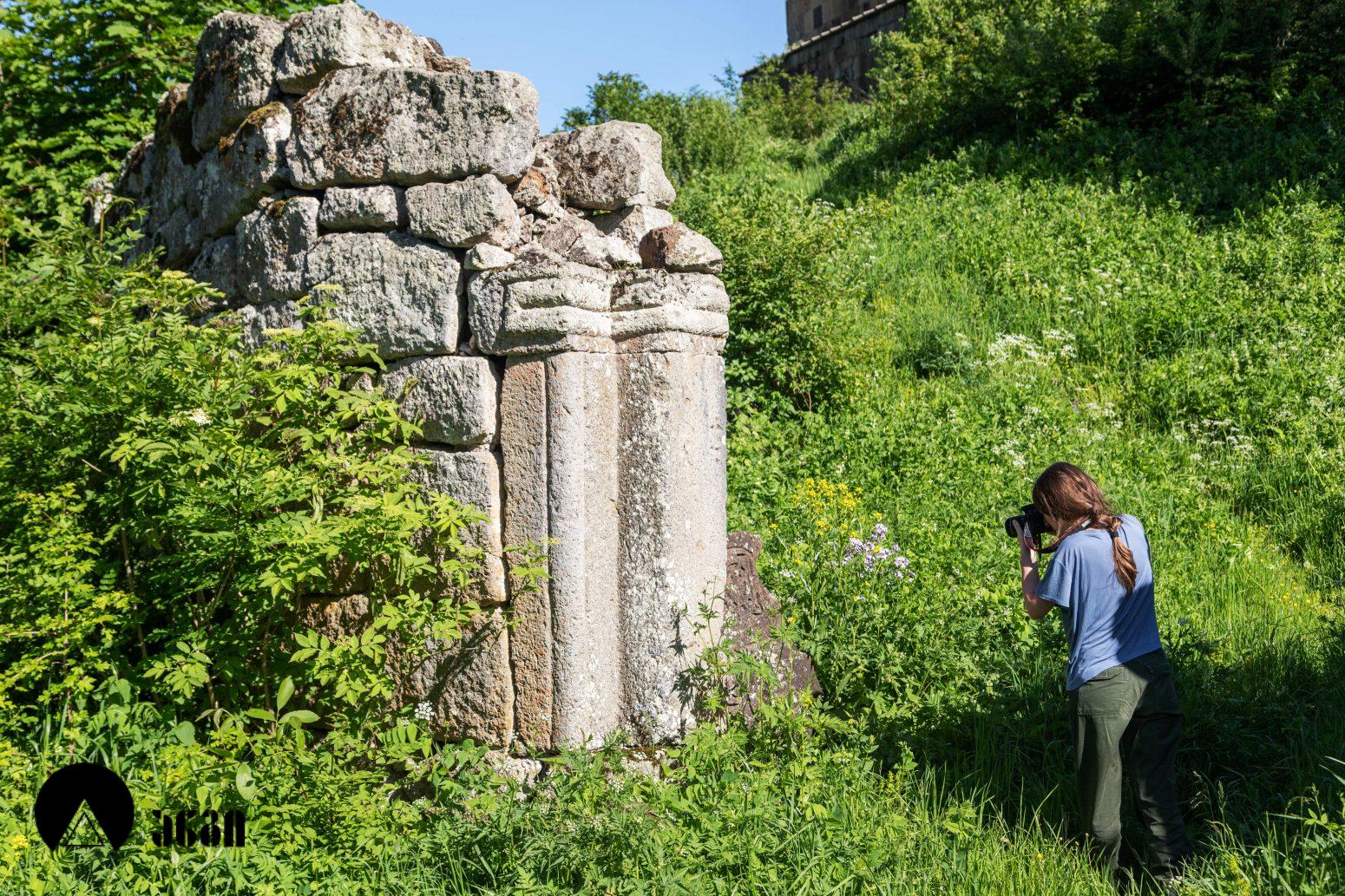 ზღუდის გარეთ პატარა ერთნავიანი ტაძარი – საჟამნო დგას. ნაგებობა დარბაზულია, აღმოსავლეთით ნახევარწრიული აფსიდით. კედლები მოპირკეთებულია ლეგა-მოყვითალო ქვიშაქვითა და მოყავისფრო-ღვინისფერი ფილებით. ფასადებს მოჩუქურთმებული ლავგარდანი ასრულებს. ტაძრის აღმოსავლეთ ფასადი განსაკუთრებით უხვადაა დეკორირებული. როგორც ჩანს, ეკლესიის ინტერიერი მოხატული ყოფილა.