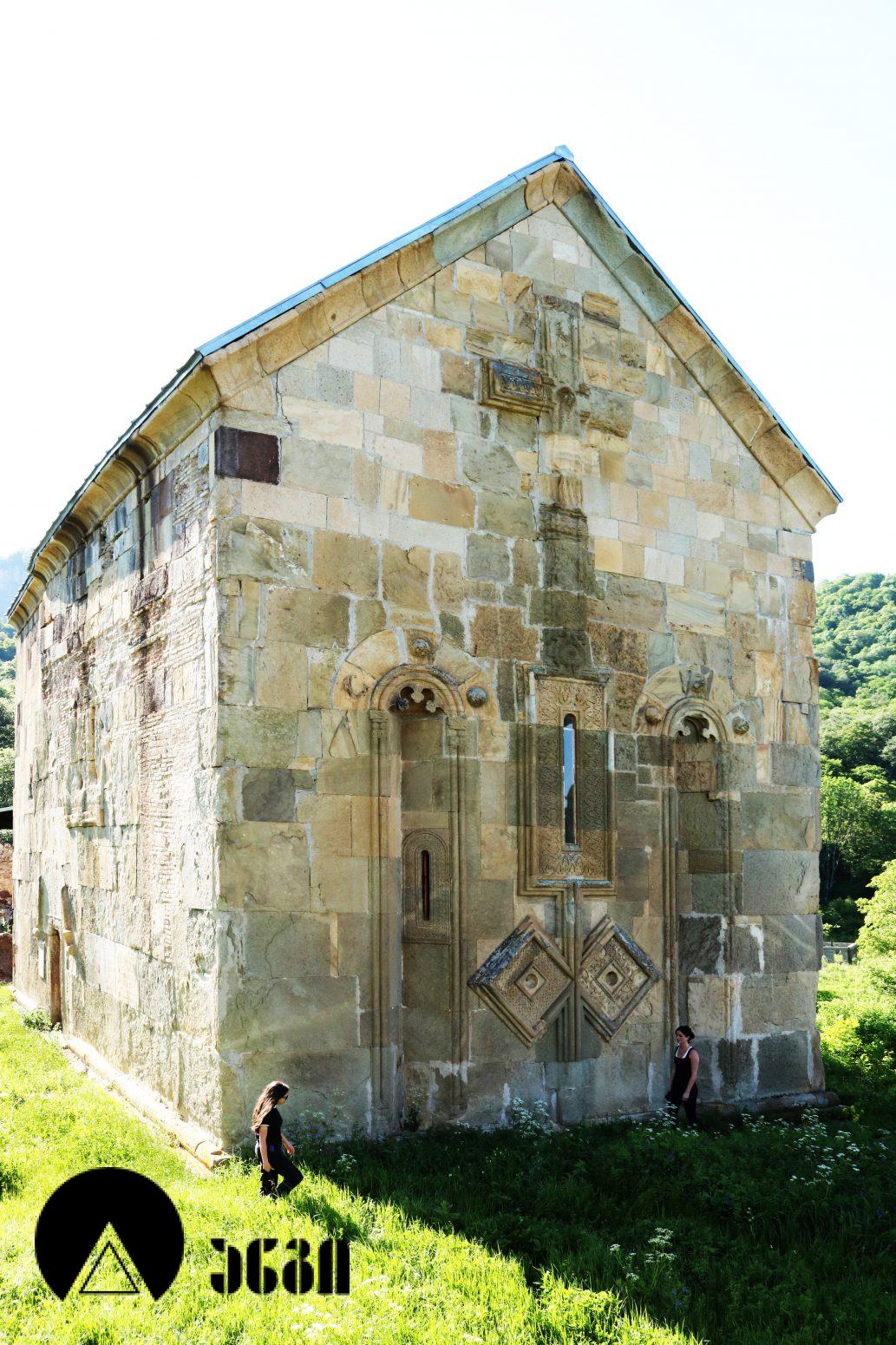 ჩუქურთმიანი შენობა პატარა, უსწორო, ოთხკუთხა სადგომს წარმოადგენს. მისი კედელი შემოსილია ლამაზი, კარგად გათლილი ღვინისფერი ფილებით. შენობის კარი გარედან მოჩუქურთმებული ჩარჩოთია შემკული. შესასვლელის სამხრეთით პატარა, ვიწრო მოჩუქურთმებული სარკმელია გამოჭრილი მთლიან ქვაში. შენობის სამხრეთ-აღმოსავლეთ კუთხეში, ნიადაგის ზედაპირის დონეზე, ნაცხვირიანი ქვაა ჩართული: შესაძლებელია, ეს ნაცხვირი ცხენის დასაბმელად ყოფილიყო განკუთვნილი.