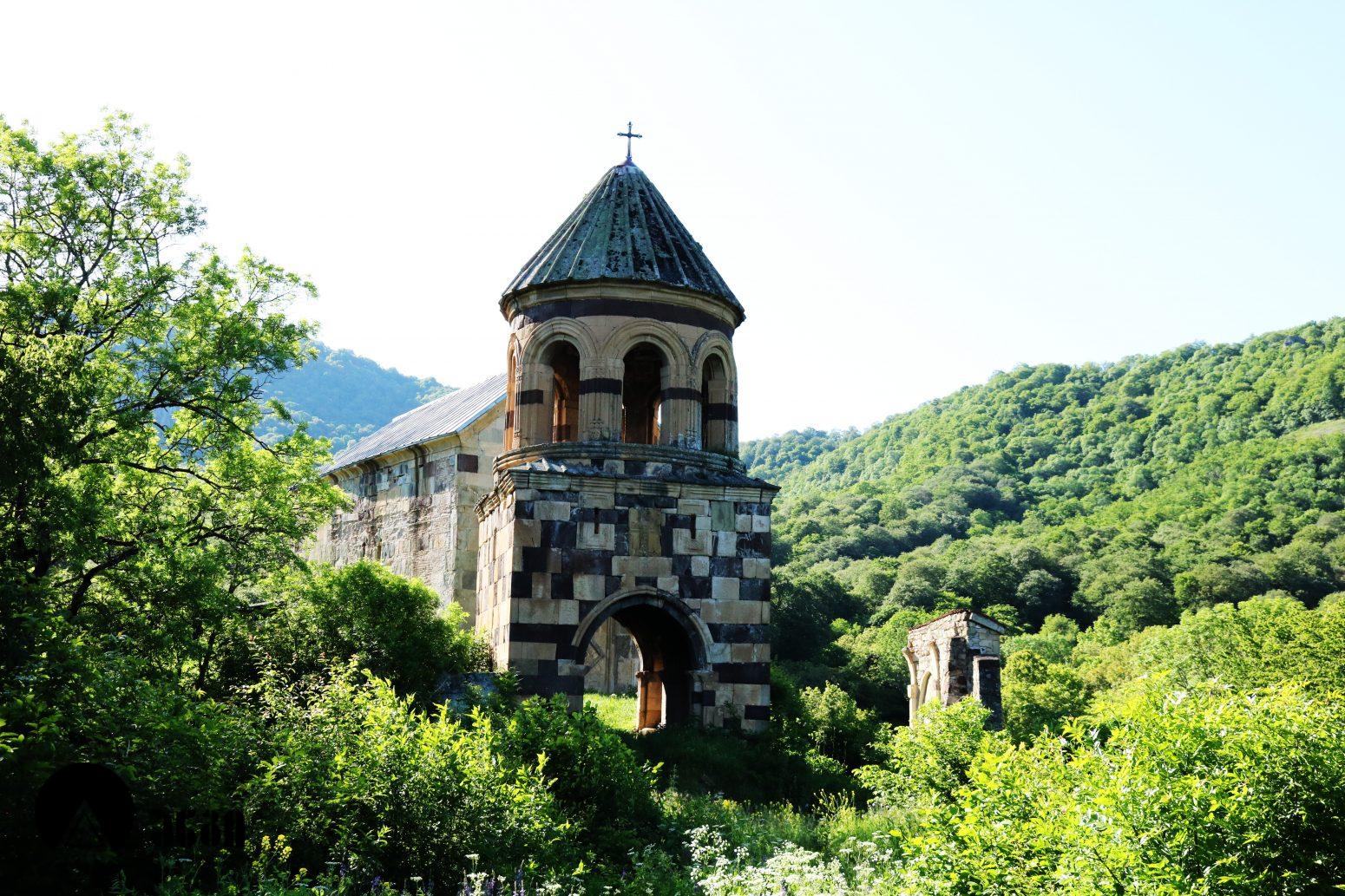 სენაკი I პატარა უსწორო ოთხკუთხედ ნაგებობას წარმოადგენს, რომელზეც ჯვრიანი და ჩუქურთმიანი შენობებია მიშენებული. მის ფასადებს წნული ჩუქურთმით შემკული ლავგარდანი ასრულებს. აღმოსავლეთის კედელში სარკმელია, რომლის ძირიც ორნამენტირებულია. სენაკიდან ჩუქურთმიან შენობაში პატარა, მრგვალი სარკმლისებრი ხვრელი გადის. იმავე კედელზე ზემოდან შენახულია მთლიანად ქვის საწვიმარი ღარი.