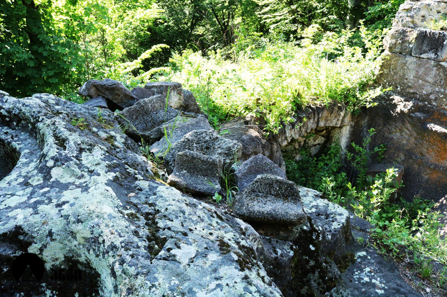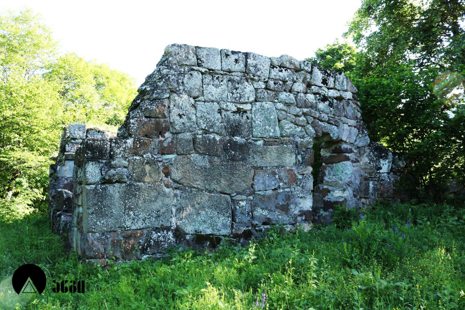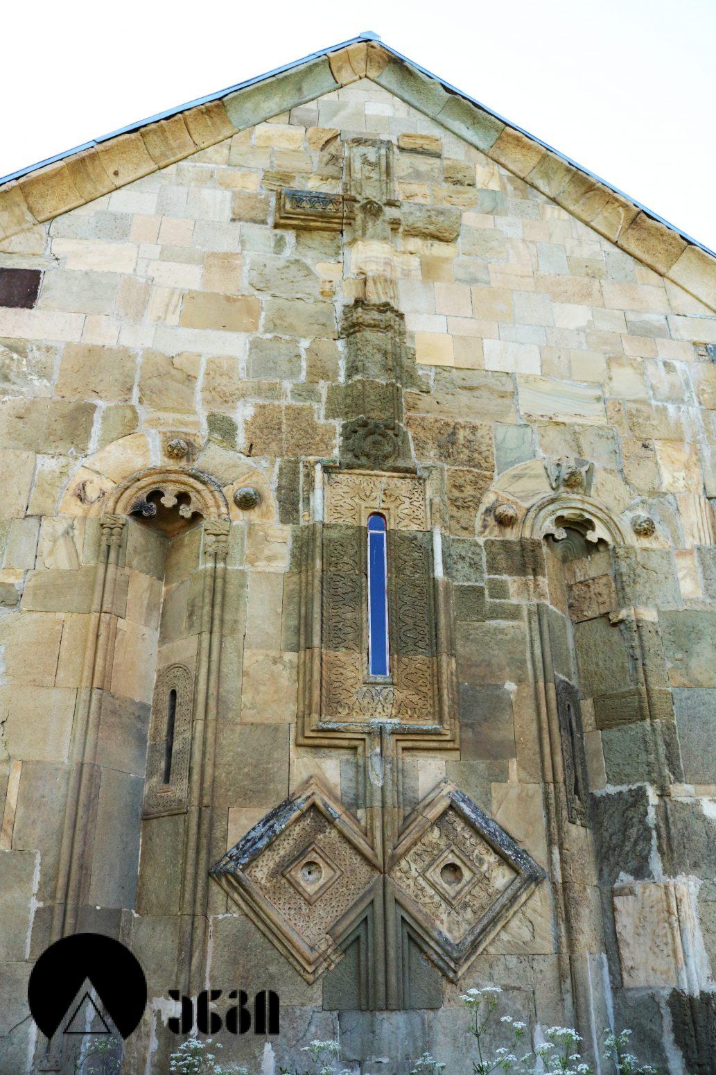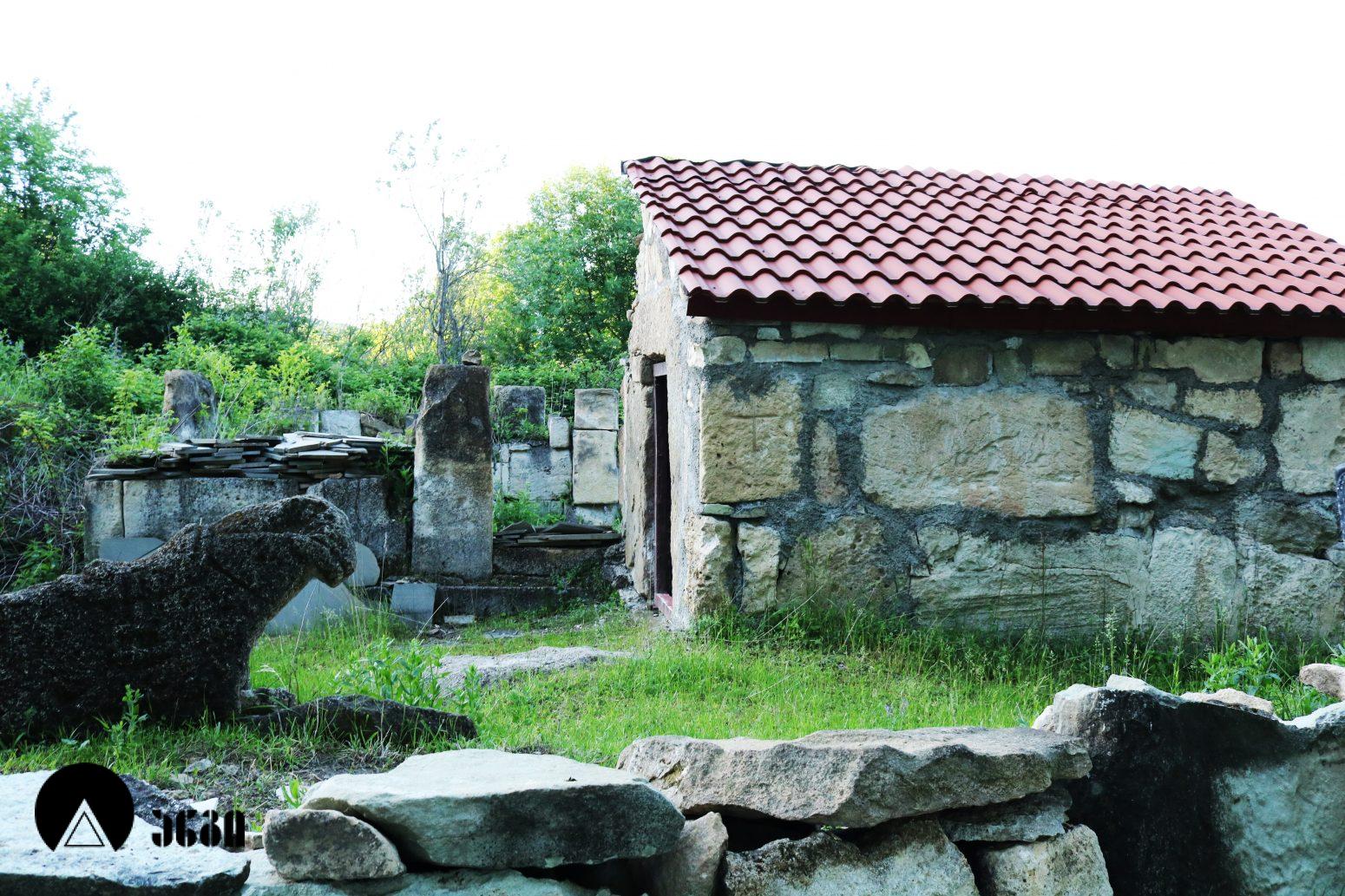 ჩუქურთმიანი შენობა პატარა, უსწორო, ოთხკუთხა სადგომს წარმოადგენს. მისი კედელი შემოსილია ლამაზი, კარგად გათლილი ღვინისფერი ფილებით. შენობის კარი გარედან მოჩუქურთმებული ჩარჩოთია შემკული. შესასვლელის სამხრეთით პატარა, ვიწრო მოჩუქურთმებული სარკმელია გამოჭრილი მთლიან ქვაში. შენობის სამხრეთ-აღმოსავლეთ კუთხეში, ნიადაგის ზედაპირის დონეზე, ნაცხვირიანი ქვაა ჩართული: შესაძლებელია, ეს ნაცხვირი ცხენის დასაბმელად ყოფილიყო განკუთვნილი.