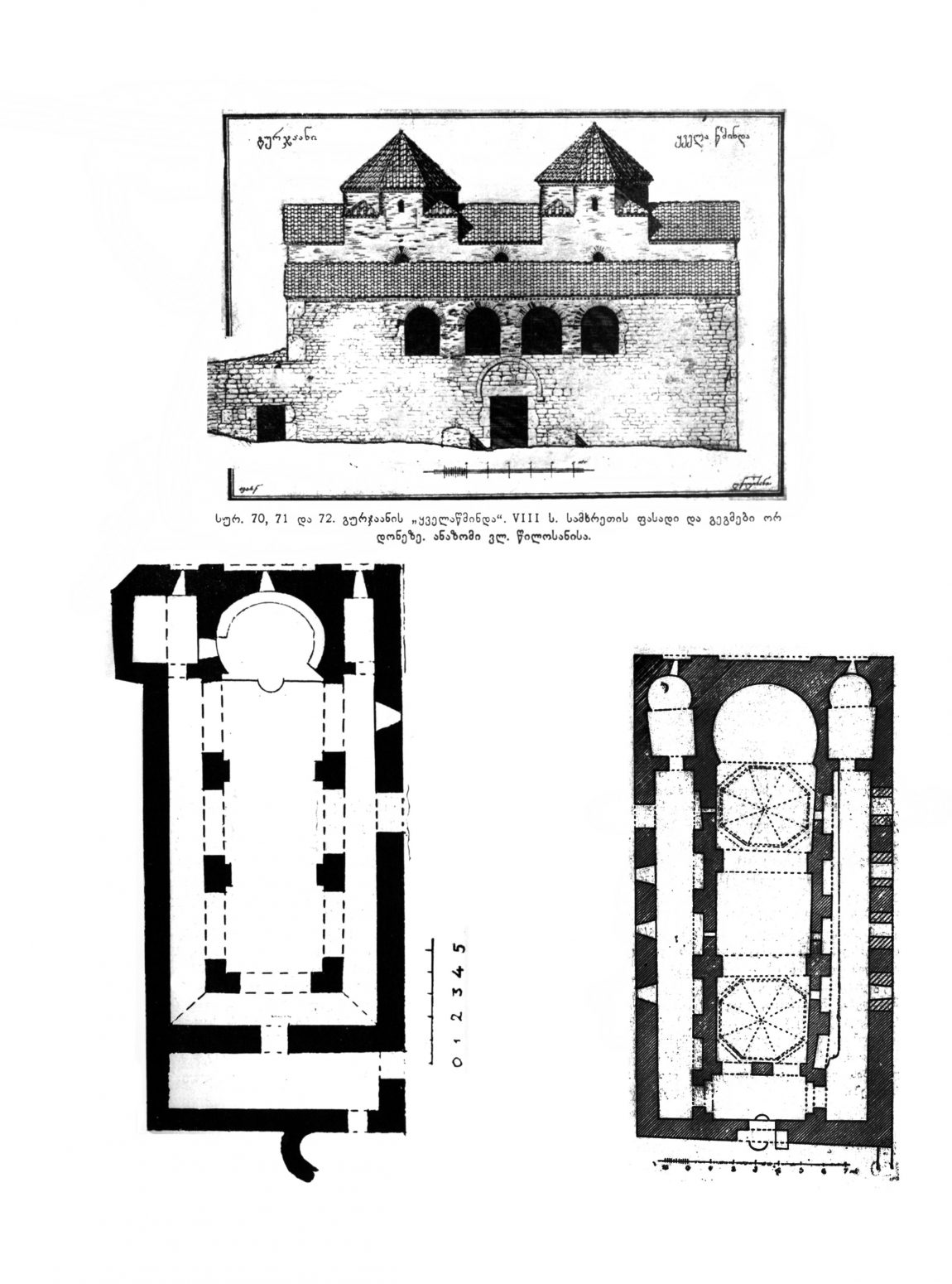 გურჯაანის ყველაწმინდა ორგუმბათიან ბაზილიკას წარმოადგენს, გამოყოფილი შუა ნავით, რომელიც ნალისებრი აფსიდით სრულდება. შიდა სივრცე სამ ნავად სწორკუთხა სვეტებითაა დაყოფილი. საკურთხეველი, იატაკის საერთო სიბრტყესთან შედარებით შემაღლებულია. გვერდითი ნავები სწორკუთხა, უაფსიდო სათავსებით სრულდება. შუა ნავის ორქანობა სახურავზე სიმეტრიულად არის განაწილებული ორი რვაწახნაგა გუმბათი. გუმბათები გადახურულია შეკრული კამარებით. გუმბათქვეშა კვადრატიდან გუმბათის ყელზე გადასვლა განხორციელებულია აგურის ჰორიზონტალური რიგებით ამოყვანილი კონქისებრი ტრომპებით. ნავები გადახურულია კოლოფა კამარებით და ცენტრალურ სივრცეს დაბალი თაღებით უკავშირდება, ერთმანეთს კი – დასავლეთის მხარეს მოქცეული განივი სივრცით. ნავების ზემოთ მეორე სართულია მოწყობილი. მეორე სართული კოლოფა კამარიტაა გადახურული. ეკლესიას, დასავლეთის მხრიდან ნართექსი ერთვის, რომელიც მთავარ სივრცეს სწორკუთხა კარით უკავშირდება, გარე სივრცეს კი – დასავლეთისა და სამხრეთის კედლებში გაჭრილი ღიობებით. ნართექსის თავზე ღია ტერასაა, რომელიც ეკლესიასთან წყობით დაკავშირებული მოაჯირით იყო შემოსაზღვრული. ინტერიერის აღქმისას დაბალყელიანი გუმბათები დიდ როლს არ თამაშობს, თუმცა საყურადღებო და განსაკუთრებულად მეტყველია დასავლეთის კედელი. ის თაღოვანი მალებით სამ იარუსად არის დაყოფილი. ქვემოთ ერთი, თითქმის ნავის სიგანე მაღალი თაღია, მის ზემოთ კი, ორ სართულად, წყვილი თაღებია განლაგებული. კომპოზიციას ცენტრალურ ღერძზე, მცირე ზომის თაღში ჩასმული სარკმელი ასრულებს. აღმოსავლეთის ფასადი ნალისებრი თაღებით არის გაფორმებული, რომლებიც ნაგებობის შიდა სივრცის დანაწევრებას ექსტერიერში გამოხატავს. შუა ნავის არეზე, ორმაგი თაღია, რომლის შუა ლილვი სარკმლის მართკუთხა თავსართს ეყრდნობა. ორმაგი თაღის შუა ღერძზე, ფრონტონში ჯვრის გამოსახულებაა ჩასმული. გვერდითი თაღები ორ სართულად არის განლაგებული და მათში სარკმლებია განაწილებული. ქვედა იარუსის სარკმლები ჰორიზონტალურგადანაკეცებიანი თავსართითა და მასზე დასმული ჯვრით არის დეკორირებული. სამხრეთის ფასადში შესასვლელისა და მის თავზე ერთ რიგან განლაგებული თაღოვანი სარკმლების ღიობებია. კარის ღიობს არქიტრავი და დიდი ტიმპანი ასრულებს. ტიმპანში ჯვრის გამოსახულებაა ჩასმული. ჩრდილოეთის ფასადი სამხრეთის ფასადის ანალოგიურია, მხოლოდ ამ მხარეს შესასვლელი არ არის. ფასადებს ჩვეულებრივი და კუთხით წინ წამოწეული წყობით გამოყვანილი ლავგარდანი ასრულებს. გურჯ