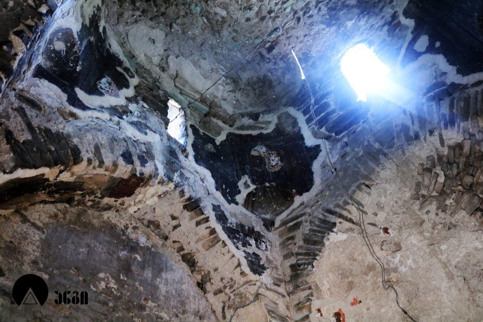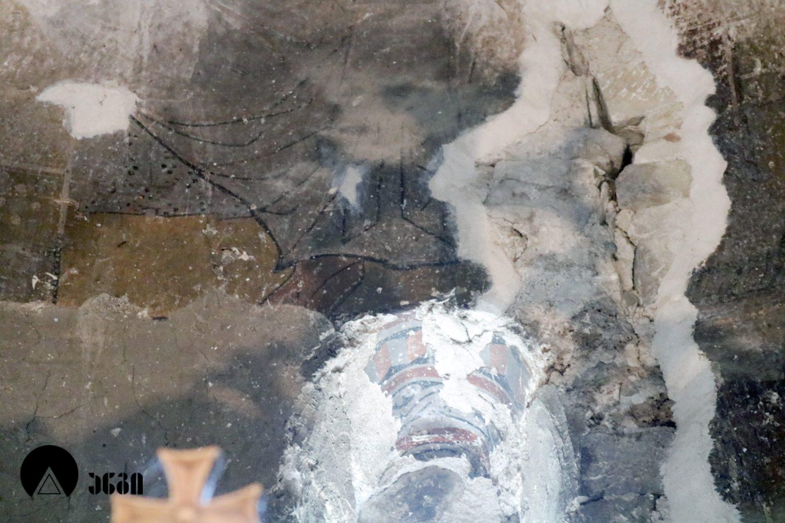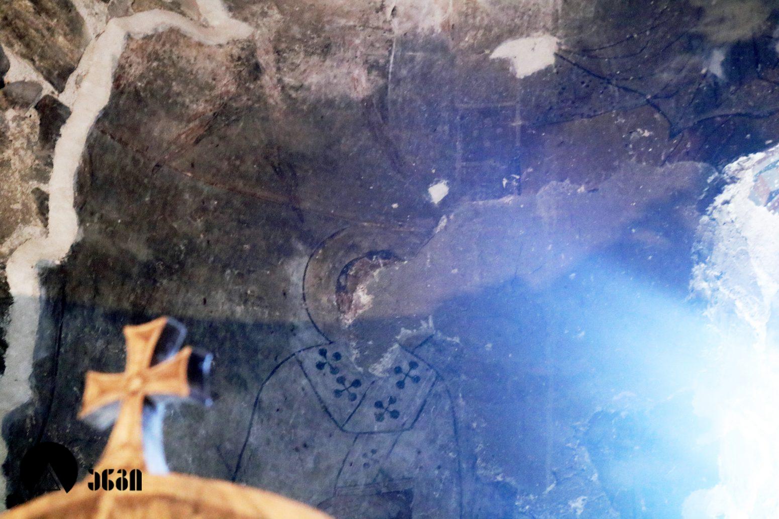 განვითარებულ შუა საუკუნეებში ეკლესიის ინტერიერი მთლიანად მოუხატავთ, თუმცა დღესდღეობით მოხატულობის მცირე ფრაგმენტებია შემორჩენილი. ფრესკები XII საუკუნით თარიღდება. ნახატი მკვეთრი და მკაცრი, ტუმცა მოქნილია, ახასიათებს სიბრტყობრივი დამუშავება და წერის გრაფიკულობა. მხატვრობის კოლორიტი ნაცრისფერისა და მიხაკისფერის რბილ შეხამებაზეა აგებული. გუმბათში გამოსახული ყოფილა “ამაღლების” კომპოზიცია, რომლისგანაც შემორჩენილია მოციქულთა ფიგურების ფრაგმენტები გუმბათის ყელში. საკურთხევლის კონქში ვედრების კომპოზიცია იყო განთავსებული, შემორჩენილია ქრისტესა და ღვთისმშობლის ფიგურების ქვედა ნაწილები და ქერუბიმი. საკურთხევლის კედლებზე ეკლესიის მამათა ექვსი ფიგურაა. სამხრეთ მკლავში შემორჩენილია ფრაგმენტი, რომელიც, სავარაუდოდ, იოანე ნათლისმცემლის ცხოვრების ნაწილი უნდა ყოფილიყო. იმავე მკლავში შემორჩენილია კიდევ ორი ფრაგმენტი, რომლებიც, როგორც ჩანს, “ჰეროდეს ნადიმისა” და ნათლისღების კომპოზიციების ნაწილები იყო. ჩრდილოეთ მკლავის კამარაში წმინდანის ფიგურაა, ძალიან ჩამორეცხილი. საკურთხევლის სარკმელი ორი ორნამენტული ზოლითაა შემკული.