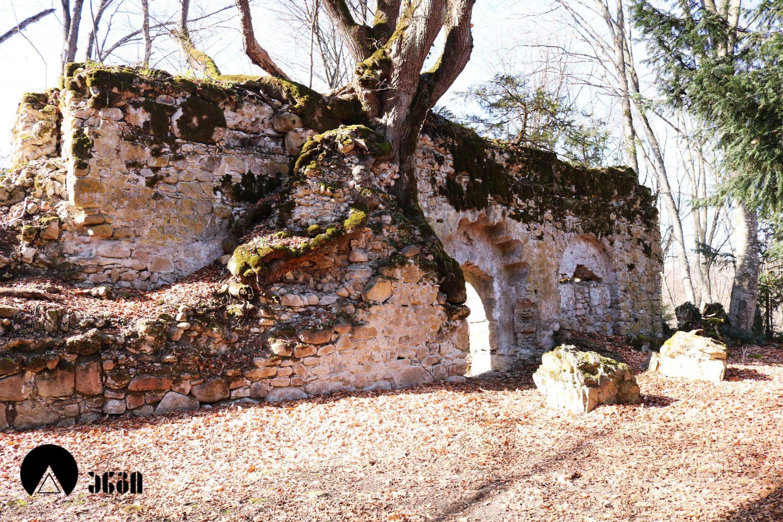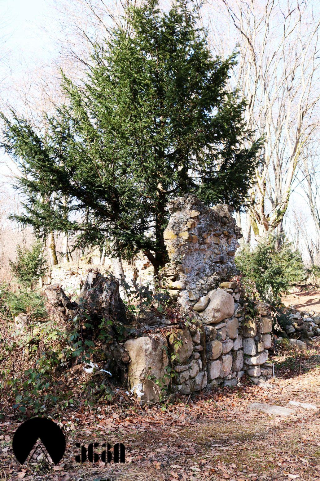 ეკლესიის აღმოსავლეთით სანახევროდ მიწაში ჩაფლული კამაროვანი საძვალეა. იგი მთლიანად რიყის ქვითაა ნაგები და კრამიტის ორფერდა გადახურვა ჰქონდა. ნაგებობის დასავლეთ კვადრატული ხვრელობია მოწყობილი, რომელიც მიცვალებულის შესასვენებლად იყო განკუთვნილი. ხვრელობის ქვემოთ მიცვალებულის დასასვენებელი ტახტია.