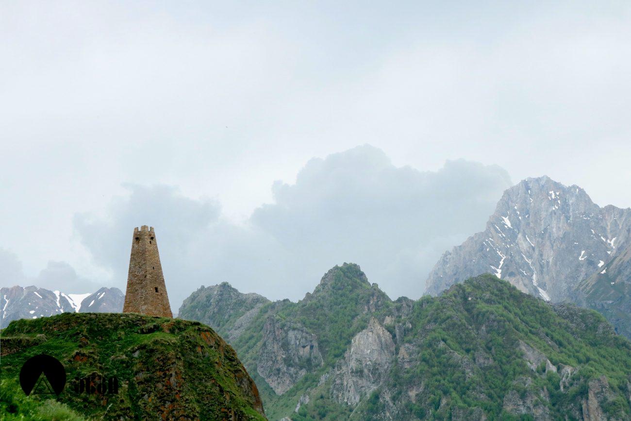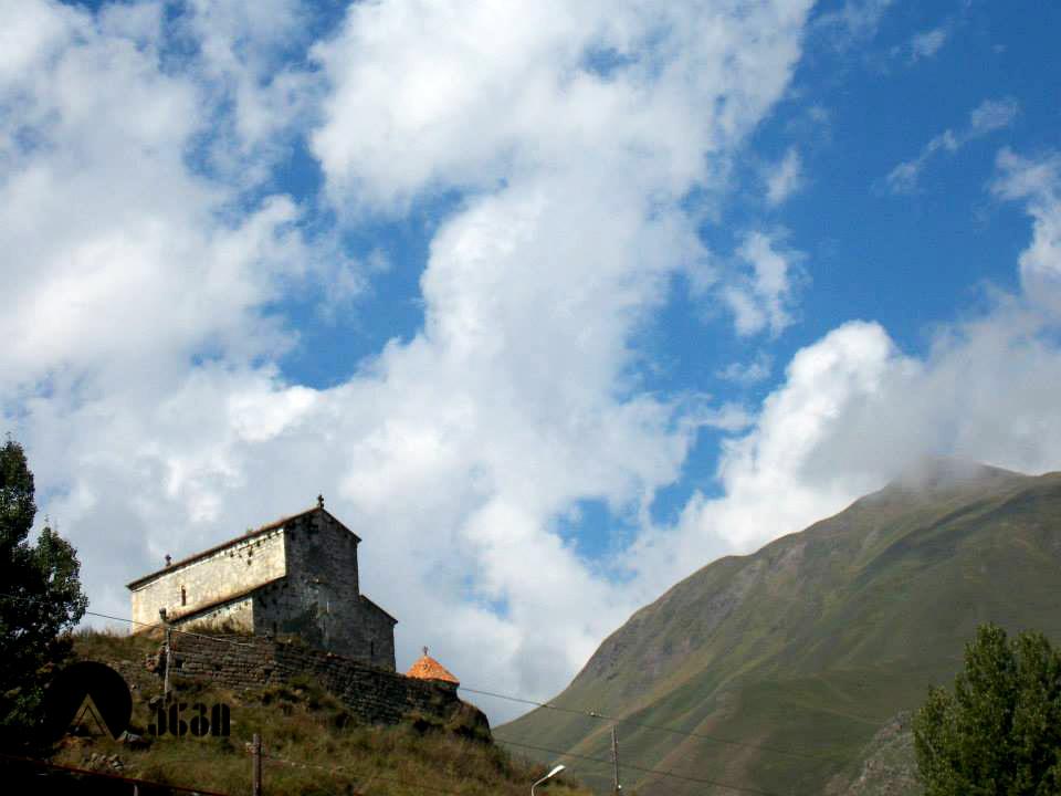 კოშკი ეკლესიის მახლობლად ციცაბო კლდის პირას დგას. იქვე, კვარცხლბეკზე აღმართულია მემორიალური ქვა-სტელა, რომელსაც თავდაპირველად ჯვარი აგვირგვინებდა. ერთ ქვაზე შემორჩენილია ღვთისმშობლისა და ჩვილის გამოსახულების ნაშთი. ფუძის რვაკუთხა ქვაზე კი ასომთავრული წარწერაა ამოკვეთილი. ეკლესიის შესასვლელთან ხევის უხუცესთათვის განკუთვნილი ქვის სავარძლები და სკამებია. ტაძრის დასავლეთ ფასადების მორთულობა ღარიბულია. კედელზე შემორჩენილია მოხატულობის კვალი. სიონის ეკლესიიდან ულამაზესი ხედები იშლება ყაზბეგის მთებზე.