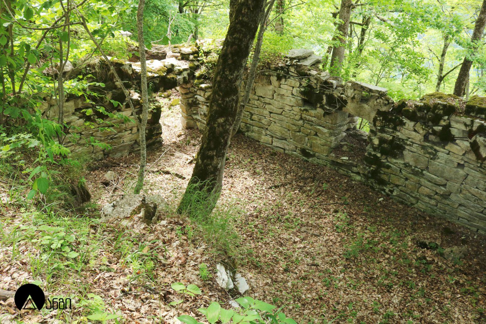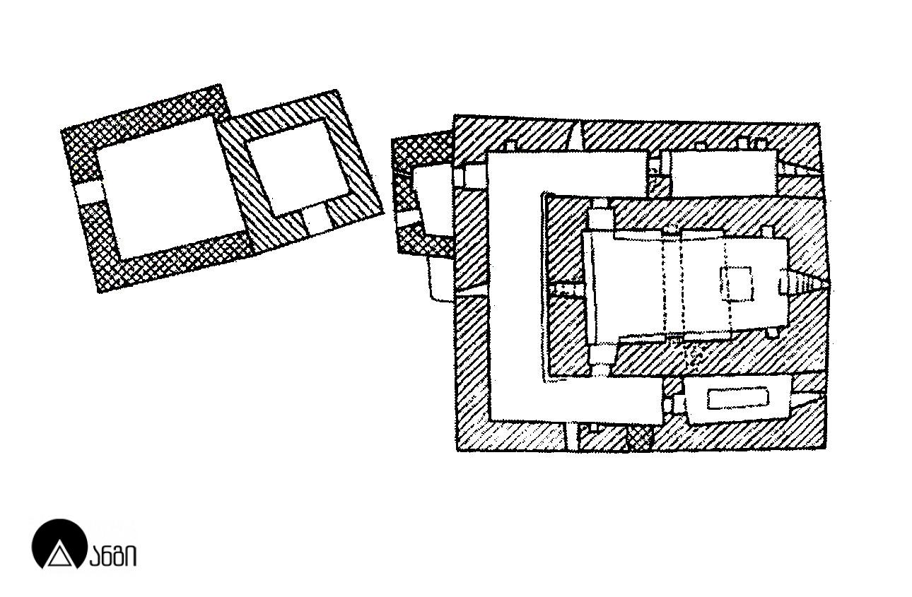 ეკლესიის დასავლეთით, 2.5 მეტრზე, მოგვიანებით კვადრატული გეგმის ნაგებობა აუგიათ. შესასვლელი სამხრეთიდანაა მოწყობილი. ამ შენობას დასავლეთიდან ოდნავ მოზრდილი, თითქმის კვადრატული გეგმის, მეორე ნაგებობა ეკვრის. მეორე ნაგებობას შესასვლელი დასავლეთიდანა აქვს.