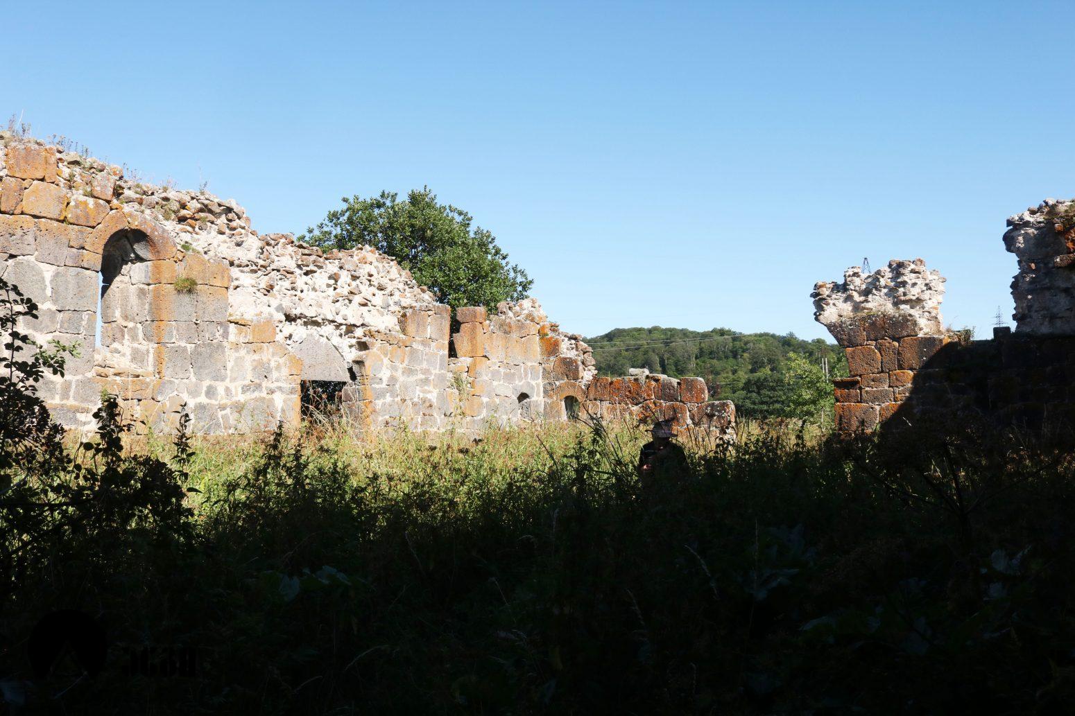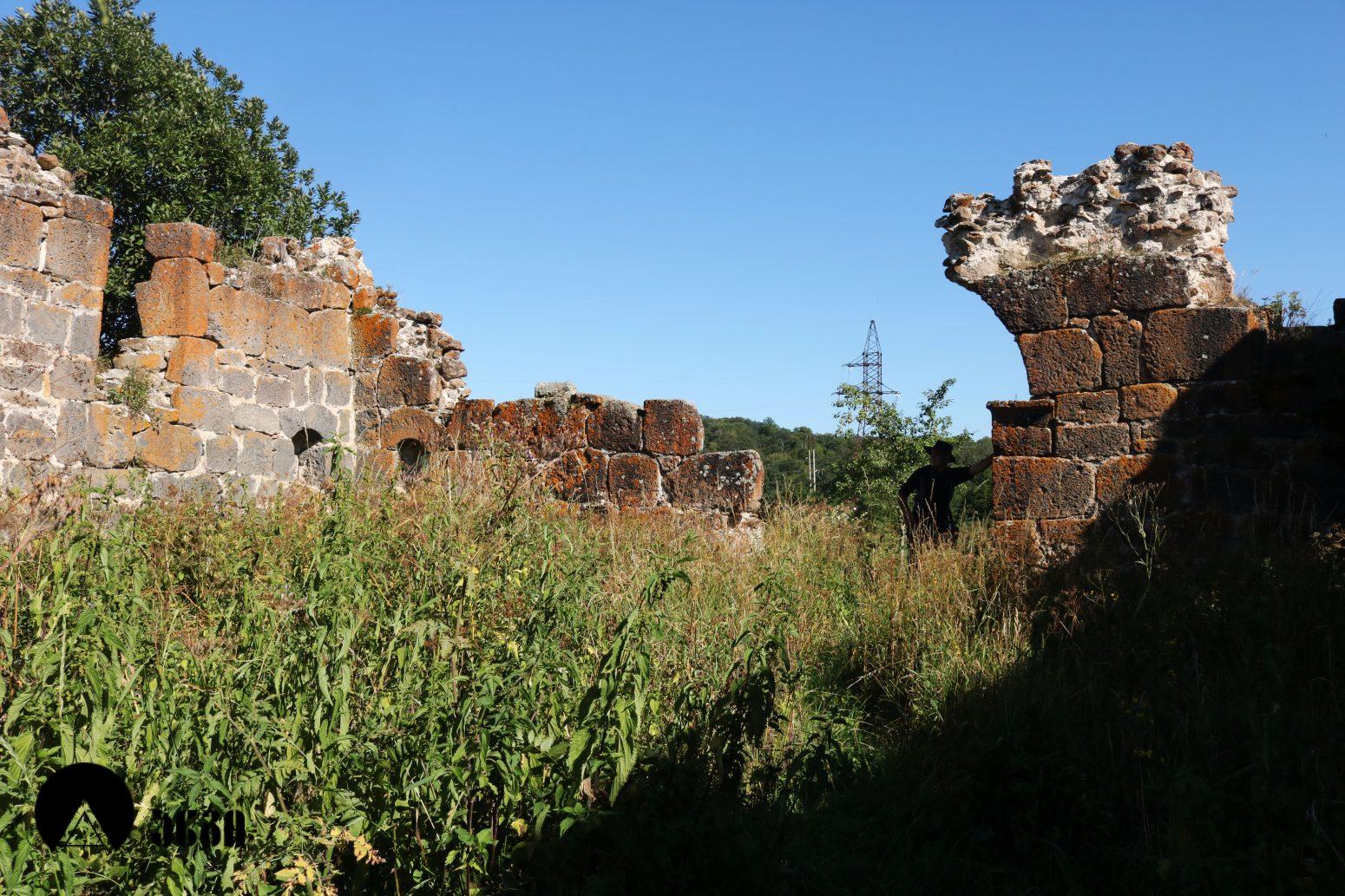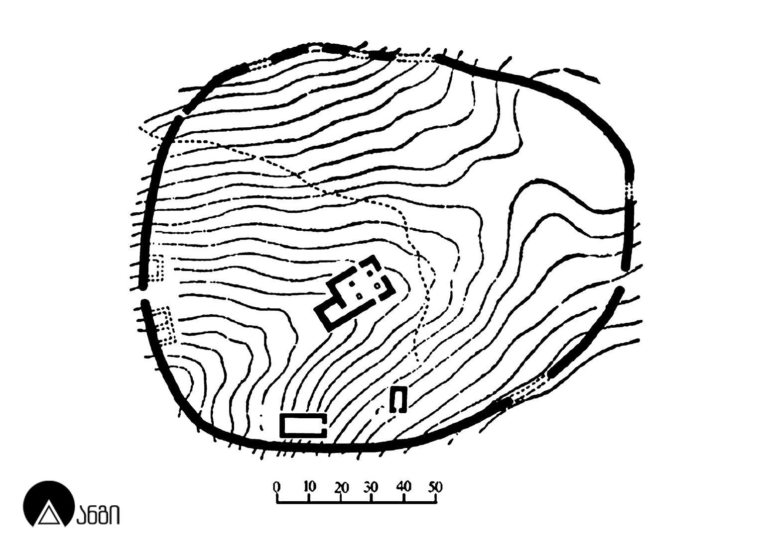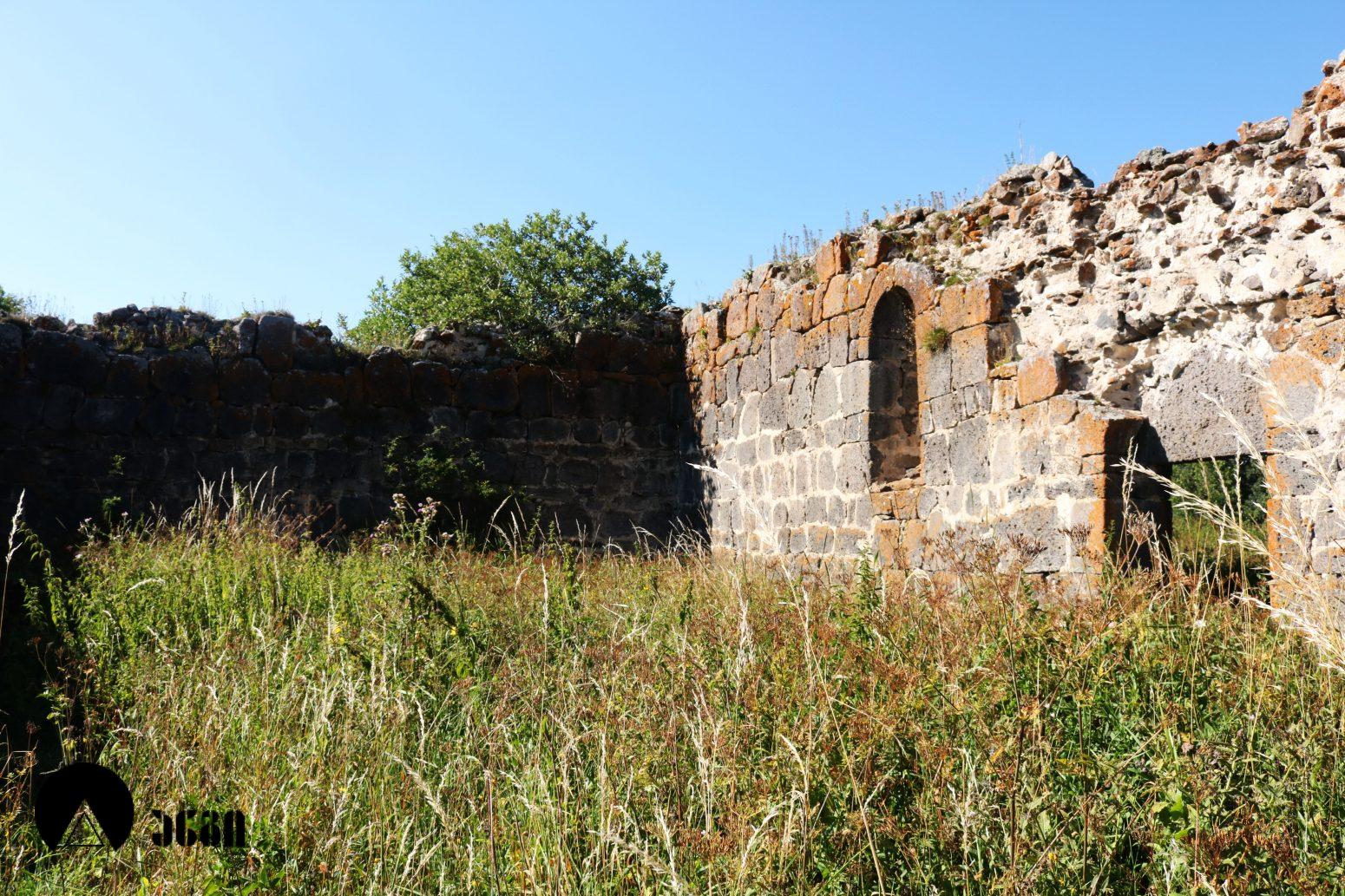 სასახლე IX-X საუკუნეებით თარიღდება და გეგმით სწორკუთხა ნაგებობას წარმოადგენს, რომელსაც ჩრდილოეთიდან დამხმარე სათავსი ერთვის. ნაგებობას ოთხი კარი აქვს, აქედან სამი გარე სივრცეში გადის, ერთი კი დამხმარე სადგომს უკავშირდება. ყველა შესასვლელს თაღოვანი ტიმპანი ჰქონია, ასევე თითოეული მათგანი ფლანკირებულია თაღოვანი სარკმლებით. სამხრეთისა და აღმოსავლეთის კედლების კუთხეებში წყვილ-წყვილად ოთხი სწორკუთხა ნიშია დატანებული. ინტერიერში გამოვლინდა სვეტის ოთხი ბალიში. სასახლის კედლები ამჟამად 5-6 მ სიმაღლისაა, თუმცა ის თავდაპირველად გაცილებით მაღალი ყოფილა. კედლების შიდაპირი ბაზალტის დიდი ქვებითაა ნაგები, რომელთა ზედაპირი კარგადაა გათლილი, მაგრამ კიდეები უსწორმასწოროა და ერთმანეთთან მჭიდროდ არაა მორგებული. შესაძლოა სასახლის ინტერიერი შელესილი და მოხატულიც კი ყოფილიყო, თუმცა დაზუსტებით ამის თქმა შეუძლებელია. დარბაზი ხის კოჭებით იყო გადახურული. ფასადები შემოსილია დამუშავებული ბაზალტის ქვებით. გალავნის ტერიტორიაზე და ზოგიერთი გვიანდელი შენობის კედლებში ოთხი მოზრდილი ბაზისი გამოვლინდა, რომლებიც თავიდან სავარაუდოდ სასახლეს ეკუთვნოდა. დამხმარე სადგომის კედლები დარბაზის კედლებთან კონსტრუქციულად არაა დაკავშირებული, მაგრამ ორივე ერთდროულადაა აგებული. სასახლე გადახურული ყოფილა ბრტყელი კრამიტით, რომელთაგან ზოგიერთზე რელიეფური სტილიზებული ყვავილია გამოსახული.