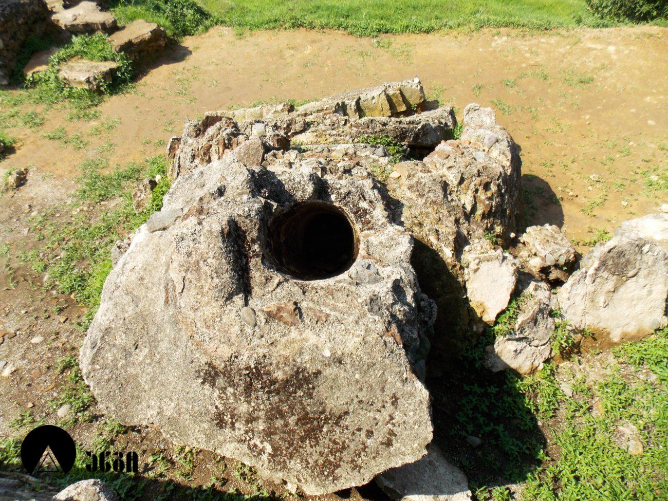 ცისტერნა ვიწრო და წაგრძელებულ ნაგებობას წარმოადგენს, რომელიც ორი განივი ტიხრით სამ ნაწილად იყოფა. კედლები 1 მეტრის სისქისაა. ნაგებობა შიგნიდან შელესილია კრხსნარით. მკვლევართა მოსაზრებით, შენობა პროდუქტების შესნახი ხარო ან ხორცის დასამარილებელი ცისტერნა უნდა ყოფილიყო.