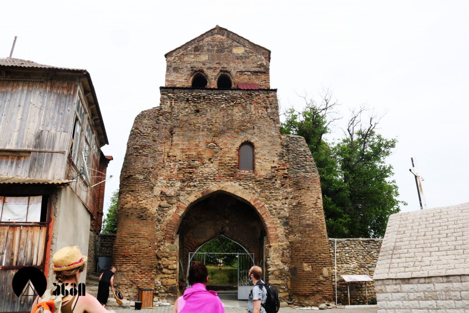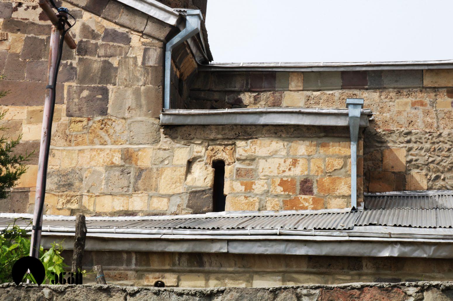 კომპლექსს რიყის ქვით ნაგები გალავანი აქვს შემოვლებული. იგი გვიანდელი ფეოდალური ხანით თარიღდება. კედლის მაქსიმალური სიმაღლე 1,5 მეტრს არ აღემატება. რელიეფის შესაბამისად გალავანი ბევრგან საფეხურებადაა დანაწევრებული და ზოგან შეტეხილია. კომპლექსში შემორჩენილია გალავანზე მიშენებულ ნაგებობათა ნაშთები. ტაძრის დასავლეთით გვიანი შუასაუკუნეების კოშკი-სამრეკლო მდებარეობს, რომელიც გალავანშია ჩაშენებული. ნაგებობა სამსართულიანია. პირველი სართული კომპლექსის კარიბჭის ფუნქციას ითავსებს და მთელ სიგანეზეა გახსნილი. იგი გადახურულია ნახევარწრიულიკამარით. სამხრეთისა და ჩრდილოეთის კედლებზე მიშენებულია მასიური კონტრფორსები. მეორე სართული საცხოვრებელია, მის კედელში ბუხარი და თახჩა ნიშებია. დასავლეთით და ჩრდილოეთით თითო კარია. მესამე სართული თაღებით გახსნილ სამრეკლოს წარმოადგენს. დასავლეთითა და აღმოსავლეთით იგი წყვილ-წყვილი თაღით იხსნება, სამხრეთითა და ჩრდილოეთით კი თითო თაღი აქვს. მისი გადახურვა დეფორმირებული ნახევარსფეროსებრია. კოშკი -სამრეკლო ნაგებია ქვიშაქვისა და შირიმის კვადრებითა და აგურით.