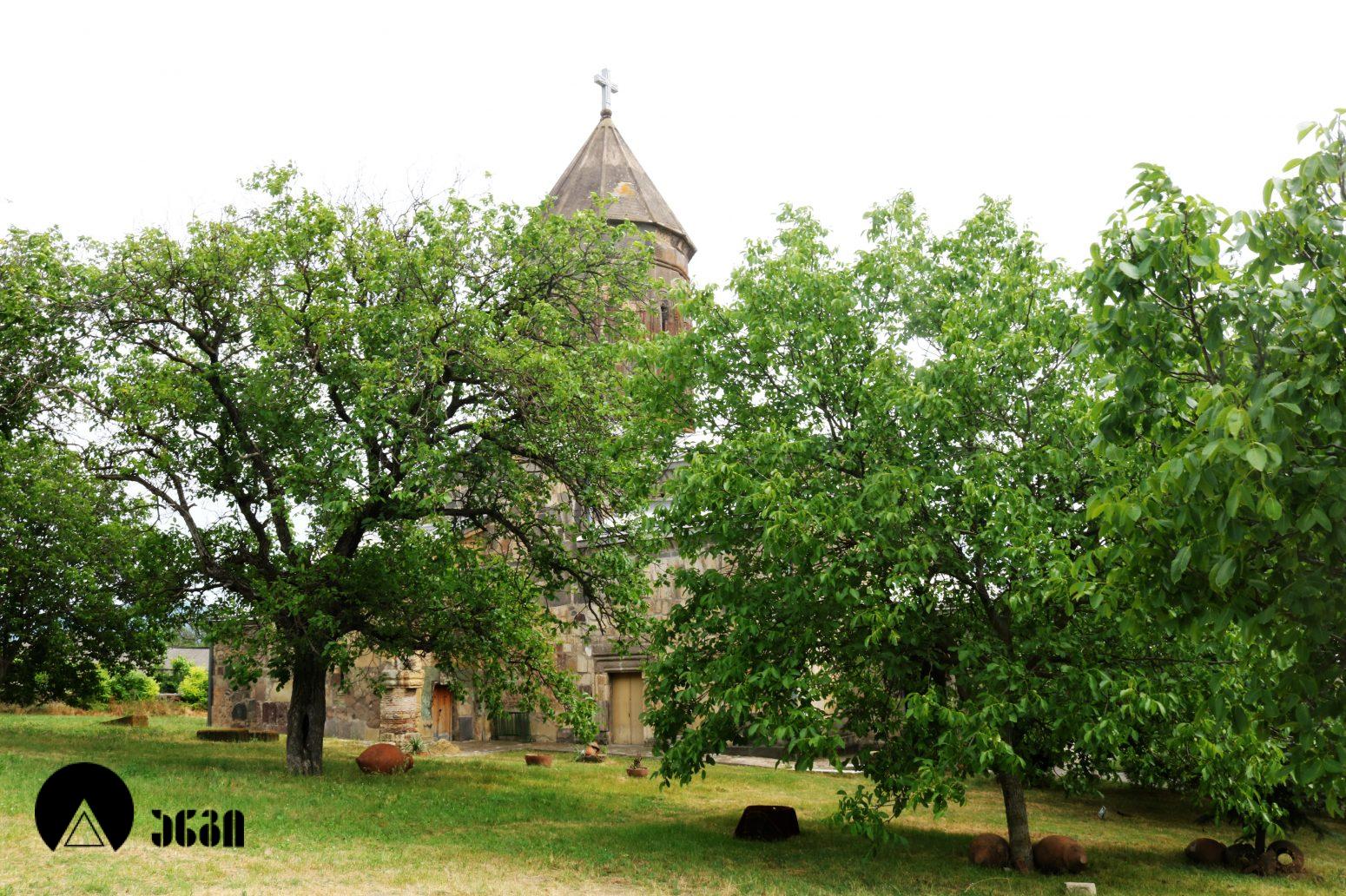 კომპლექსს რიყის ქვით ნაგები გალავანი აქვს შემოვლებული. იგი გვიანდელი ფეოდალური ხანით თარიღდება. კედლის მაქსიმალური სიმაღლე 1,5 მეტრს არ აღემატება. რელიეფის შესაბამისად გალავანი ბევრგან საფეხურებადაა დანაწევრებული და ზოგან შეტეხილია. კომპლექსში შემორჩენილია გალავანზე მიშენებულ ნაგებობათა ნაშთები. ტაძრის დასავლეთით გვიანი შუასაუკუნეების კოშკი-სამრეკლო მდებარეობს, რომელიც გალავანშია ჩაშენებული. ნაგებობა სამსართულიანია. პირველი სართული კომპლექსის კარიბჭის ფუნქციას ითავსებს და მთელ სიგანეზეა გახსნილი. იგი გადახურულია ნახევარწრიულიკამარით. სამხრეთისა და ჩრდილოეთის კედლებზე მიშენებულია მასიური კონტრფორსები. მეორე სართული საცხოვრებელია, მის კედელში ბუხარი და თახჩა ნიშებია. დასავლეთით და ჩრდილოეთით თითო კარია. მესამე სართული თაღებით გახსნილ სამრეკლოს წარმოადგენს. დასავლეთითა და აღმოსავლეთით იგი წყვილ-წყვილი თაღით იხსნება, სამხრეთითა და ჩრდილოეთით კი თითო თაღი აქვს. მისი გადახურვა დეფორმირებული ნახევარსფეროსებრია. კოშკი -სამრეკლო ნაგებია ქვიშაქვისა და შირიმის კვადრებითა და აგურით.