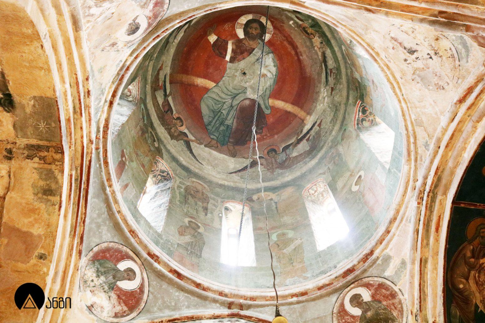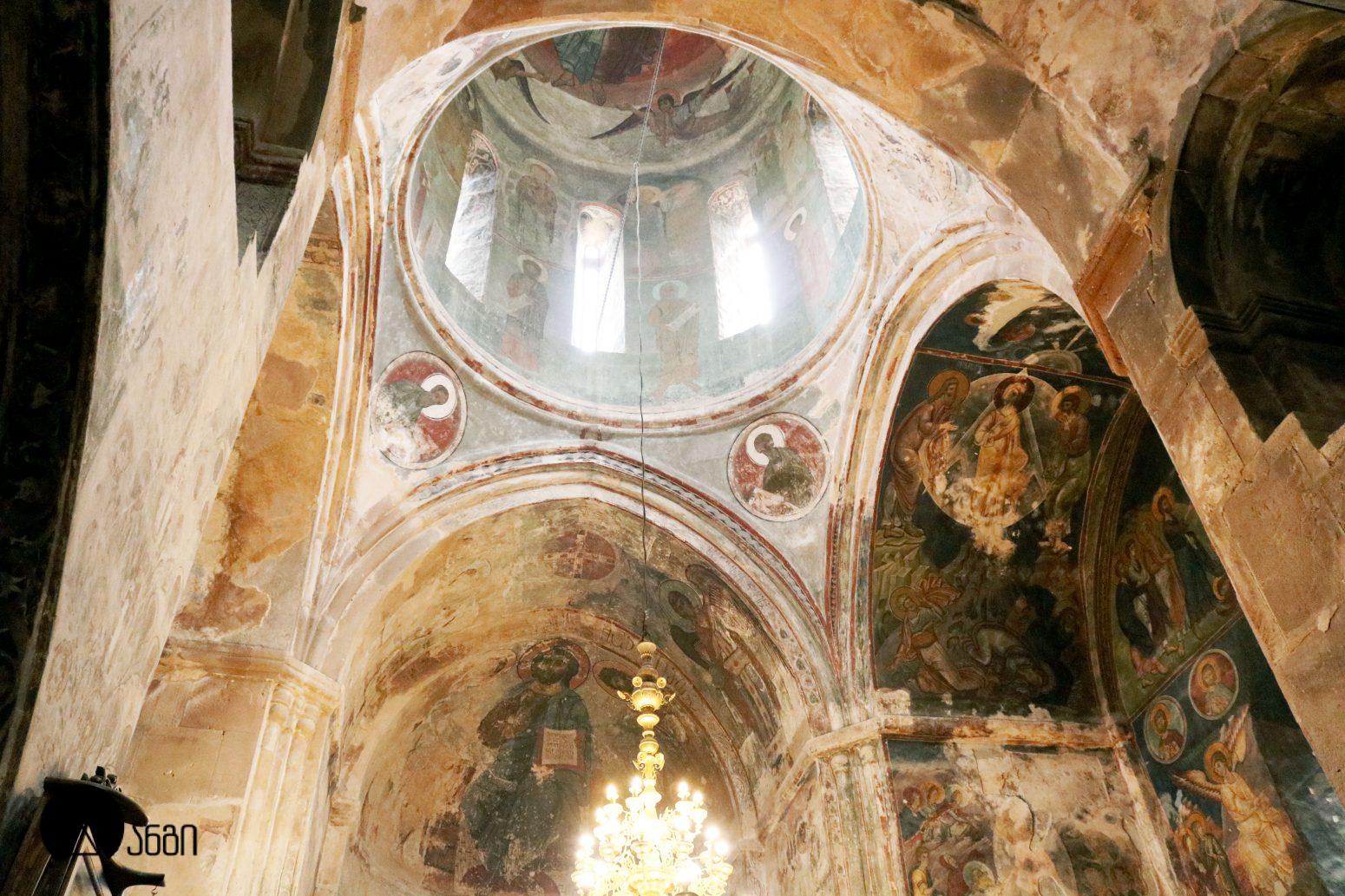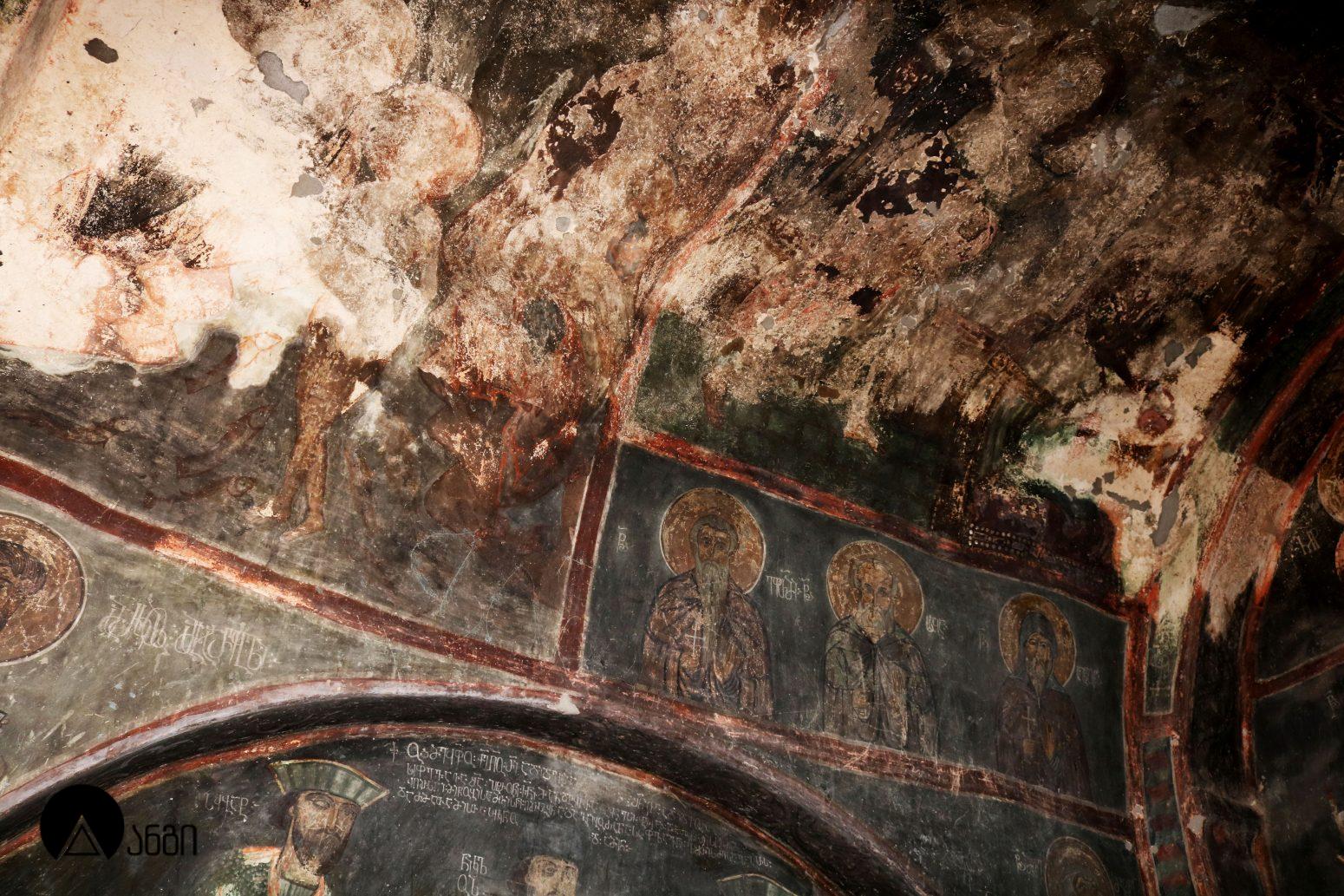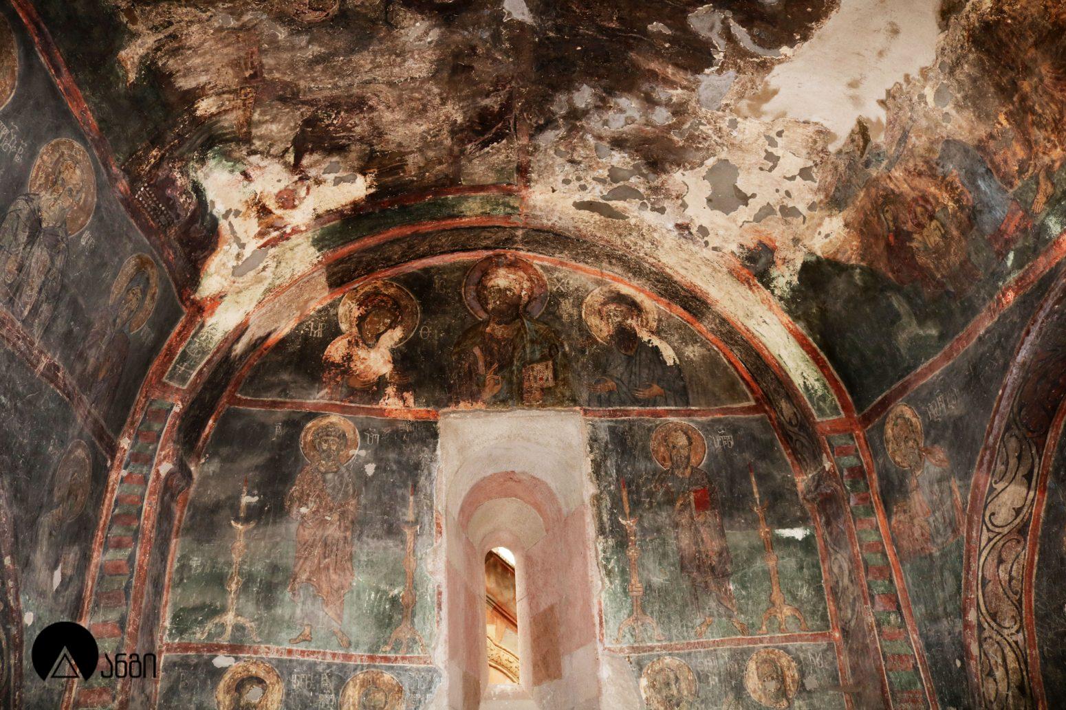 წმ. საბას ეკლესიის ინტერიერი ჯერ კიდევ ბექა I-ის დროს მოიხატა, თუმცა ამ პერიოდის ფრესკები შემორჩენილი არ არის. ამჟამინდელი მოხატულობა შესრულებულია XIV საუკუნის I ნახევარში, სხვადასხვა ოსტატის მიერ. ფრესკები ამჟღავნებს პალეოლოგოსთა ხანისთვის დამახასიათებელ ნიშნებს – ფორმის მოცულობითი ძერწვა, სწორად აგებული ნახატი, არქიტექტურული და პეიზაჟური ფონები, დინამიურობა. წმ. საბას ტაძრის მოხატულობა თავისი პერიოდის ერთ-ერთი მნიშვნელოვანი ნიმუშია. საკურთხევლის აფსიდის კონქში გამოსახულია ვედრების კომპოზიცია, მეორე რეგისტრში – მოციქულთა ზიარება, მესამე რეგისტრში კი – ეკლესიის მამები. ბემის კამარაში გამოსახულია მედალიონში ჩასმული ჯვარი და მთავარანგელოზები. გუმბათში მოცემულია მაცხოვრის ამაღლების კომპოზიცია, გუმბათის ყელის ქვედა რეგისტრში – წინასწარმეტყველები, გუმბათქვეშა აფრებზე – მახარებლები. გუმბათქვეშა ბურჯებზე წმ. მხედართა გამოსახულებებია. სამხრეთის მკლავში გამოსახულია: ნათლისღება, ფერისცვალება, ლაზარეს აღდგინება, გარდამოხსნა, ქრისტეს დატირება, მენელსაცხებლე დედები, ჯოჯოხეთის წარტყვევნა და ქტიტორთა ჯგუფური პორტრეტი. ჩრდილოეთ მკლავში გამოსახულია: ხარება, შობა, იერუსალიმში შესვლა, იუდას ამბორი, სული წმინდის მოფენა, ღვთისმშობლის მიძინება და წმ. მხედარი. დასავლეთის მკლავში გამოსახულია: ქრისტეს მიერ ავადმყოფთა განკურნება, წმ. ევსტათე პლაკიდას სასწაული, განკითხვის დღე და იესეს ხე.