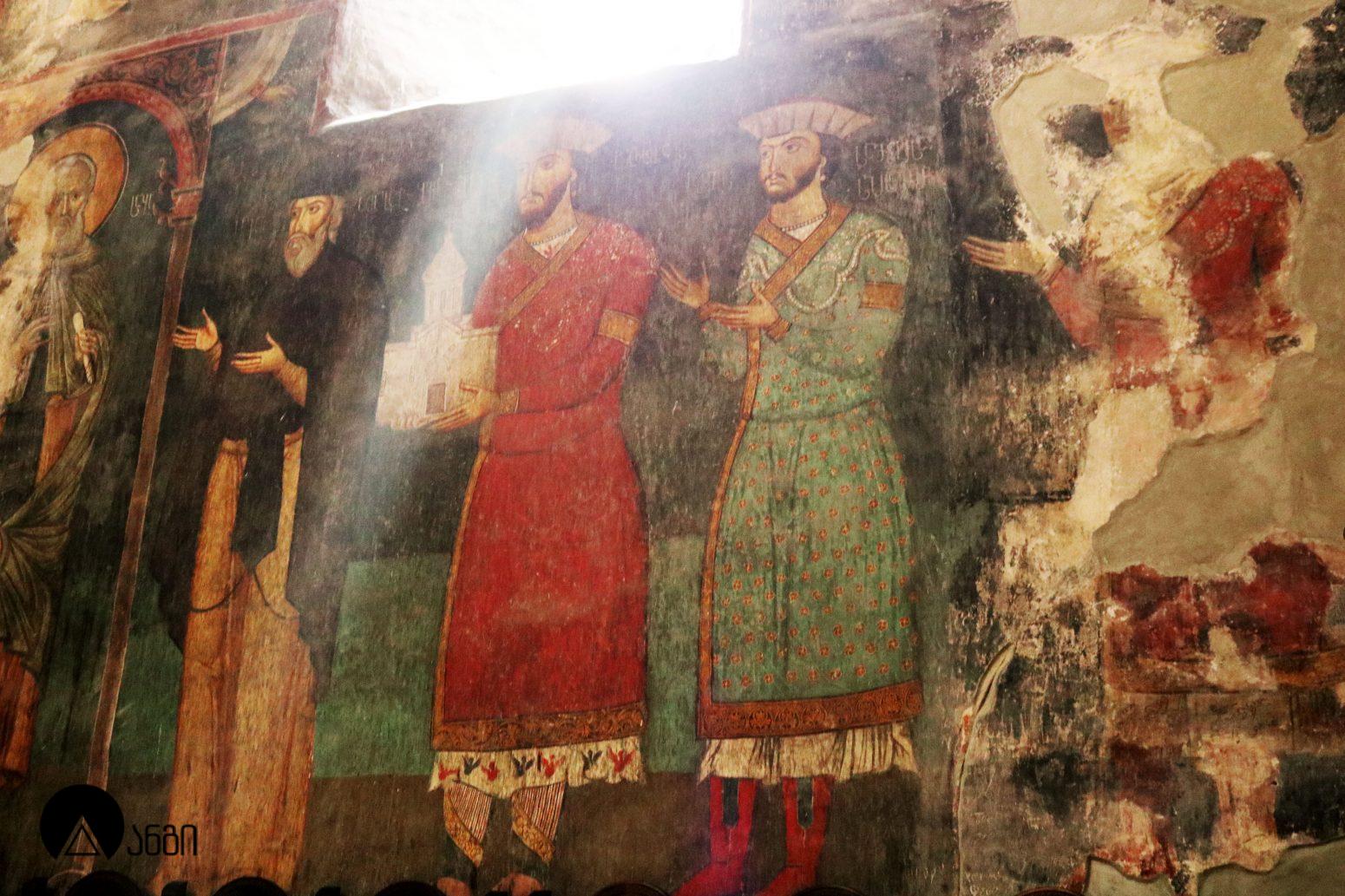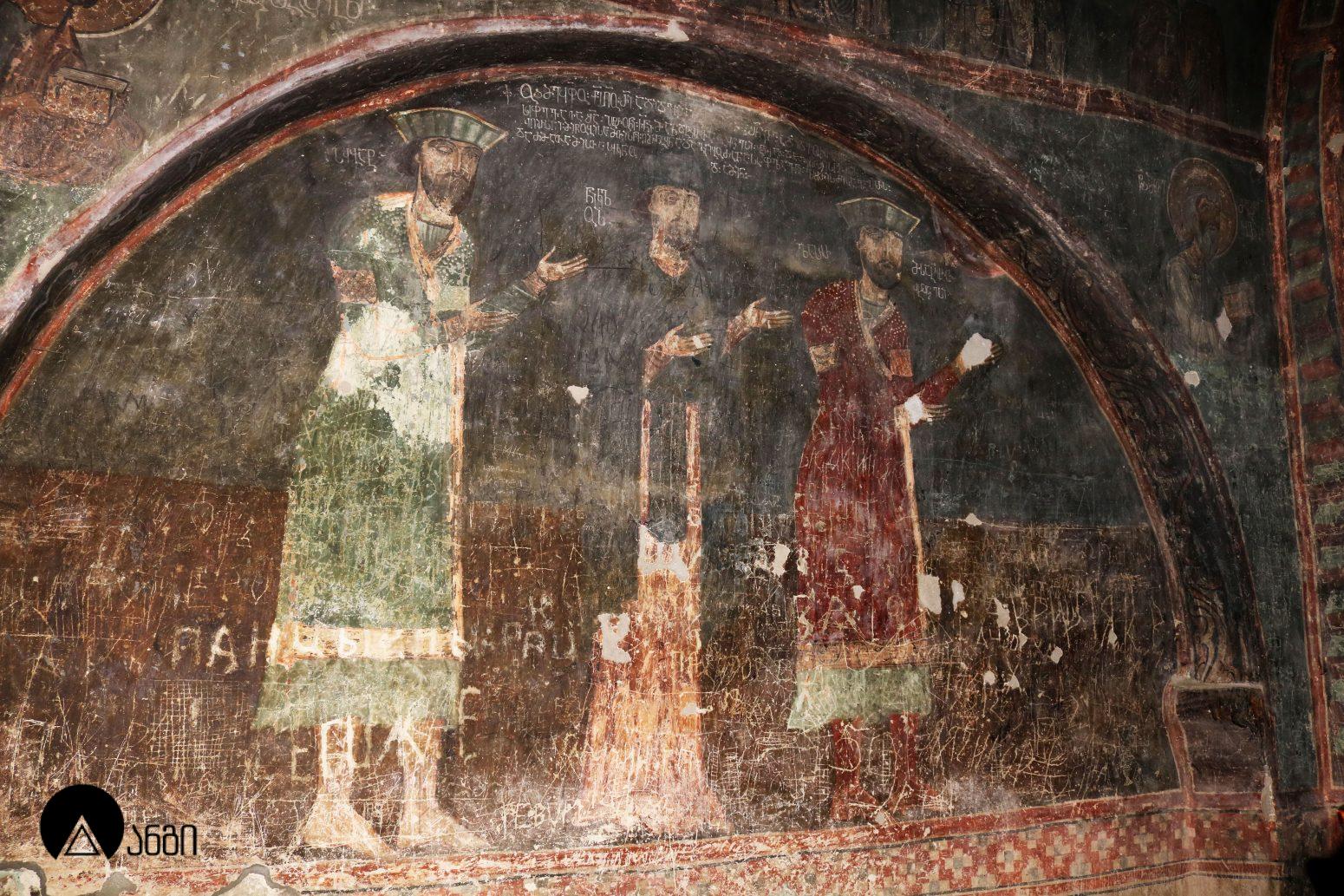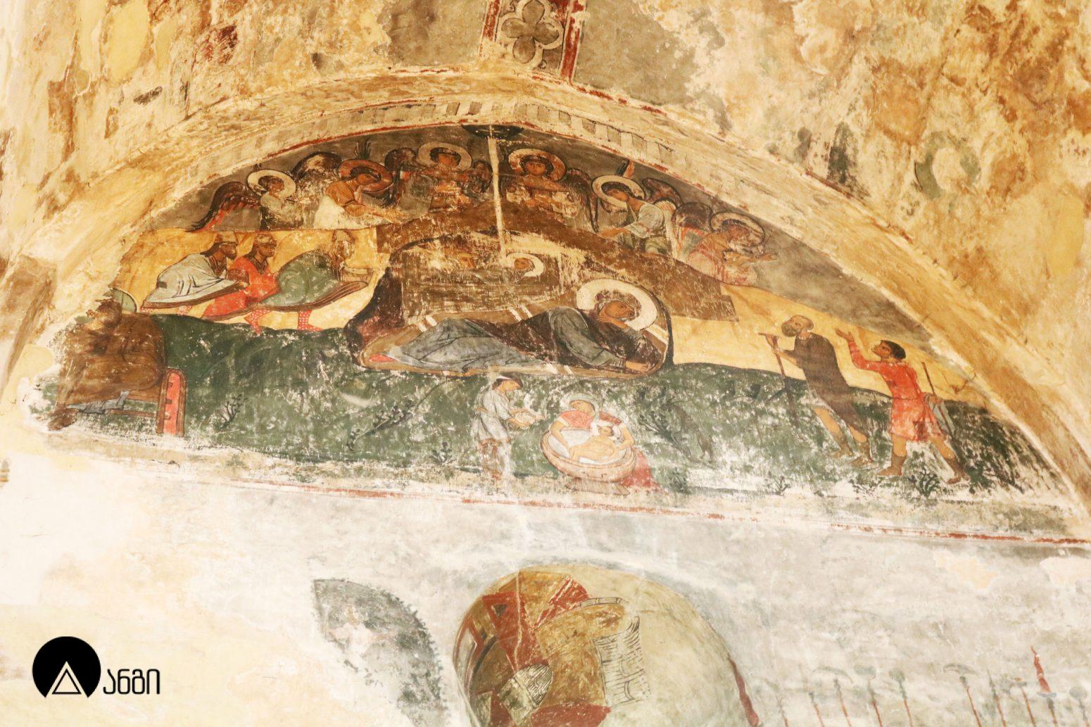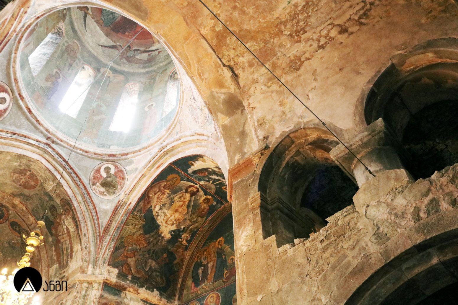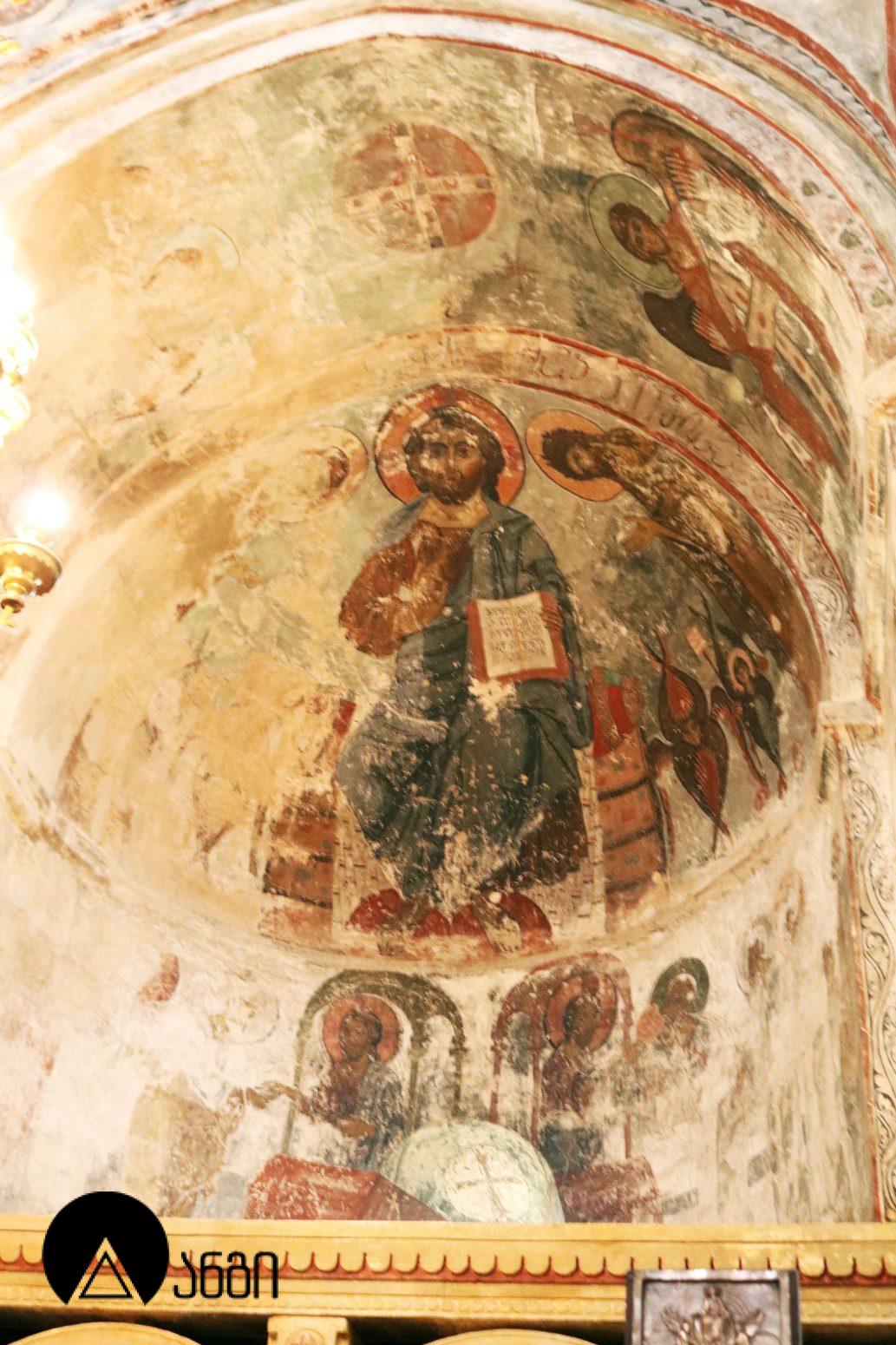 წმ. საბას ეკლესიის ინტერიერი ჯერ კიდევ ბექა I-ის დროს მოიხატა, თუმცა ამ პერიოდის ფრესკები შემორჩენილი არ არის. ამჟამინდელი მოხატულობა შესრულებულია XIV საუკუნის I ნახევარში, სხვადასხვა ოსტატის მიერ. ფრესკები ამჟღავნებს პალეოლოგოსთა ხანისთვის დამახასიათებელ ნიშნებს – ფორმის მოცულობითი ძერწვა, სწორად აგებული ნახატი, არქიტექტურული და პეიზაჟური ფონები, დინამიურობა. წმ. საბას ტაძრის მოხატულობა თავისი პერიოდის ერთ-ერთი მნიშვნელოვანი ნიმუშია. საკურთხევლის აფსიდის კონქში გამოსახულია ვედრების კომპოზიცია, მეორე რეგისტრში – მოციქულთა ზიარება, მესამე რეგისტრში კი – ეკლესიის მამები. ბემის კამარაში გამოსახულია მედალიონში ჩასმული ჯვარი და მთავარანგელოზები. გუმბათში მოცემულია მაცხოვრის ამაღლების კომპოზიცია, გუმბათის ყელის ქვედა რეგისტრში – წინასწარმეტყველები, გუმბათქვეშა აფრებზე – მახარებლები. გუმბათქვეშა ბურჯებზე წმ. მხედართა გამოსახულებებია. სამხრეთის მკლავში გამოსახულია: ნათლისღება, ფერისცვალება, ლაზარეს აღდგინება, გარდამოხსნა, ქრისტეს დატირება, მენელსაცხებლე დედები, ჯოჯოხეთის წარტყვევნა და ქტიტორთა ჯგუფური პორტრეტი. ჩრდილოეთ მკლავში გამოსახულია: ხარება, შობა, იერუსალიმში შესვლა, იუდას ამბორი, სული წმინდის მოფენა, ღვთისმშობლის მიძინება და წმ. მხედარი. დასავლეთის მკლავში გამოსახულია: ქრისტეს მიერ ავადმყოფთა განკურნება, წმ. ევსტათე პლაკიდას სასწაული, განკითხვის დღე და იესეს ხე.