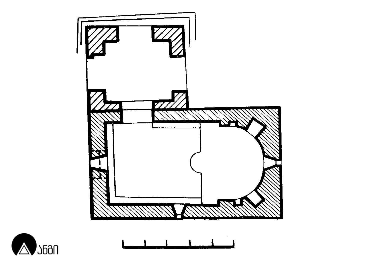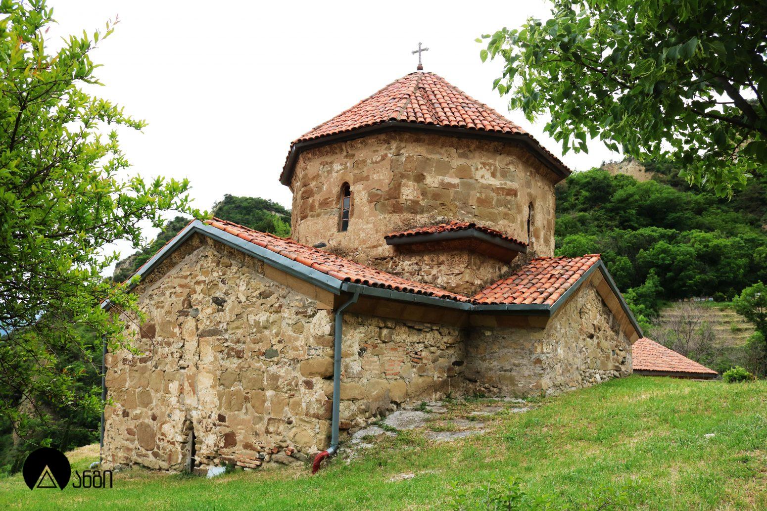 მღვიმე-ეკლესია გზის მარჯვენა მხარეს, კონცხზე დგას. იგი XI საუკუნით თარიღდება და დაშენებულია მღვიმეზე, სადაც შიო პირველად დაბინავდა. შესასვლელი ერთია, ჩრდილოეთიდან. დასავლეთ კედელში გაჭრილია ერთი სარკმელი. XIX საუკუნის 90-იან წლებში მღვიმე-ეკლესია გადაუკეთებიათ. კედლები შელესილი და შეთეთრებულია. დასავლეთის ფასადზე შემორჩენილია ასომთავრული წარწერის ფრაგმენტი — “იესო ქრისტე”.