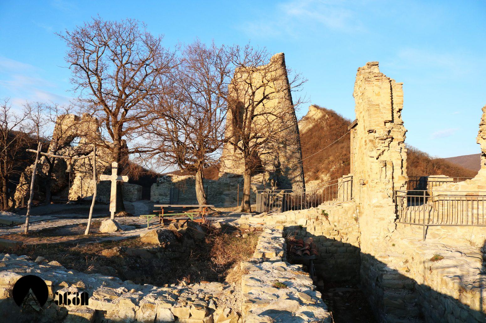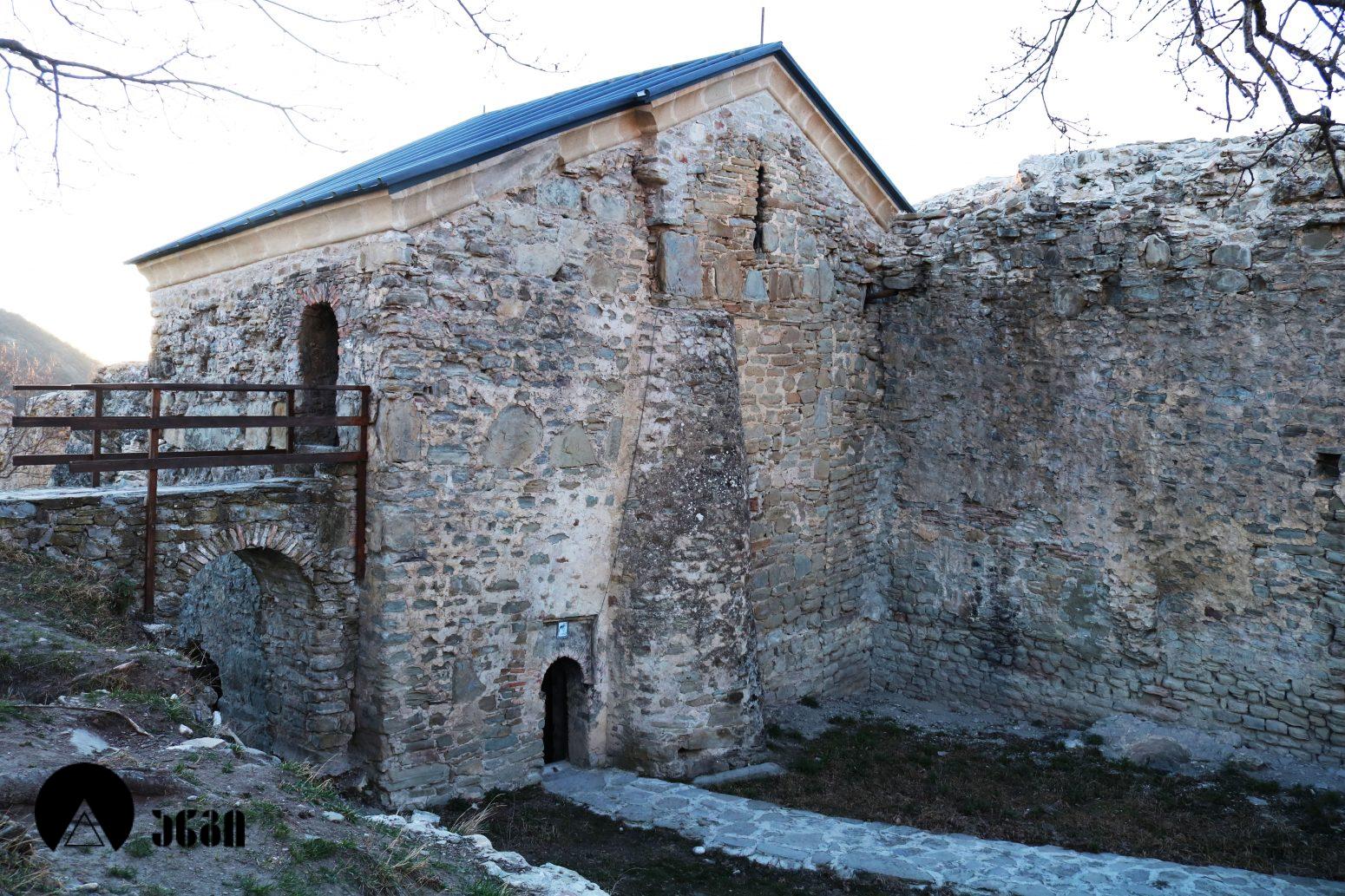 შიდაციხის ტერიტორიაზე მდებარეობს ორსართულიანი ეკლესია – ჯვარპატიოსანი. ეკლესიის ქვედა სართული წარმოადგენს შენობის უძველეს ნაწილს და V-VI საუკუნით თარიღდება. იგი მიშენებული იყო კოშკზე ისე, რომ კოშკის შესასვლელი თავისუფალი რჩებოდა. ეკლესია დარბაზულია, სწორკუთხედში მოქცეული განიერი აფსიდით. ტაძარს ჩრდილოეთიდან შესასვლელი ჰქონია. კამარა, კონქის თაღი და სამხრეთის თაღი ნალისებური ფორმისაა. შიგნიდან კედლები მსხვილი, კარგად გათლილი ქვიშაქვის კვადრებითაა შემოსილი და ციხის კოშკების წყობას მიემსგავსება. მიიჩნევა, რომ ეს ეკლესია წმინდა ნინოს დროს შექმნილი ხის ჯვრის ადგილასაა აგებული. თვით ჯვარი კი ტაძრის ინტერიერში მოექცეოდა, საკურთხევლის წინ. IX-X საუკუნეების მიჯნაზე ძველ ეკლესიას დააშენეს საკმაოდ მაღალი ცალნავიანი ეკლესია. ეკლესიაში შესასვლელი ჩრდილოეთის მხრიდან ყოფილა, მაღალი თაღოვანი კარით. სამხრეთის მხარეს – კოშკისაკენ ეკლესია ორი თაღით იყო გახსნილი. მეორე სართულის აღმოსავლეთ სარკმელს X-XIII საუკუნეებისათვის დამახასიათებელი პროფილირებული მოჩარჩოება აქვს. გვიანფეოდალურ ხანაში ეკლესიას სათავსო მიაშენეს, რომელიც ამავე დროს კარიბჭის როლს ასრულებდა. არსებული ეკლესიის სამხრეთისა და ჩრდილოეთის ნაწილები მიუშენეს ისე, რომ მან სამეკლესიანი ბაზილიკის ფორმა მიიღო. ეკლესიისთვის ერთიანი სახის მინიჭების მიზნით ქვედა და ზედა სართულების ყველა სათავსი კომპოზიციურად გაუერთიანებიათ. ქვედა სართულის აღმოსავლეთის ფასადს შეისრული თაღი მიაშენეს. მეორე სართულზე, სარკმლის ორივე მხარეს, თითო მაღალი გეგმაში სამკუთხა ფორმის ნიშია თაღოვანი ზედნადებით. ეკლესიას შემოვლებული აქვს გვიანი შუა საუკუნეების ფლეთილი ქვით ნაგები გალავანი.