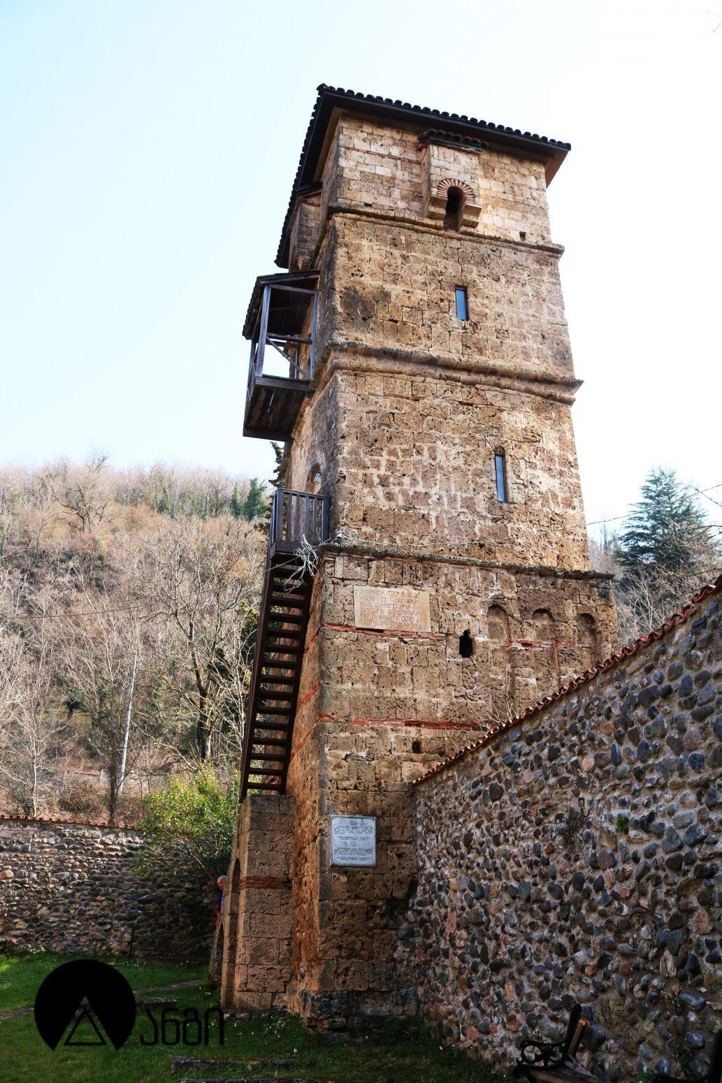 საცხოვრებელი კოშკი ეკლესიის აღმოსავლეთით დგას. იგი ოთხსართულიანი ნაგებობაა. შესასვლელი მეორე სართულზეა მოწყობილი. თითოეულ სართულზე თითო ოთახია. პირველ სართულზე საკუჭნაო ყოფილა განჯინებით, რომელშიც მეორე სართულიდან იყო ჩასასვლელი. მეორე სართულზე გვხვდება ბუხარი, საპირფარეშო და განჯინები. მესამე სართული სალოცავად და სამუშაოდ ყოფილა განკუთვნილი. კედლებში ღრმა ნიშებია განლაგებული. ამ სართულის აღმოსავლეთ მხარეს კონქს მიმსგავსებული გადახურვა აქვს და შეიმჩნევა მოხატულობის კვალი. დასავლეთით ხის აივანი იყო მოწყობილი. მეოთხე სართული თავდაცვითი დანიშნულების იყო და მაშიკულებითაა აღჭურვილი. პირველი სართული ცოკოლთანაა გაერთიანებული და, დანარჩენ სართულებთან შედარებით, ბევრად მაღალი ჩანს, ასევე სხვა სართულთა სიმაღლე ზევითკენ თანდათან მცირდება, რაც ნაგებობის მასშტაბურობას ზრდის. თითოეულ სართულს პროფილირებული ლავგარდანი ასრულებს. პირველი სართულის აღმოსავლეთ და სამხრეთ კედლები თაღედითაა დეკორირებული. მხატვრულ სახეს ქმნის ასევე შვერილი მაშიკულები, რომელთა ქვედა მხარე საფეხუროვანია, ხვრელები კი აგურით გამოყვანილი თაღებითაა აქცენტირებული, რაც მათ დეკორატიულ დატვირთვას ანიჭებს.