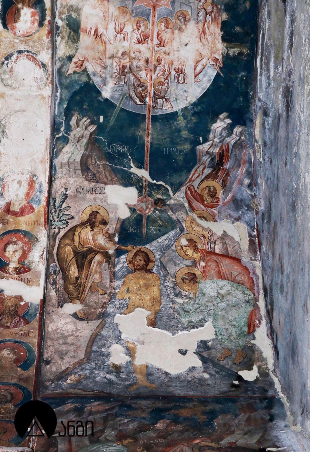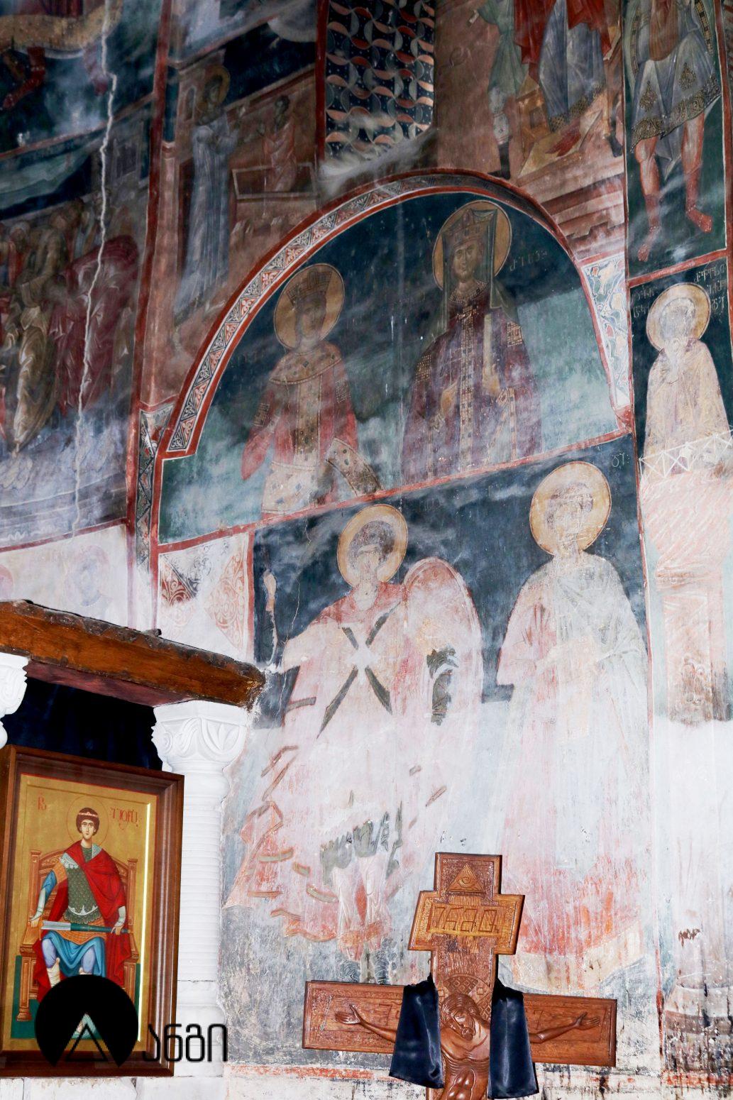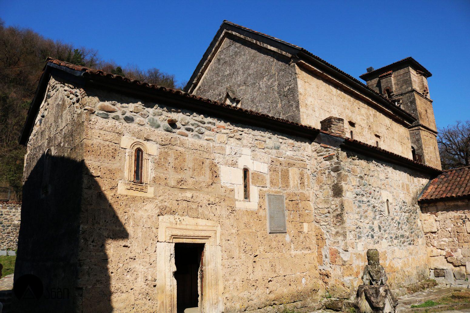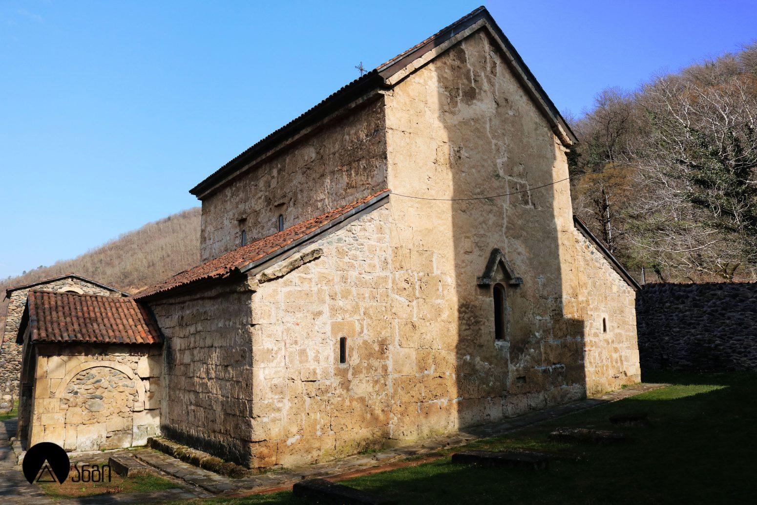 ეკლესიას დასავლეთით აბაშიძეთა საძვალე ეკვრის, რომელიც უაფსიდო დარბაზულ ნაგებობას წარმოადგენს. სამხრეთ კედელში ჩასმული წარწერის თანახმად იგი აგებულია კალატოზ იმედას მიერ: “კალატოზსა იმედას შეუნდოსა ღმერთმან”. ნაგებობის შესასვლელი და სარკმლები ჩუქურთმიანი მოჩარჩოებითაა შემკული.