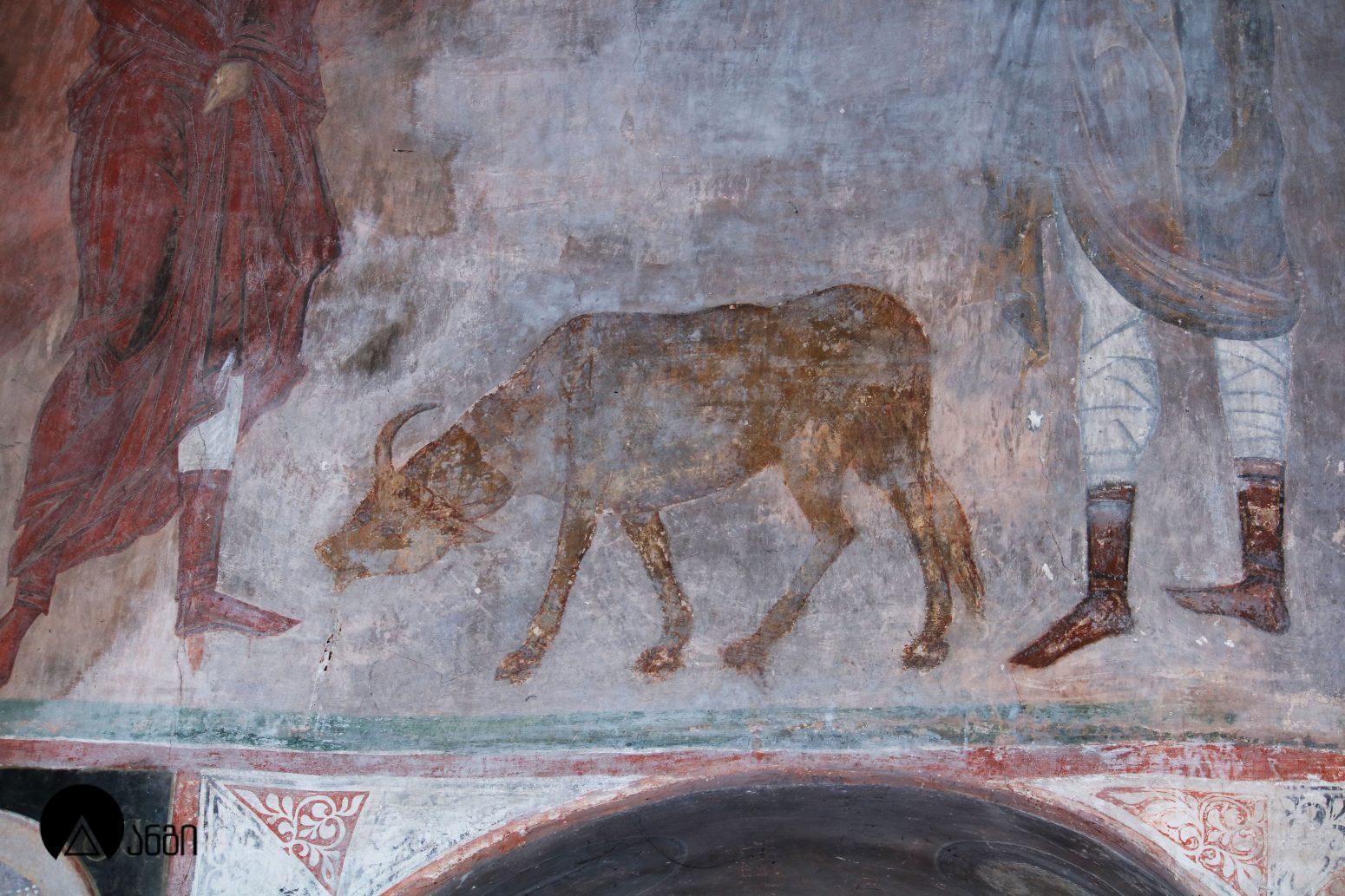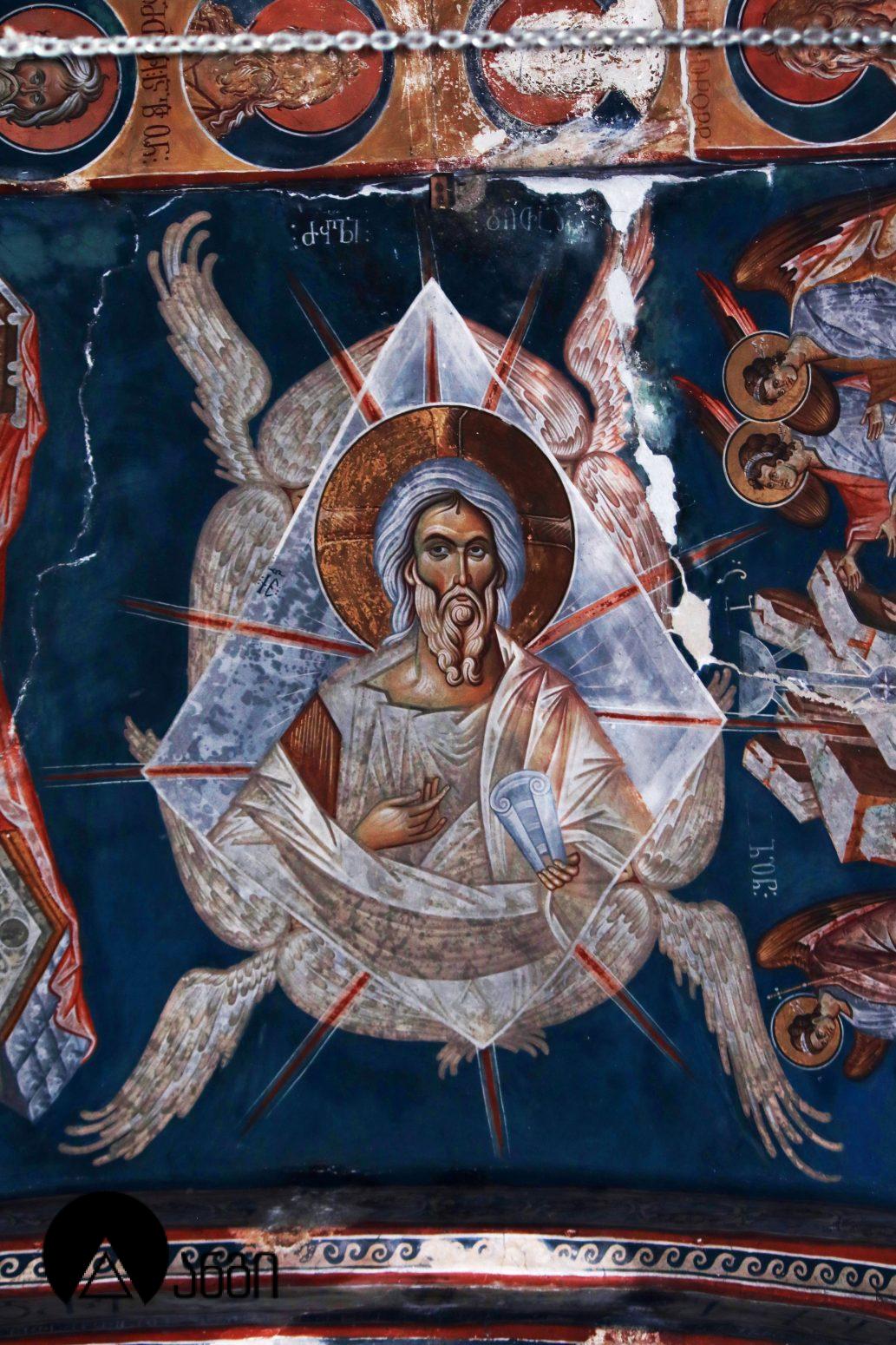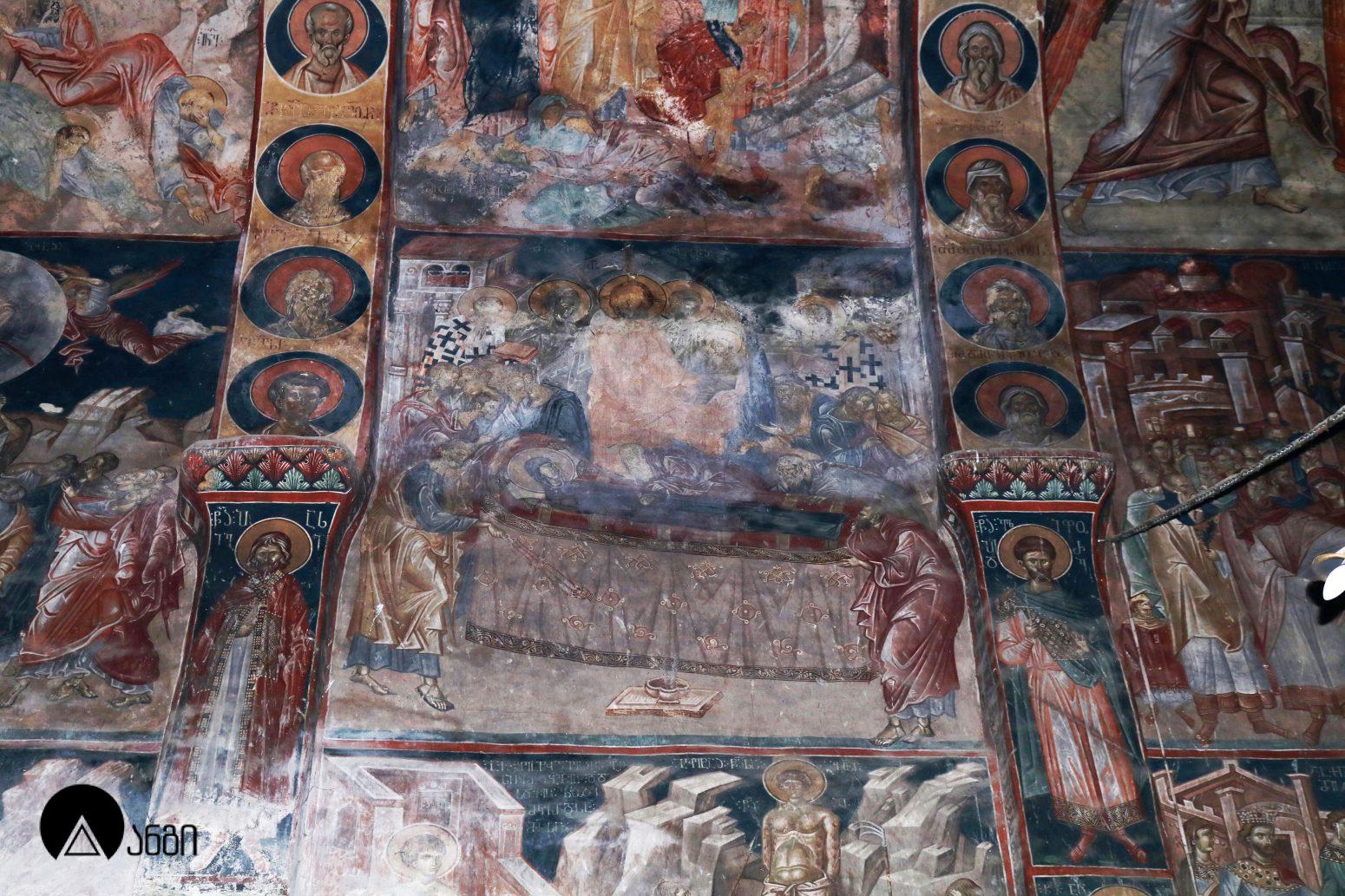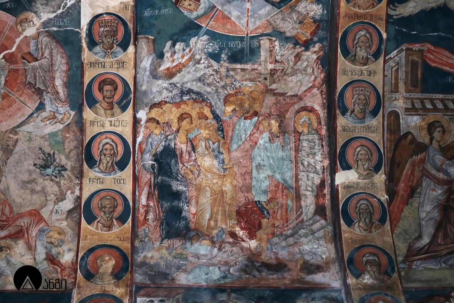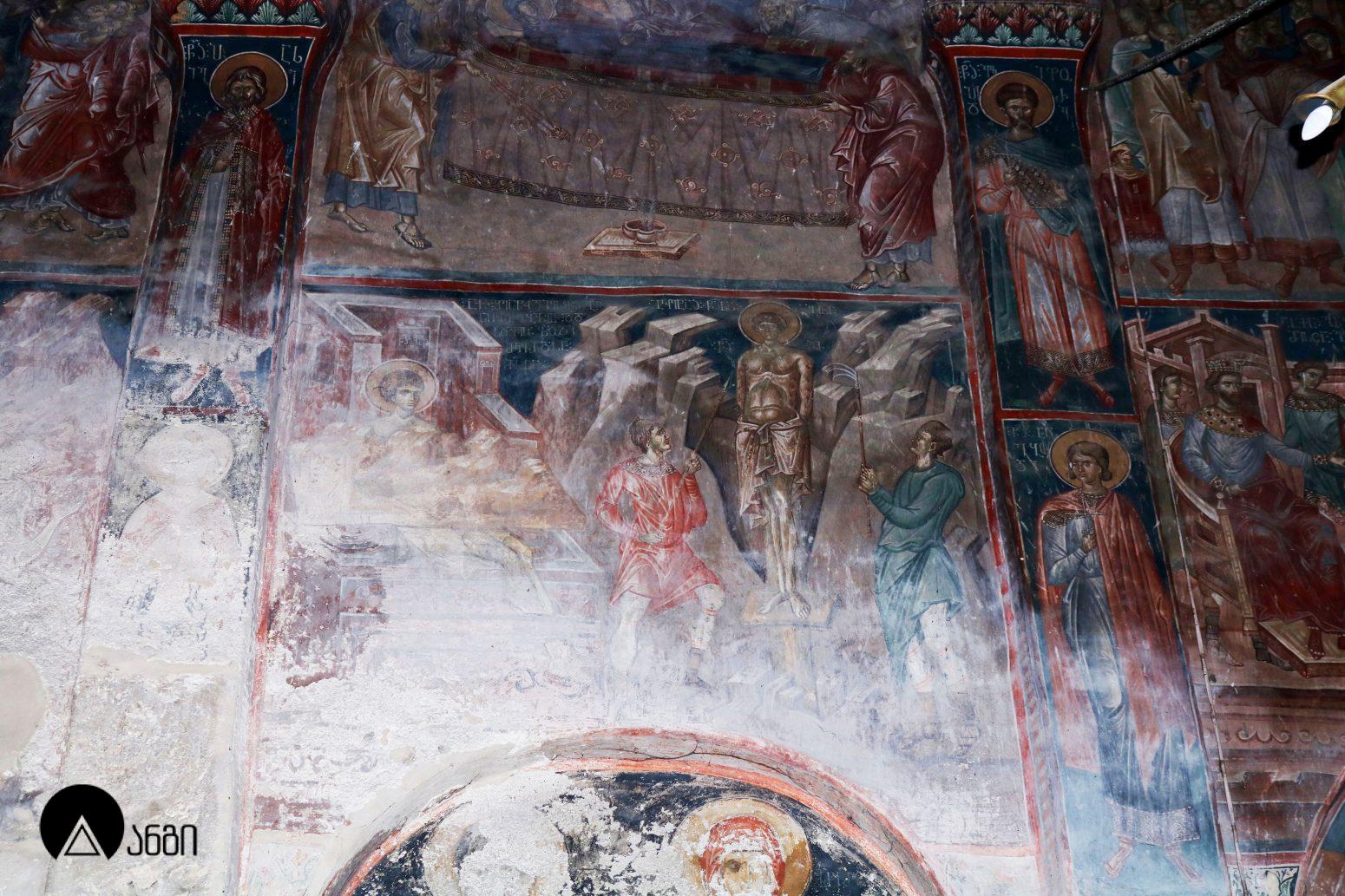 ეკლესიას დასავლეთით აბაშიძეთა საძვალე ეკვრის, რომელიც უაფსიდო დარბაზულ ნაგებობას წარმოადგენს. სამხრეთ კედელში ჩასმული წარწერის თანახმად იგი აგებულია კალატოზ იმედას მიერ: “კალატოზსა იმედას შეუნდოსა ღმერთმან”. ნაგებობის შესასვლელი და სარკმლები ჩუქურთმიანი მოჩარჩოებითაა შემკული.