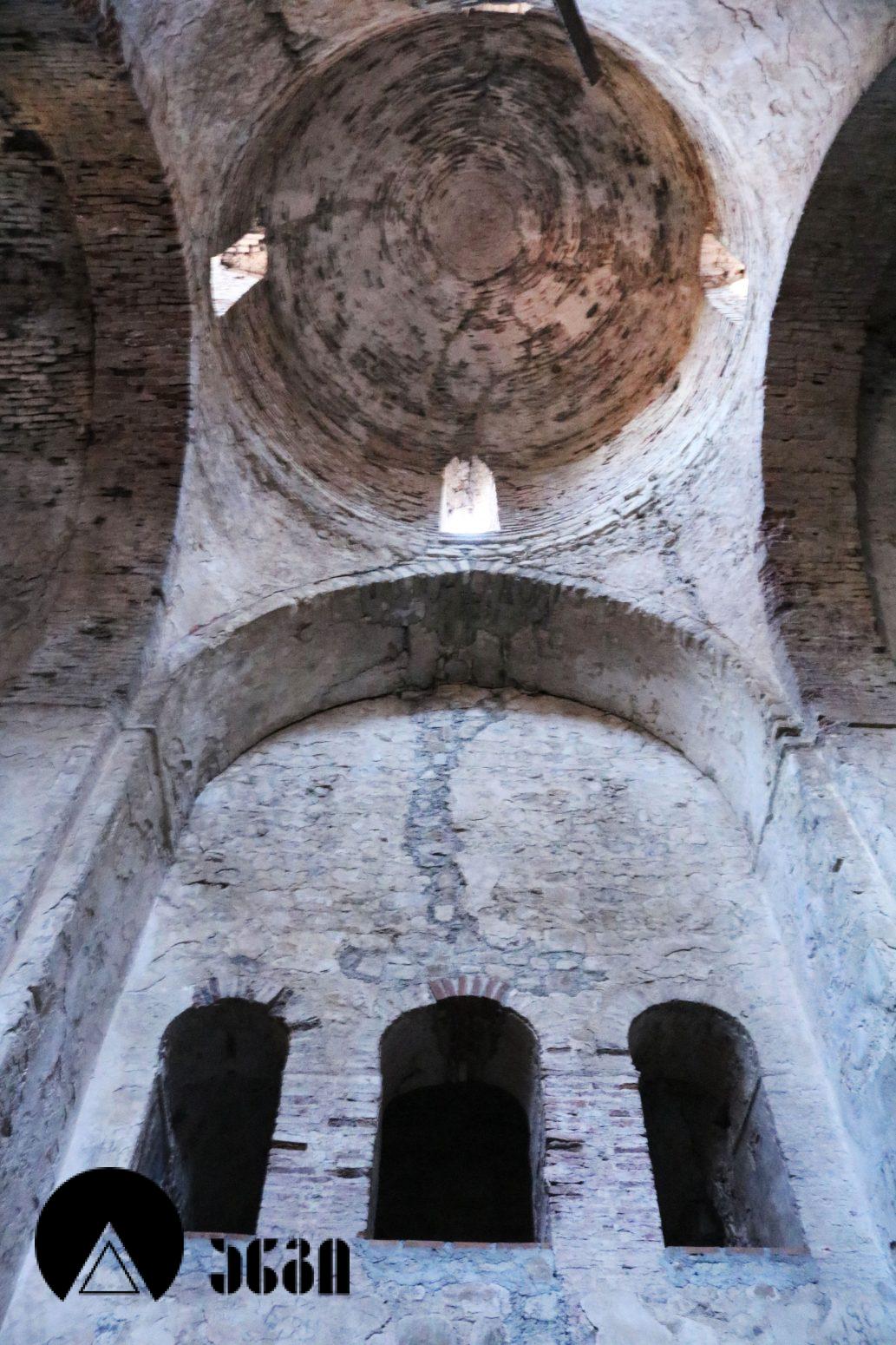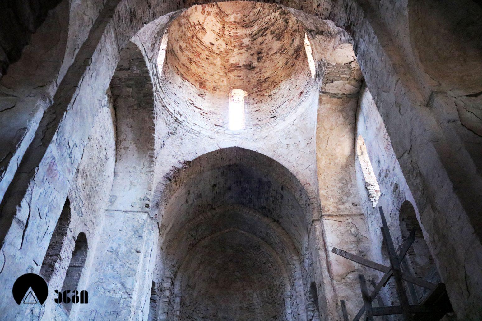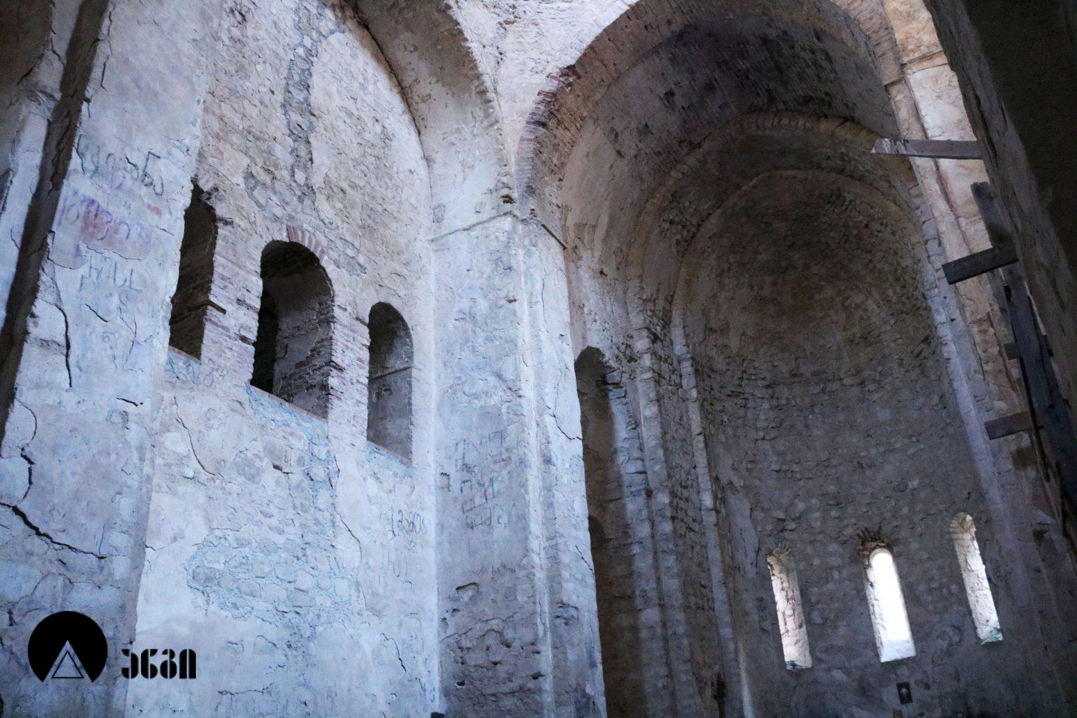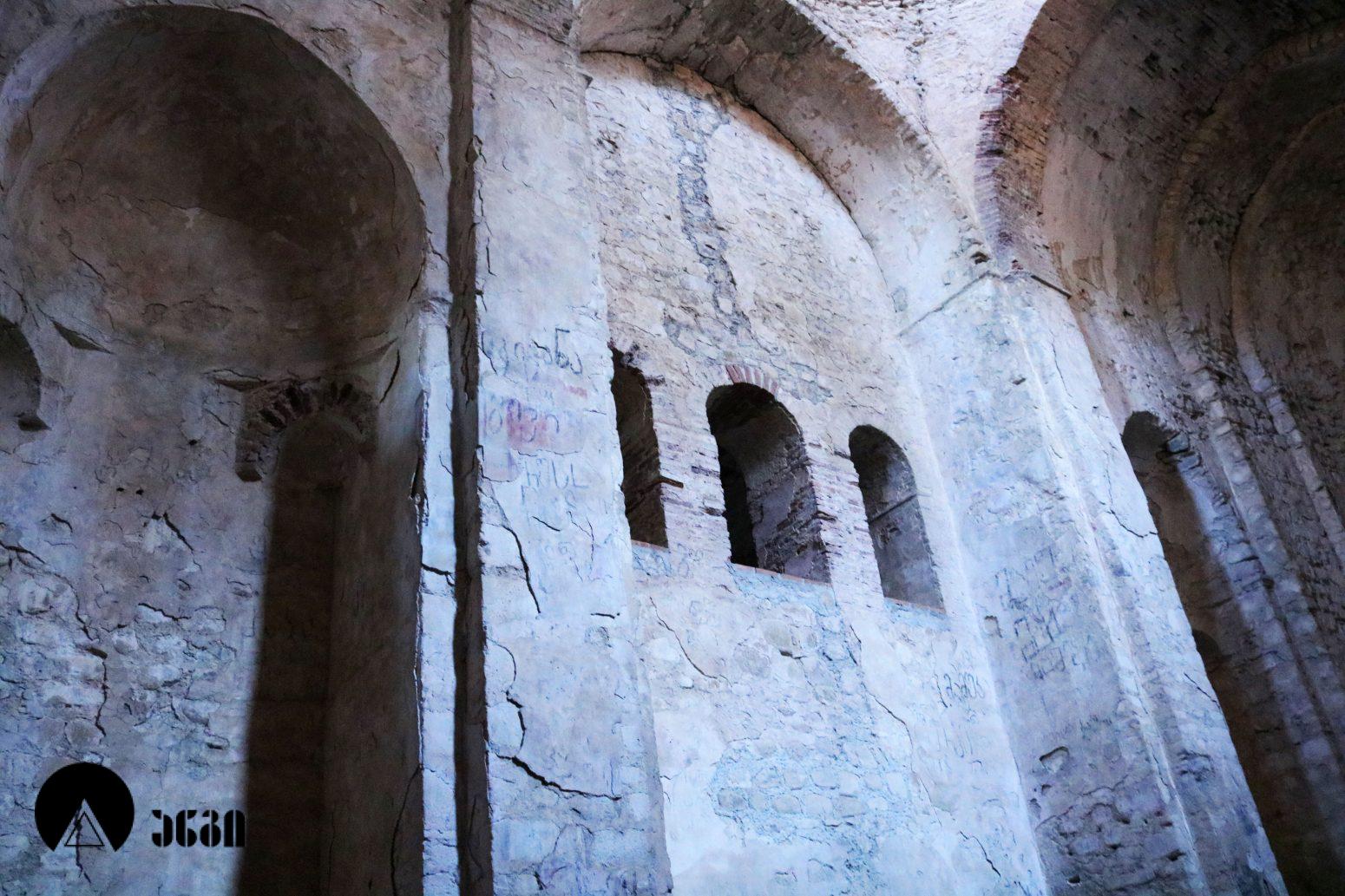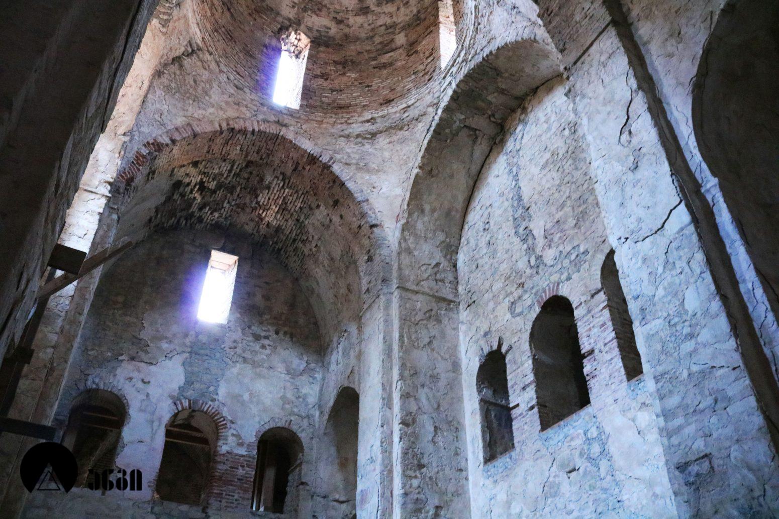 ნაგებობა სამნავიანი ბაზილიკა ყოფილა, რომელსაც მთელს სიგრძეზე დამატებითი სათავსები და გალერეები გასდევდა (შესაძლოა დასავლეთიდანაც). ნავთა გამყოფი ბურჯები და თაღები შემორჩენილი არ არის. ეკლესია ნაგებია რიყის ქვითა და აგურით, კუთხეებისა და კონსტრუქციული ელემენტებისთვის თლილი შირიმია გამოყენებული. მთავარი ნავი აღმოსავლეთით კონქით გადახურული ნალისებრი აფსიდით სრულდება. აფსიდის წინ მცირე სიღრმის ბემაა. საკურთხეველი სამნაწილიანია — აფსიდის ორივე მხარეს სწორკუთხა დამხმარე სათავსია (პირობითად — პასტოფორიუმები), რომლებიც შესაბამის ნავებს დასავლეთ კედელში მოწყობილი თაღოვანი კარით უკავშრდება. სათავსებს შესასავლელები აღმოსავლეთინაც აქვთ (პასტოფორიუმის აღმოსავლეთ კედელში გაჭრილი შესასვლელი გააჩნია ანჩისხატის ბაზილიკასაც). ჩრდილოეთ პასტოფორიუმი კარით უკავშირდება ჩრდილოეთ გალერეის აღმოსავლეთ ნაწილში არსებულ სწორკუთხა სათავსსაც. ჩრდილოეთ გალერეის დასავლეთ ნაწილი აღმოსავლეთით აფსიდით სრულდება. სამხრეთ გალერეის აღმოსავლეთ ნაწილში აფსიდალური ეკვდერია გამოყოფილი, რომლის ქვეშ კრიპტაა მოწყობილი. ეკვდერს ორი თაღოვანი შესასვლელი აქვს — დასავლეთიდან და სამხრეთიდან. სამხრეთის ეკლესიის იატაკი მთავარი ნავის იატაკთან მიმართებით, ოდნავ მაღალია, რაც ნაგებობის ქვეშ არსებული კამაროვანი კრიპტით არის განპირობებული. აფსიდში ერთი ნალისებრი სარკმელია გაჭრილი. თითო თაღოვანი სარკმელი აქვთ აღმოსავლეთით დამხმარე სათავსებსაც. სარკმელთა გადამხურავი თაღები შირიმის ერთიან ქვაშია გამოჭრილი. მთავარი ნავი, გვერდითებთან შედარებით, უფრო მაღალი და განიერია. მთავარ ნავს ორკალთა გადახურვა აქვს, გვერდინა ნავებს კი — ცალფერდა. გვერდითა ნავებთან შედარებით, უფრო დაბალია გალერეები და მათაც ცალფერდა გადახურვა აქვთ. შესაბამისად, აღმოსავლეთ ფასადს ხუთნავიანი ბაზილიკის აბრისი აქვს. მთავარი ნავის აფსიდის სარკმელი სადა ჰორიზონტალურ გადანაკეცებიანი თავსართითაა დეკორირებული. სამხრეთ ეკვდერის აღმოსავლეთ ფასადზე დიდი, ღრმა, თაღოვანი ნიშაა. ნიშის თაღი დახრილი სიბრტყის ფორმის შირიმის სადა იმპოსტებს ეყრდნობა, ასეთივე იმპოსტებს ეყრდნობა ეკვდერის დასავლეთ შესასვლელის თაღიც. ბაზილიკა და ეკვდერ-გალერეები ერთიანი წყობით არ არის ნაგები, თუმცა ისინი თანადროულია.