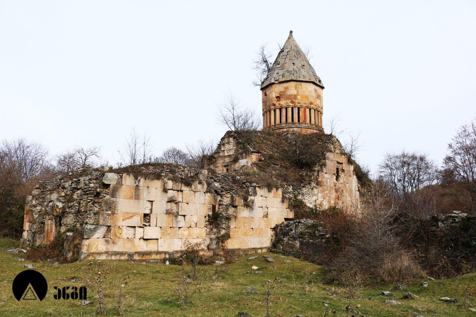 ანსამბლის მთავარი ნაგებობა გუმბათოვანი ტაძარია, რომელიც ჩახაზული ჯვრის ტიპის ჯვარ-გუმბათოვან ნაგებობას წარმოადგენს. შესასვლელი ორია – დასავლეთითა და სამხრეთით. ეკლესიას დასავლელით გავითი აქვს მიდგმული. დარბაზის აღმოსავლეთით საკურთხევლის ნახევარწრიული აფსიდია, რომელიც მთავარი სივრცისგან არდაბაგითაა გამოყოფილი. აფსიდი ბემითაა დაგრძელებული. ჯვრის მოხაზულობის ცენტრალურ სივრცეს კუთხეებში აფსიდიანი, იზოლირებული სამლოცველოები აქვს დამატებული. გუმბათქვეშა კვადარტის კუთხეები სამ-სამი მრგვალი ნახევარსვეტითაა გაფორმებული, რომლებზეც ნახევარწრიული თაღებია გადაყვანილი. კვადრატიდან გუმბათის წრიულ ყელზე გადასვლა აფრებით ხორციელდება. გუმბათის ყელის საფუძველზე ერთმანეთთან მჭიდროდ განლაგებული ოცდათი ექვსწახნაგა სვეტია, რომელსაც გუმბათის ათწახნაგა ყელი და კამარა ეყრდნობა. ინტერიერში სვეტების ზემოთ გუმბათის ყელი არ გრძელდება, კამარასა და სვეტებს შორის მხოლოდ დეკორირებული სარტყელია. გუმბათის ნახევარსფეროს მზიდ კონსტრუქციას ექვსი ურთიერთგადამკვეთი თაღი ქმნის, რომლებიც ექვსწახნაგა ვარსკვლავს გამოსახავენ და მხატვრული ფუნქციაც გააჩნიათ. ინტერიერი შელესილია, თუმცა, როგორც ჩანს, თავიდან შეულესავი უნდა ყოფილიყო, რადგან ჩამოცვენილი ბათქაშის ადგილას რელიეფური დეტალები ჩანს. ტაძრის ყველა მკლავში თითო თაღოვანი სარკმალია, თითო თაღოვანი სარკმელი აქვთ აგრეთვე აღმოსავლეთის აფსიდის გვერდით მდებარე სამლოცველოებს. ექსტერიერში აფსიდსა და სამლოცველოებს შორის სამკუთხა ნიშებია, რომლებიც მცირე ზომის, სიღრმეში განთავსებული მარაოსებრი დეკორითაა შემკული. ფასადები, გარდა გუმბათისა, თითქმის მოურთველია, მხოლოდ სარკმლებს აქვს ლილვოვანი საპირეები და შესასვლელებს ასევე საკმაოდ მარტივი დეკორი. ტაძრის ძირითადი კორპუსის საპერანგე წყობის მნიშვნელოვანი ნაწილი ჩამოცვენილია. გუმბათის სვეტებს სამფურცლა და ოთხფურლა, ყვავილისებრი მორთულობა გასდევს. გუმბათის ყელზე მიმობნეულია მცენარეული და გეომეტრიული რელიეფები და ჯვრები და გრეხილი ლილვის ლავგარდანი ასრულებს. ტაძრის ფასადებს წრეთარგისა და ლილვისგან შედგენილი ლავგარდანი შემოუყვება. ტაძრის სამხრეთ შესასვლელთან სახურავის კეხი დევს ლომის რელიეფური გამოსახულებით. ეკლესიის დასავლეთ ფასადზე მიდგმული გავითი გეგმით კვადრატული მოხაზულობისაა. გავითის კედლები ინტერიერში მსხვილი პილასტრებითა და მათ შორის გადაყვანილი თაღებითაა დანაწევრებული. გავითის კედლებსა და ეკლესიის შესასვლელ