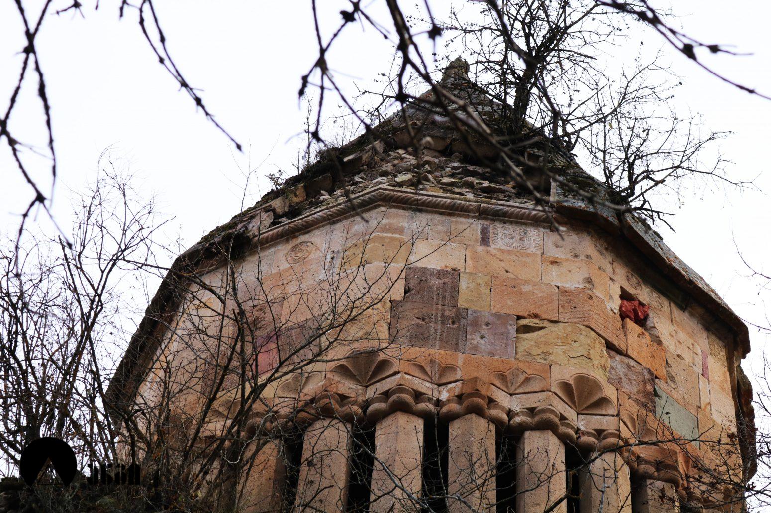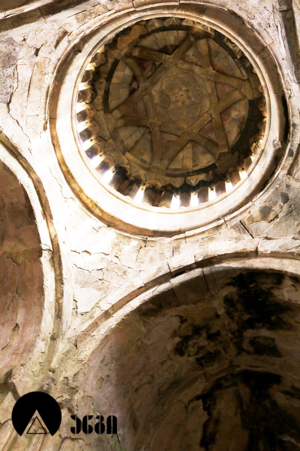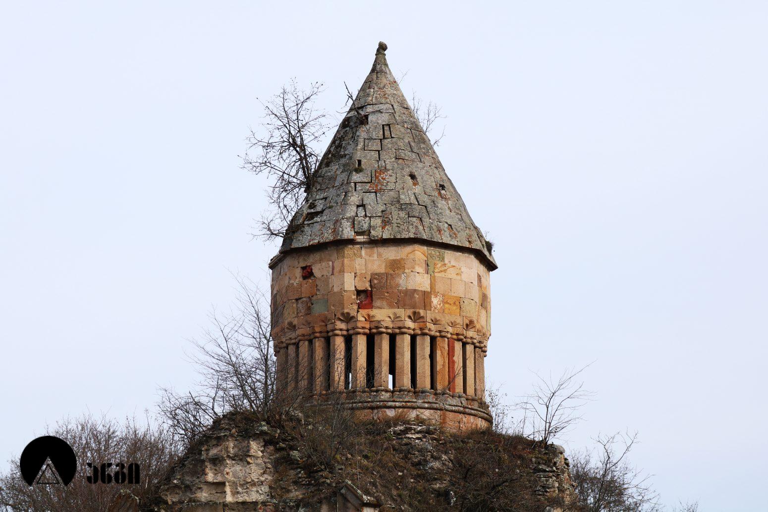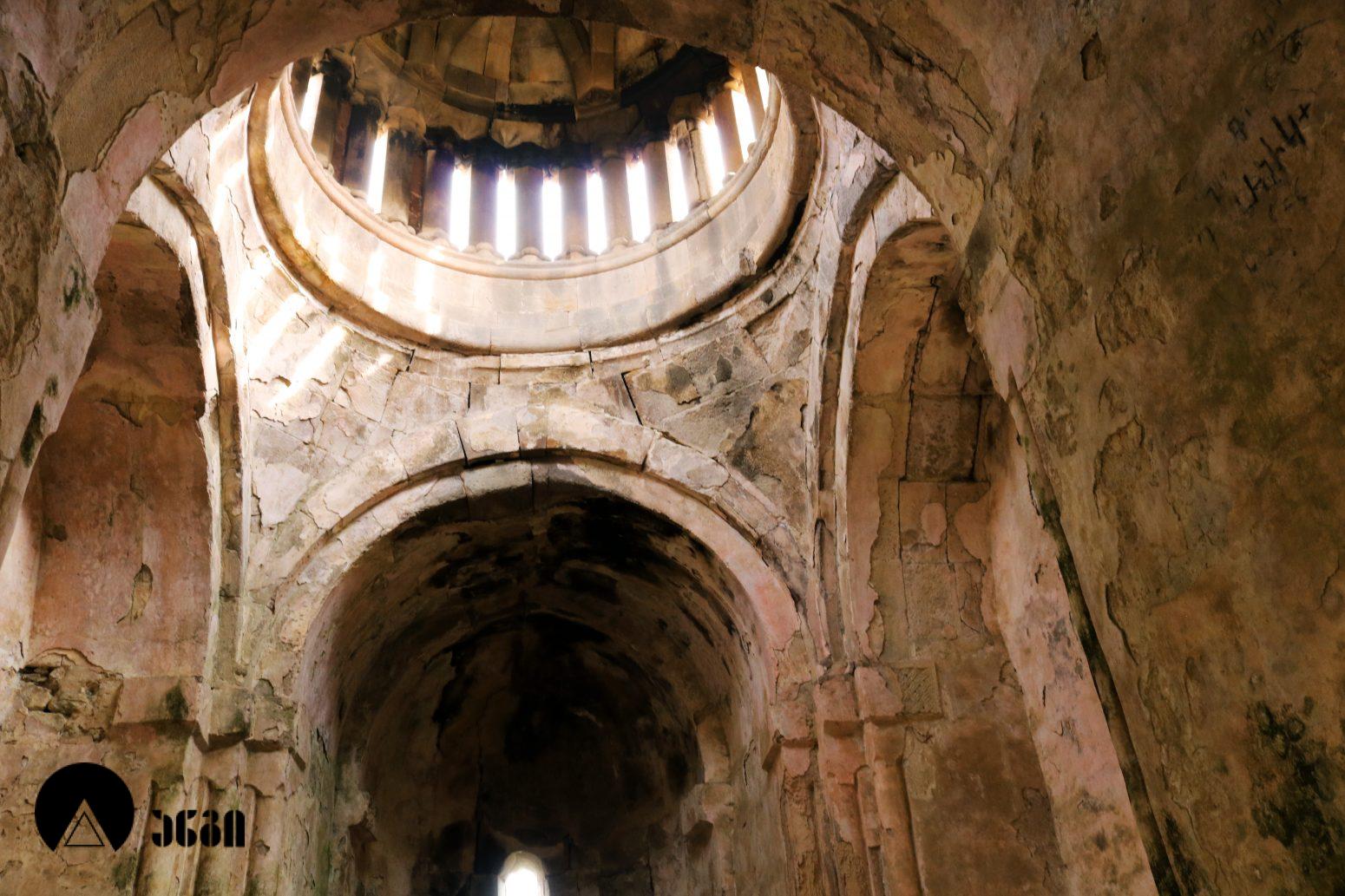 ანსამბლის მთავარი ნაგებობა გუმბათოვანი ტაძარია, რომელიც ჩახაზული ჯვრის ტიპის ჯვარ-გუმბათოვან ნაგებობას წარმოადგენს. შესასვლელი ორია – დასავლეთითა და სამხრეთით. ეკლესიას დასავლელით გავითი აქვს მიდგმული. დარბაზის აღმოსავლეთით საკურთხევლის ნახევარწრიული აფსიდია, რომელიც მთავარი სივრცისგან არდაბაგითაა გამოყოფილი. აფსიდი ბემითაა დაგრძელებული. ჯვრის მოხაზულობის ცენტრალურ სივრცეს კუთხეებში აფსიდიანი, იზოლირებული სამლოცველოები აქვს დამატებული. გუმბათქვეშა კვადარტის კუთხეები სამ-სამი მრგვალი ნახევარსვეტითაა გაფორმებული, რომლებზეც ნახევარწრიული თაღებია გადაყვანილი. კვადრატიდან გუმბათის წრიულ ყელზე გადასვლა აფრებით ხორციელდება. გუმბათის ყელის საფუძველზე ერთმანეთთან მჭიდროდ განლაგებული ოცდათი ექვსწახნაგა სვეტია, რომელსაც გუმბათის ათწახნაგა ყელი და კამარა ეყრდნობა. ინტერიერში სვეტების ზემოთ გუმბათის ყელი არ გრძელდება, კამარასა და სვეტებს შორის მხოლოდ დეკორირებული სარტყელია. გუმბათის ნახევარსფეროს მზიდ კონსტრუქციას ექვსი ურთიერთგადამკვეთი თაღი ქმნის, რომლებიც ექვსწახნაგა ვარსკვლავს გამოსახავენ და მხატვრული ფუნქციაც გააჩნიათ. ინტერიერი შელესილია, თუმცა, როგორც ჩანს, თავიდან შეულესავი უნდა ყოფილიყო, რადგან ჩამოცვენილი ბათქაშის ადგილას რელიეფური დეტალები ჩანს. ტაძრის ყველა მკლავში თითო თაღოვანი სარკმალია, თითო თაღოვანი სარკმელი აქვთ აგრეთვე აღმოსავლეთის აფსიდის გვერდით მდებარე სამლოცველოებს. ექსტერიერში აფსიდსა და სამლოცველოებს შორის სამკუთხა ნიშებია, რომლებიც მცირე ზომის, სიღრმეში განთავსებული მარაოსებრი დეკორითაა შემკული. ფასადები, გარდა გუმბათისა, თითქმის მოურთველია, მხოლოდ სარკმლებს აქვს ლილვოვანი საპირეები და შესასვლელებს ასევე საკმაოდ მარტივი დეკორი. ტაძრის ძირითადი კორპუსის საპერანგე წყობის მნიშვნელოვანი ნაწილი ჩამოცვენილია. გუმბათის სვეტებს სამფურცლა და ოთხფურლა, ყვავილისებრი მორთულობა გასდევს. გუმბათის ყელზე მიმობნეულია მცენარეული და გეომეტრიული რელიეფები და ჯვრები და გრეხილი ლილვის ლავგარდანი ასრულებს. ტაძრის ფასადებს წრეთარგისა და ლილვისგან შედგენილი ლავგარდანი შემოუყვება. ტაძრის სამხრეთ შესასვლელთან სახურავის კეხი დევს ლომის რელიეფური გამოსახულებით. ეკლესიის დასავლეთ ფასადზე მიდგმული გავითი გეგმით კვადრატული მოხაზულობისაა. გავითის კედლები ინტერიერში მსხვილი პილასტრებითა და მათ შორის გადაყვანილი თაღებითაა დანაწევრებული. გავითის კედლებსა და ეკლესიის შესასვლელ