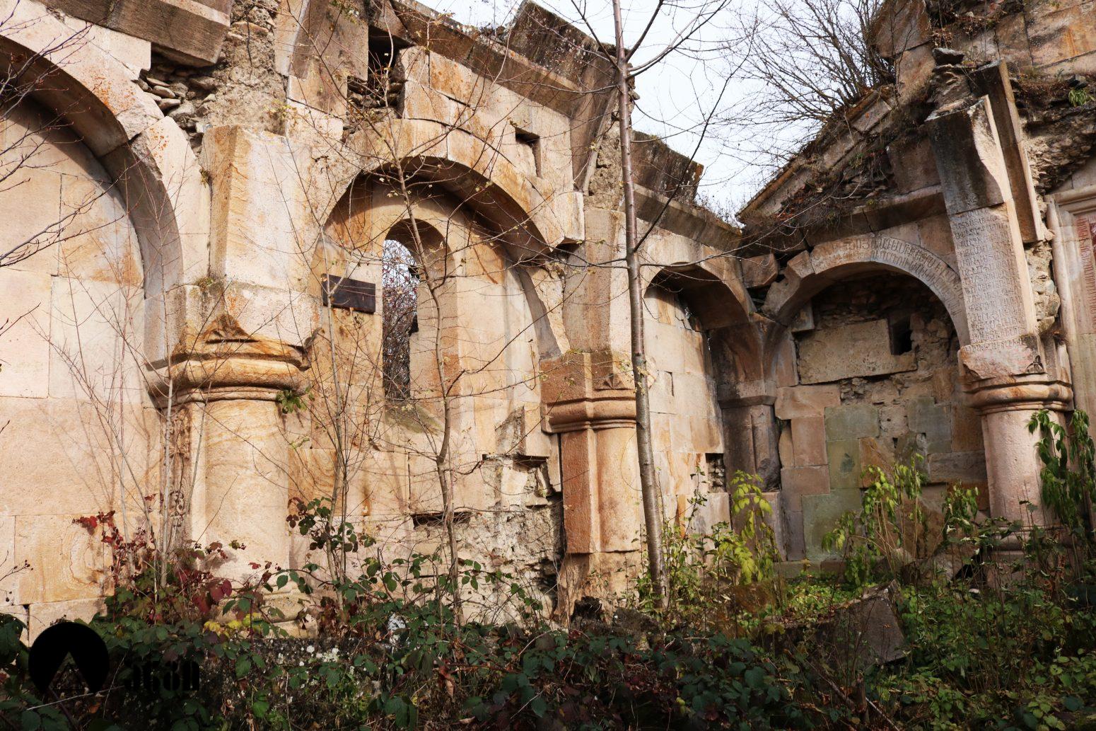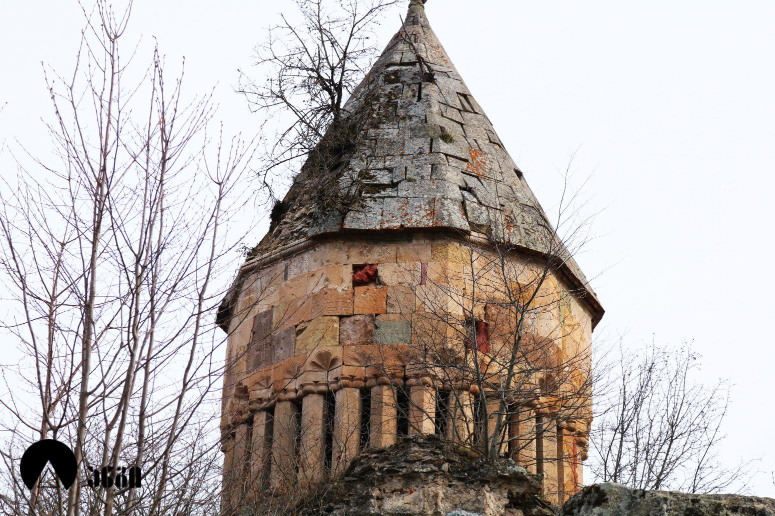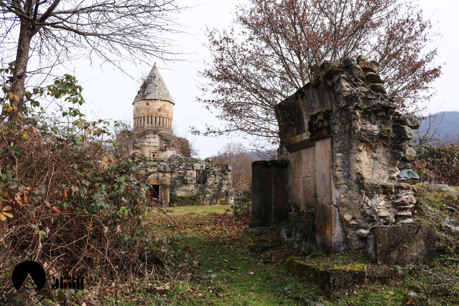 ანსამბლის მთავარი ნაგებობა გუმბათოვანი ტაძარია, რომელიც ჩახაზული ჯვრის ტიპის ჯვარ-გუმბათოვან ნაგებობას წარმოადგენს. შესასვლელი ორია – დასავლეთითა და სამხრეთით. ეკლესიას დასავლელით გავითი აქვს მიდგმული. დარბაზის აღმოსავლეთით საკურთხევლის ნახევარწრიული აფსიდია, რომელიც მთავარი სივრცისგან არდაბაგითაა გამოყოფილი. აფსიდი ბემითაა დაგრძელებული. ჯვრის მოხაზულობის ცენტრალურ სივრცეს კუთხეებში აფსიდიანი, იზოლირებული სამლოცველოები აქვს დამატებული. გუმბათქვეშა კვადარტის კუთხეები სამ-სამი მრგვალი ნახევარსვეტითაა გაფორმებული, რომლებზეც ნახევარწრიული თაღებია გადაყვანილი. კვადრატიდან გუმბათის წრიულ ყელზე გადასვლა აფრებით ხორციელდება. გუმბათის ყელის საფუძველზე ერთმანეთთან მჭიდროდ განლაგებული ოცდათი ექვსწახნაგა სვეტია, რომელსაც გუმბათის ათწახნაგა ყელი და კამარა ეყრდნობა. ინტერიერში სვეტების ზემოთ გუმბათის ყელი არ გრძელდება, კამარასა და სვეტებს შორის მხოლოდ დეკორირებული სარტყელია. გუმბათის ნახევარსფეროს მზიდ კონსტრუქციას ექვსი ურთიერთგადამკვეთი თაღი ქმნის, რომლებიც ექვსწახნაგა ვარსკვლავს გამოსახავენ და მხატვრული ფუნქციაც გააჩნიათ. ინტერიერი შელესილია, თუმცა, როგორც ჩანს, თავიდან შეულესავი უნდა ყოფილიყო, რადგან ჩამოცვენილი ბათქაშის ადგილას რელიეფური დეტალები ჩანს. ტაძრის ყველა მკლავში თითო თაღოვანი სარკმალია, თითო თაღოვანი სარკმელი აქვთ აგრეთვე აღმოსავლეთის აფსიდის გვერდით მდებარე სამლოცველოებს. ექსტერიერში აფსიდსა და სამლოცველოებს შორის სამკუთხა ნიშებია, რომლებიც მცირე ზომის, სიღრმეში განთავსებული მარაოსებრი დეკორითაა შემკული. ფასადები, გარდა გუმბათისა, თითქმის მოურთველია, მხოლოდ სარკმლებს აქვს ლილვოვანი საპირეები და შესასვლელებს ასევე საკმაოდ მარტივი დეკორი. ტაძრის ძირითადი კორპუსის საპერანგე წყობის მნიშვნელოვანი ნაწილი ჩამოცვენილია. გუმბათის სვეტებს სამფურცლა და ოთხფურლა, ყვავილისებრი მორთულობა გასდევს. გუმბათის ყელზე მიმობნეულია მცენარეული და გეომეტრიული რელიეფები და ჯვრები და გრეხილი ლილვის ლავგარდანი ასრულებს. ტაძრის ფასადებს წრეთარგისა და ლილვისგან შედგენილი ლავგარდანი შემოუყვება. ტაძრის სამხრეთ შესასვლელთან სახურავის კეხი დევს ლომის რელიეფური გამოსახულებით. ეკლესიის დასავლეთ ფასადზე მიდგმული გავითი გეგმით კვადრატული მოხაზულობისაა. გავითის კედლები ინტერიერში მსხვილი პილასტრებითა და მათ შორის გადაყვანილი თაღებითაა დანაწევრებული. გავითის კედლებსა და ეკლესიის შესასვლელ